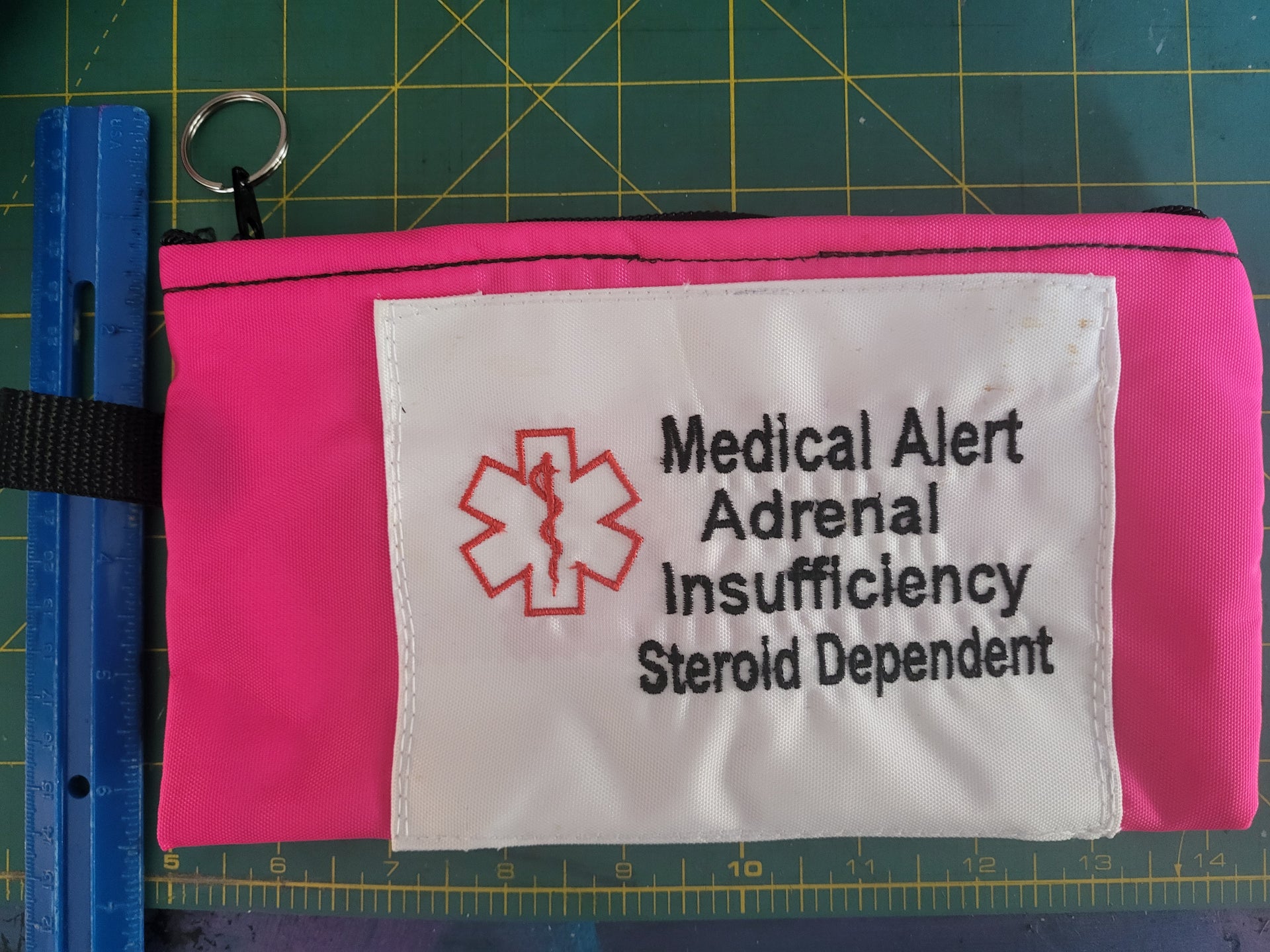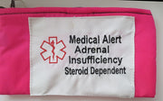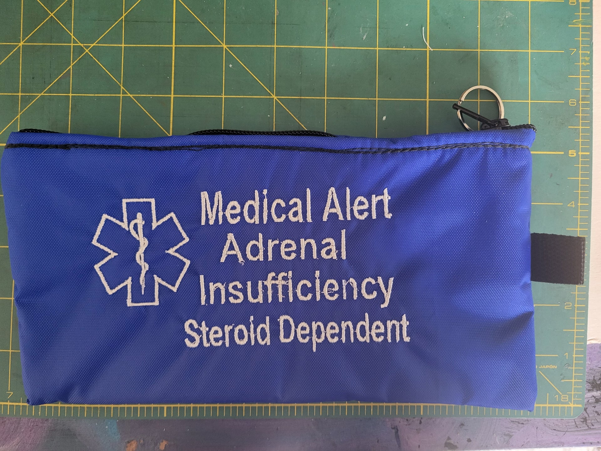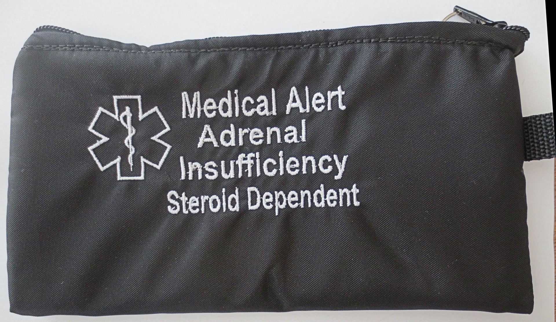 The embroidered case will say "Medical Alert Adrenal Insufficiency Steroid Dependent.