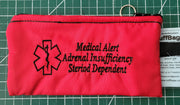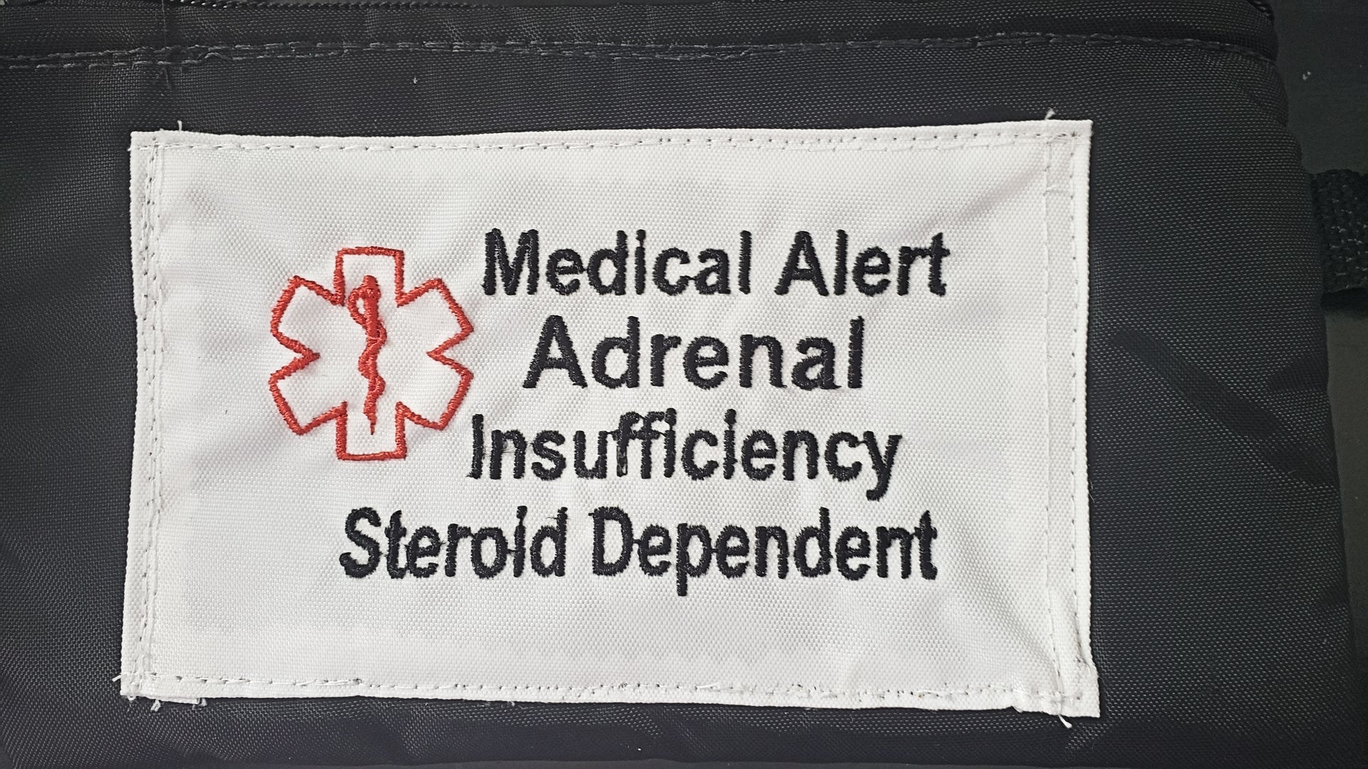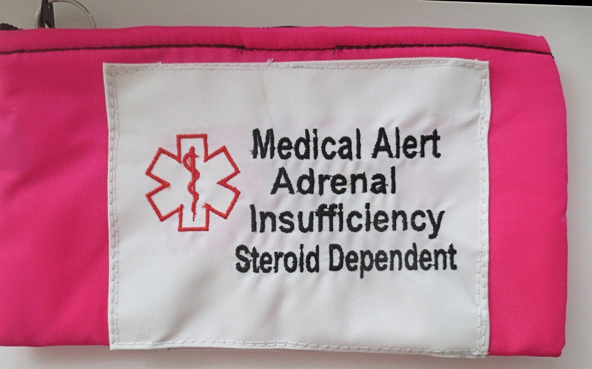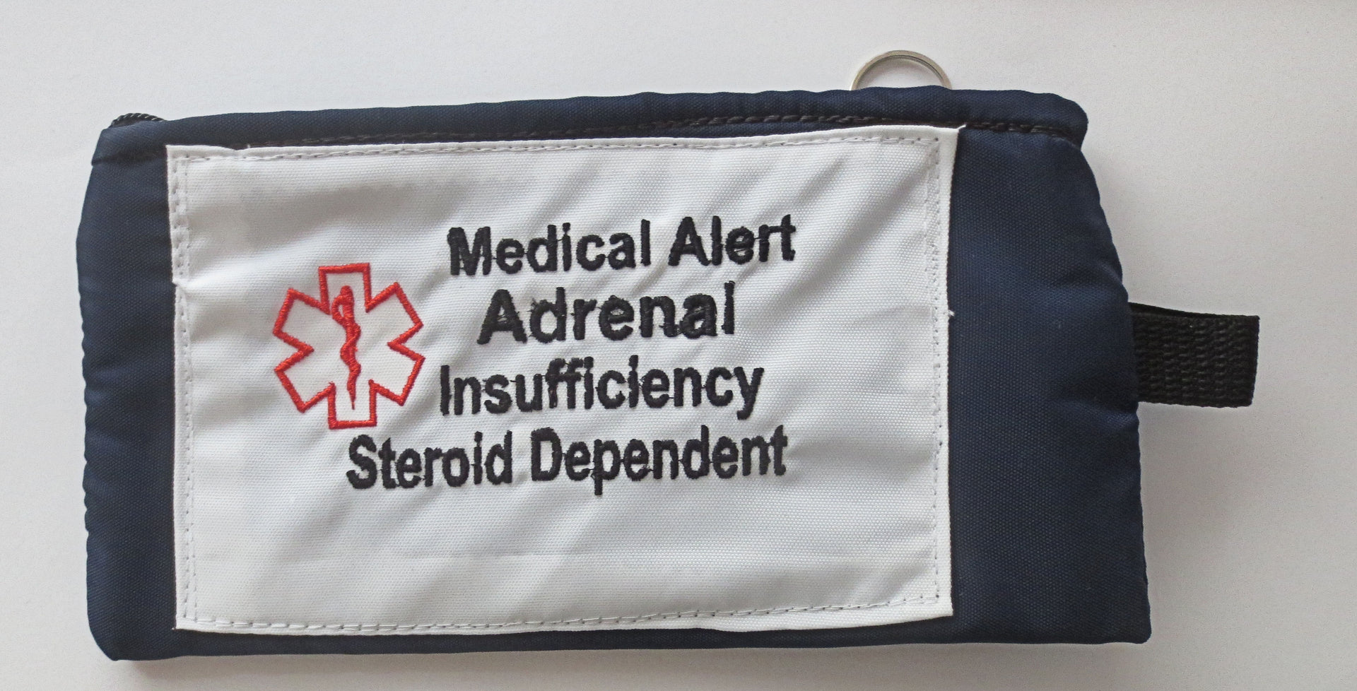 The embroidered case will say "Medical Alert Adrenal Insufficiency Steroid Dependent.