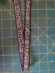 This diamond geometric ribbon is a tapestry trim that you sew on to an item. The detail is amazing with lots of tiny scroll work and flowers....STUNNING!