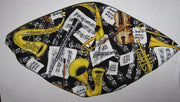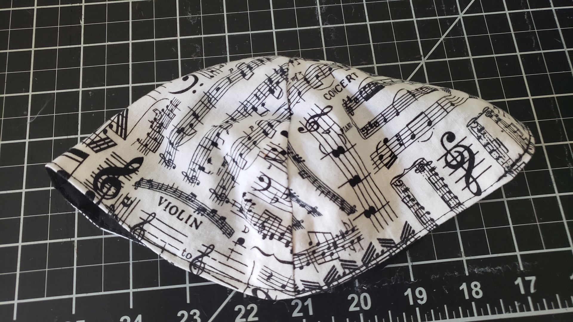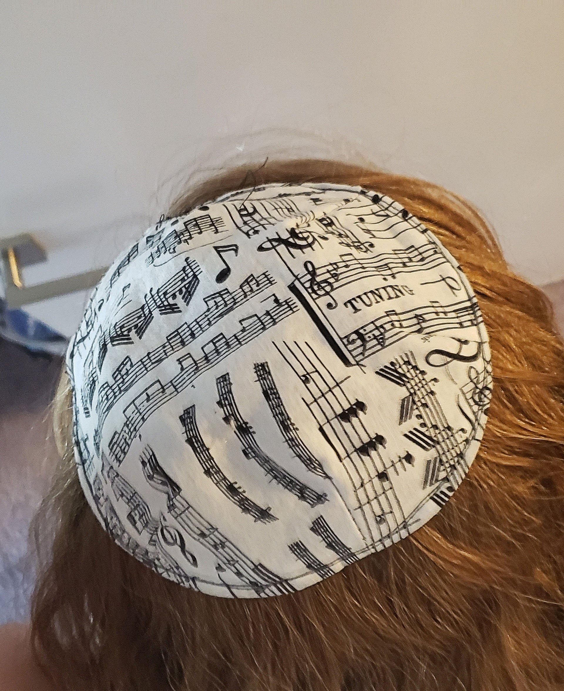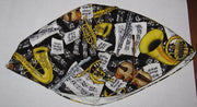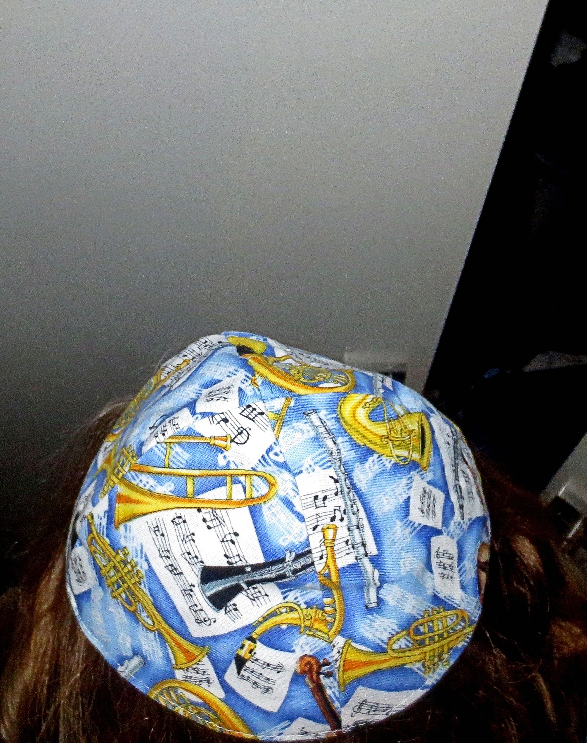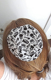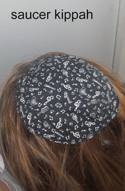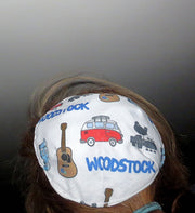 You can select from musical notes, musical instruments, electric guitars, piano print, The Beatles, Kiss, The Who, AC DC, Woodstock, The Grateful Dead, jazz, orchestral, klezmer, drums, horns and more. Your kippah may vary from the stock pictures as we make several at a time.