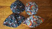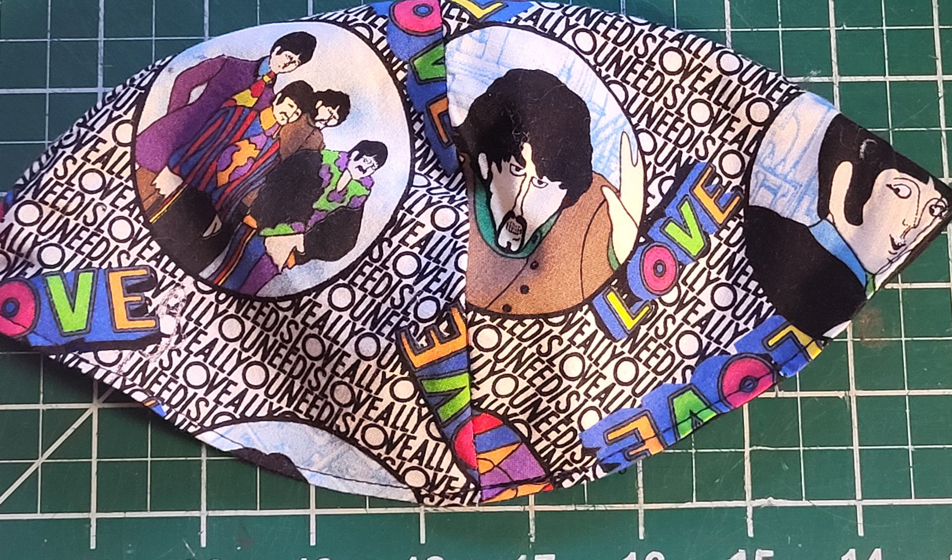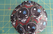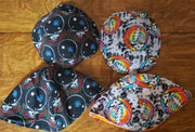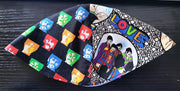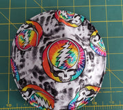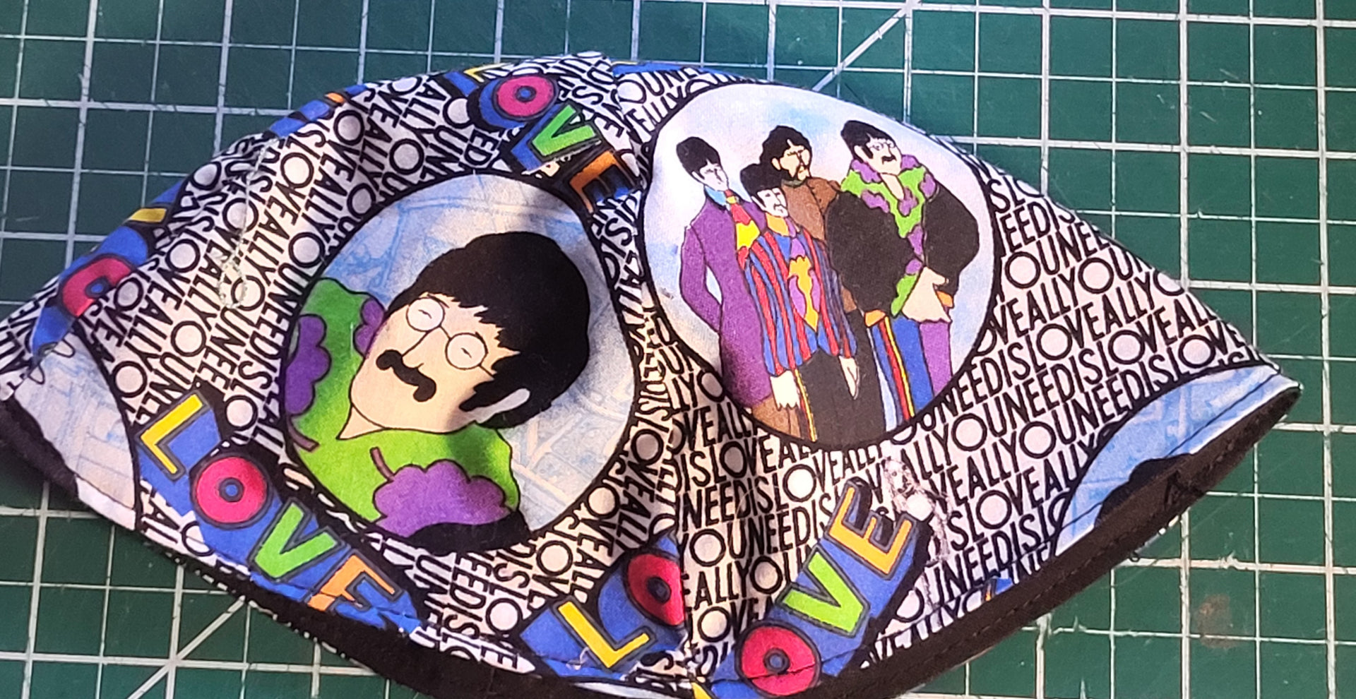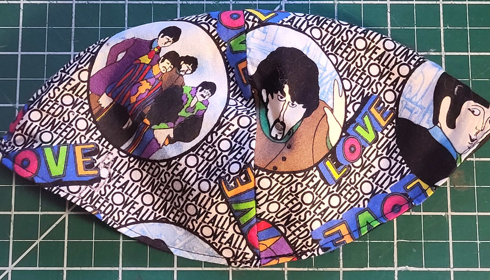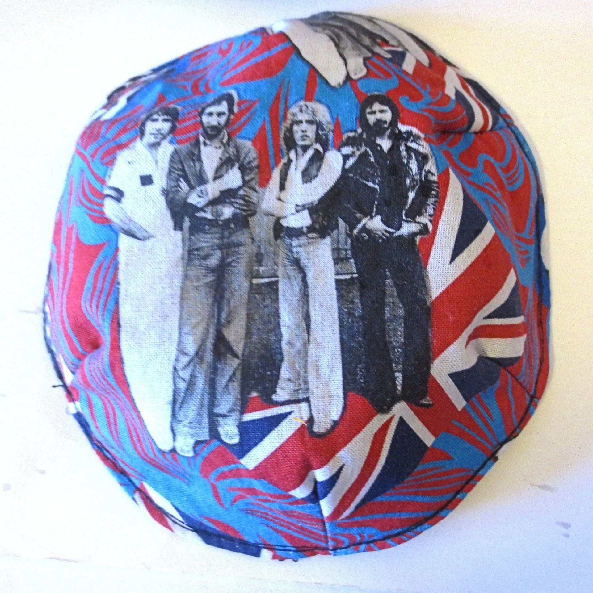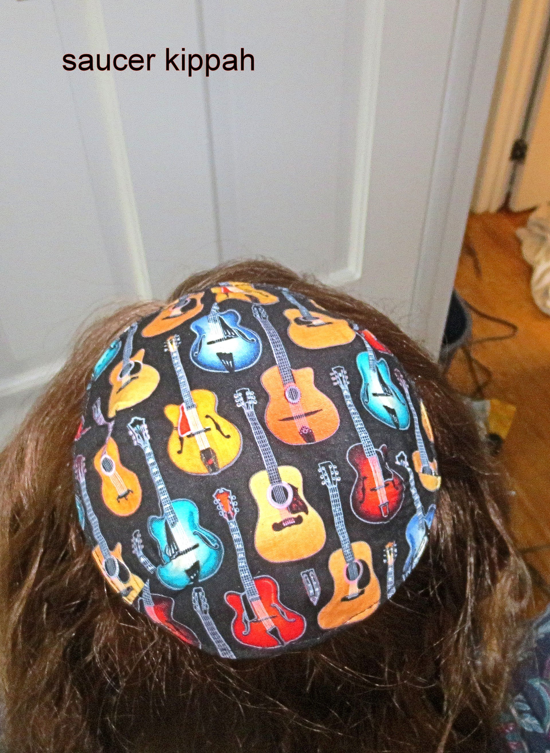Music kippah or musical yarmulke, instruments, musical notes, the Grateful Dead, the Beatles, Kiss, ACDC, The Who, All you need is Love, the Beatles. These wonderful kippot are available in my traditional 4 panel styling as well as my saucer/small styling.