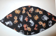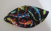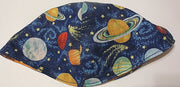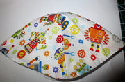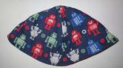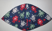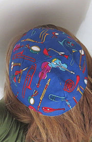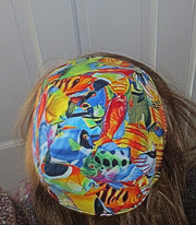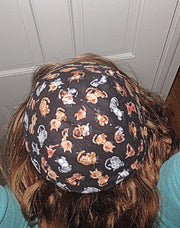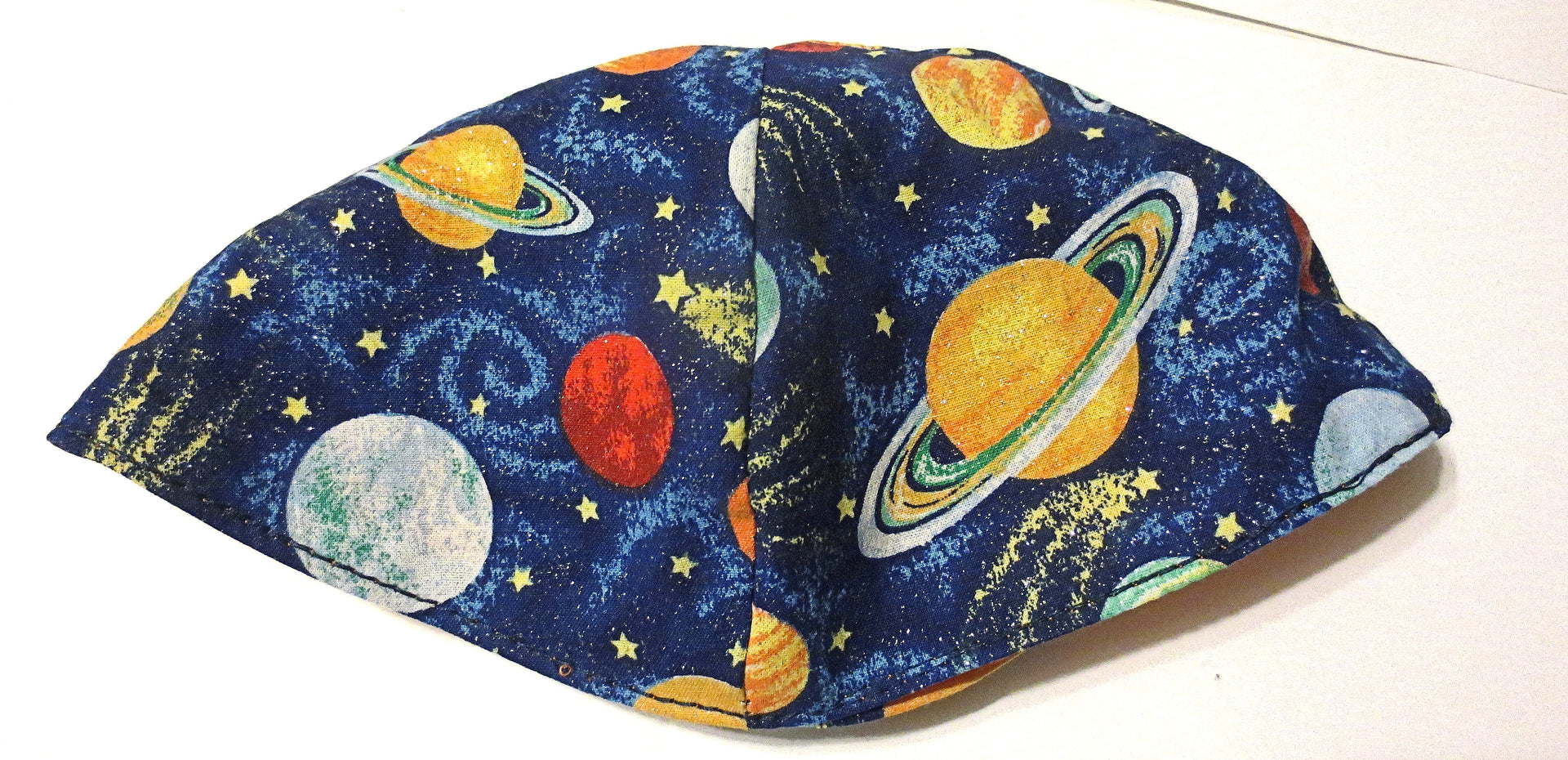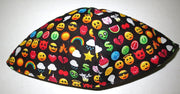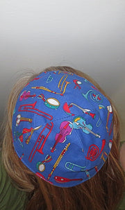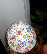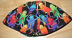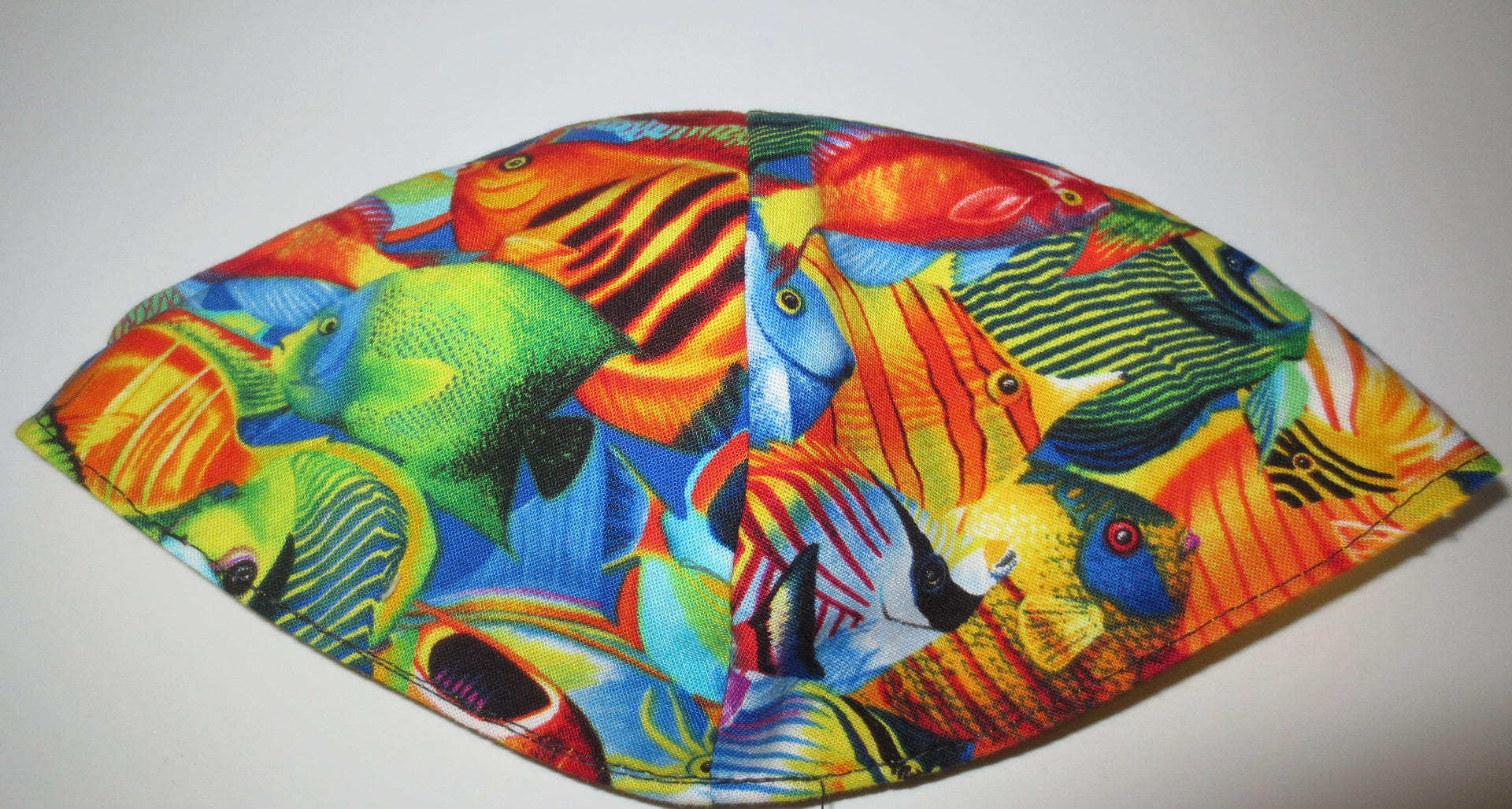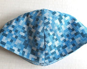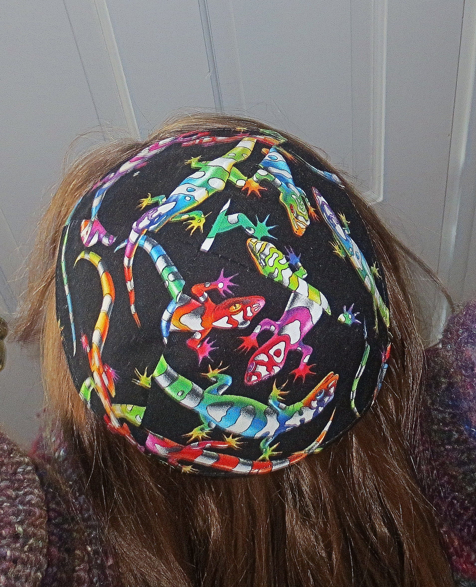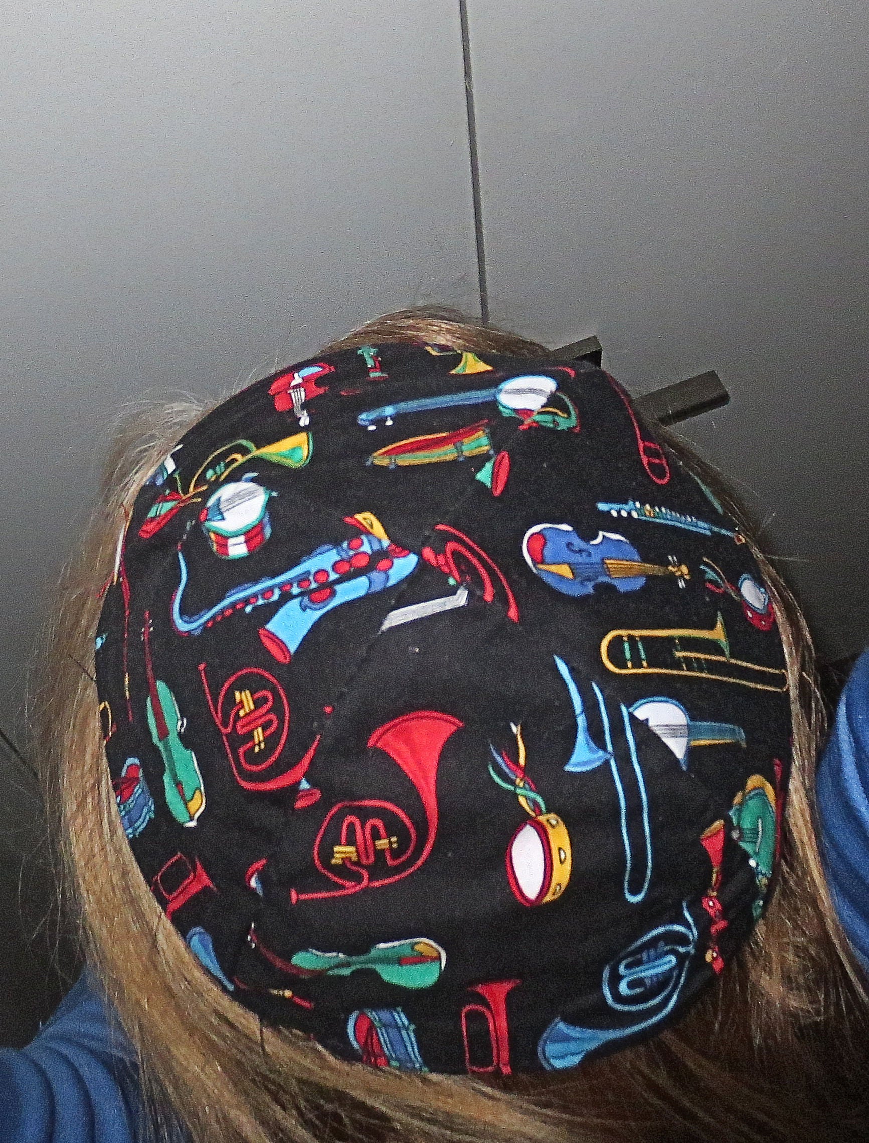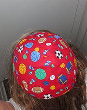 Our regular sized kippahs are 7.5" in diameter or 11" from one side over the top to the other side.  They fit nicely, molding to your head without clips, for most people aged 3 and up.  Please measure your head, especially for children, as age generally does not always correlate with head size (some kids have bigger than average heads while some have smaller than average).  Also please consider your hair style (thick, thin, bald, etc.) when selecting this style.  You may need clips.