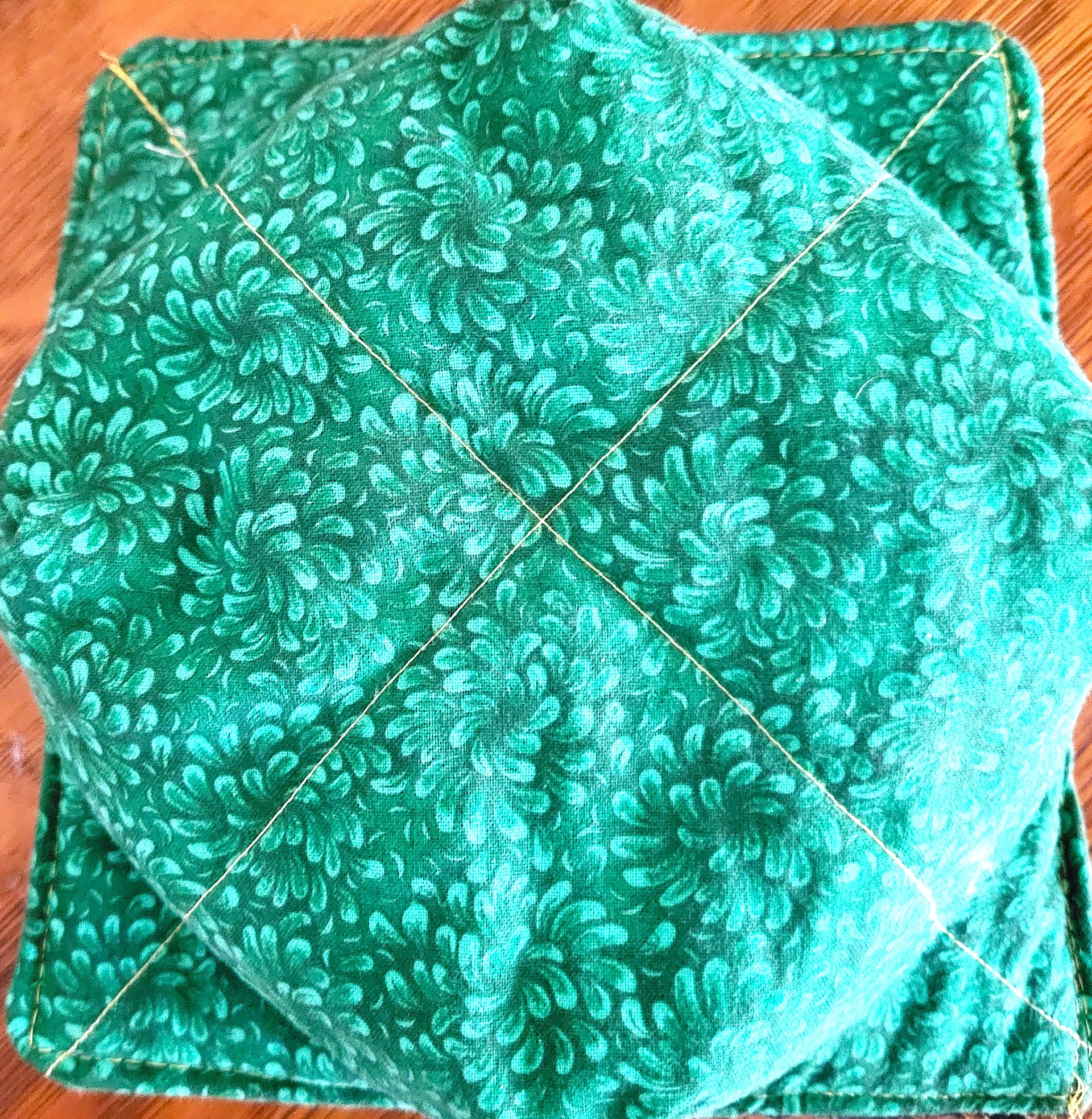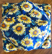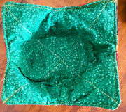 I am now making these adorable and pretty all cotton microwave quilted bowls. I use the specialty Wrap n' Zap all cotton batting made just for microwaving. Each bowl has 2 layers of this wonderful batting and is reversible. One side is a novelty cotton and the other is a coordinating blender fabric. All fabrics are preshrunk. Each side is quilted and top stitched for additional durability.