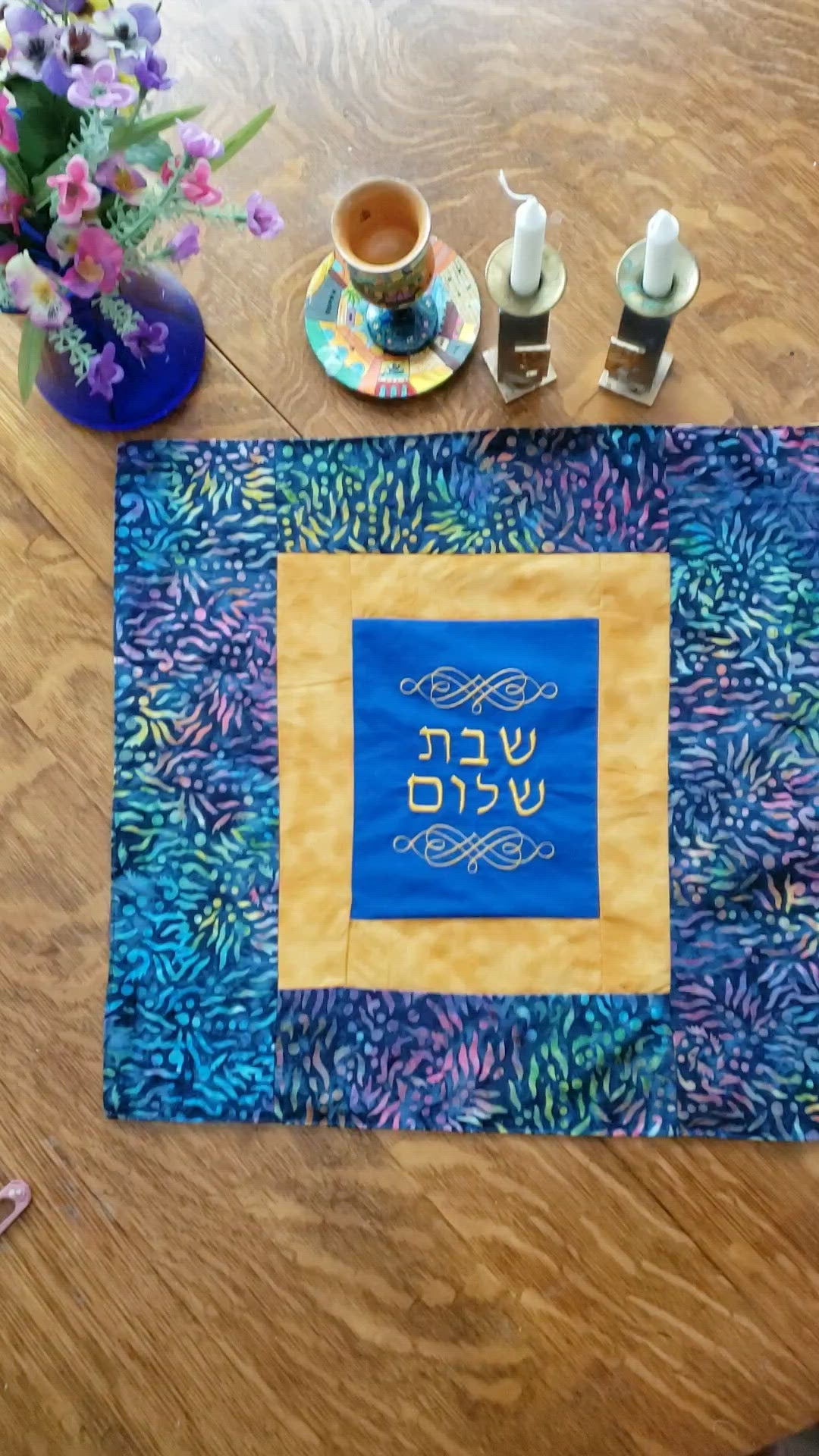 Challah cover batik gold teal green blue embroidered Shabbat Shalom$ 50.00$ 50.00Unit price / per
