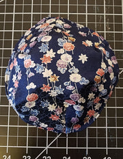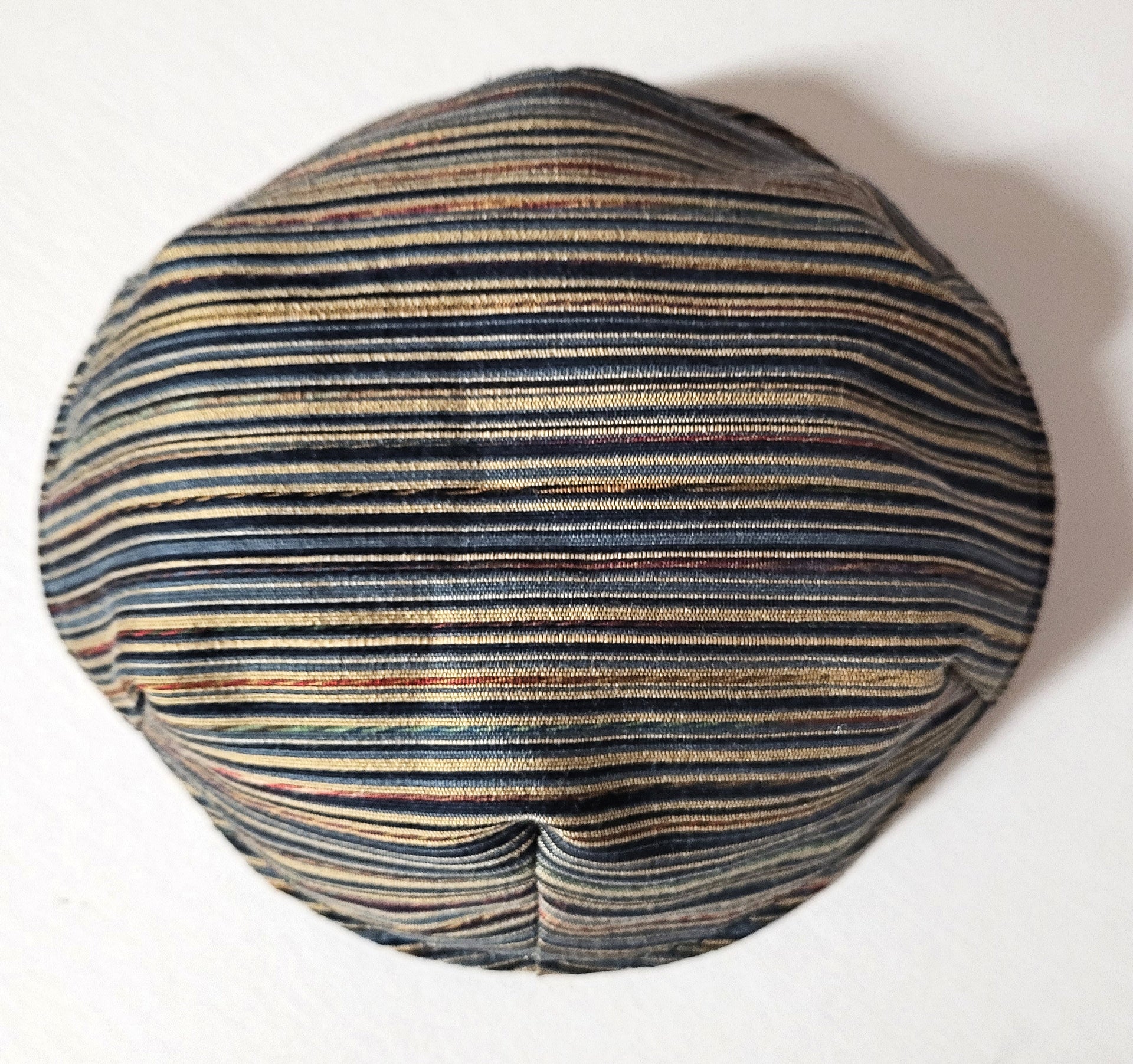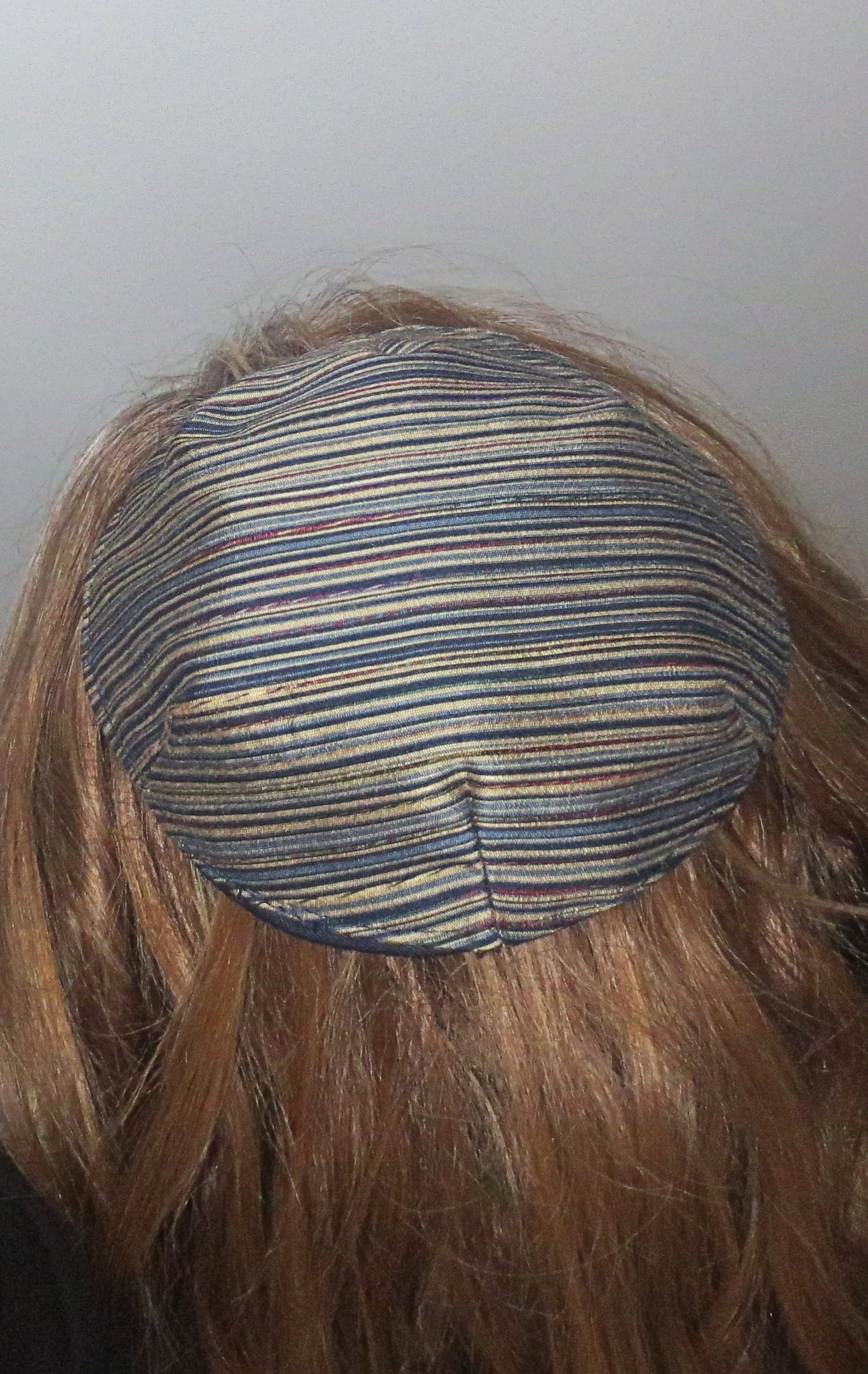saucer / small size:  round reversible 100% cotton kippah about 5.5" in diameter and about 1 inch deep.