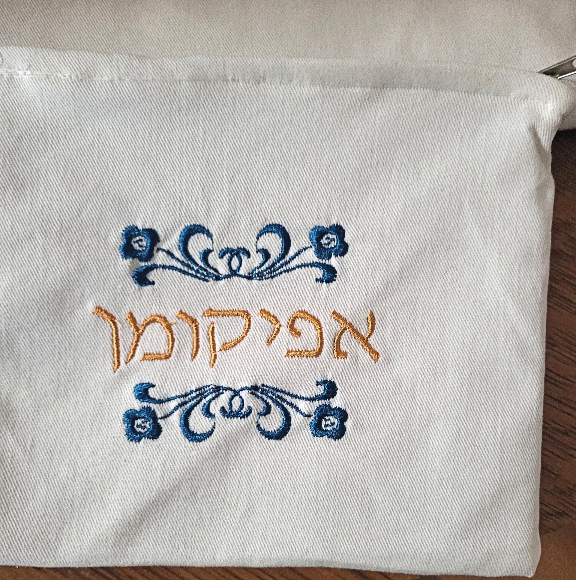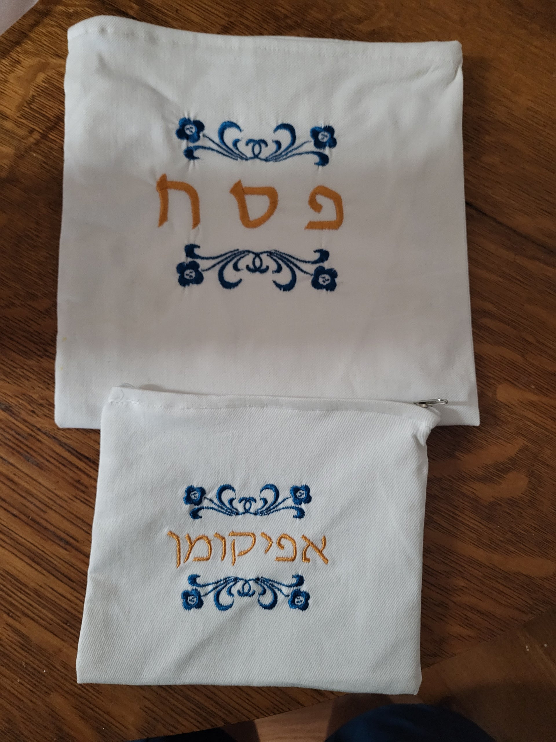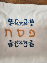 Embroidered Matzah cover and Afikomen bag set for Passover Seder elegant