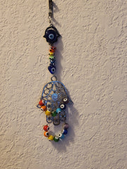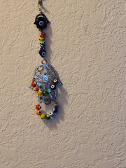 Variety of Evil Eye beaded Hamsa wall hangings sun catchers