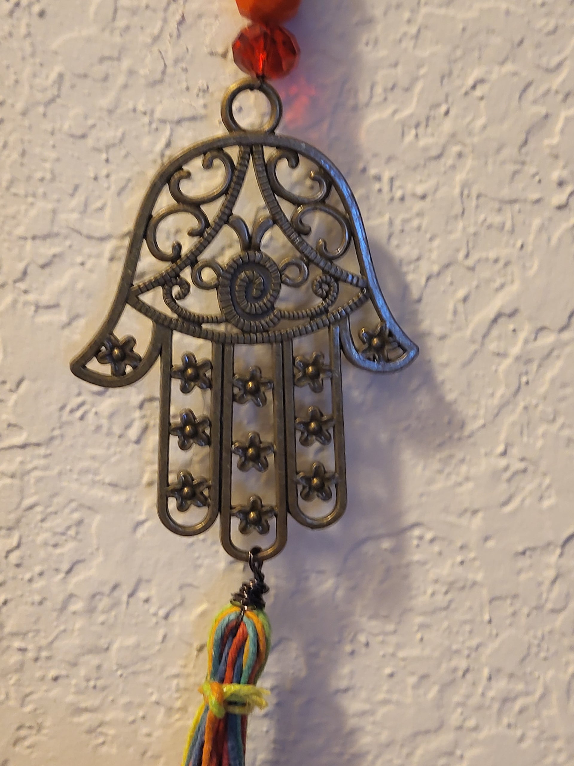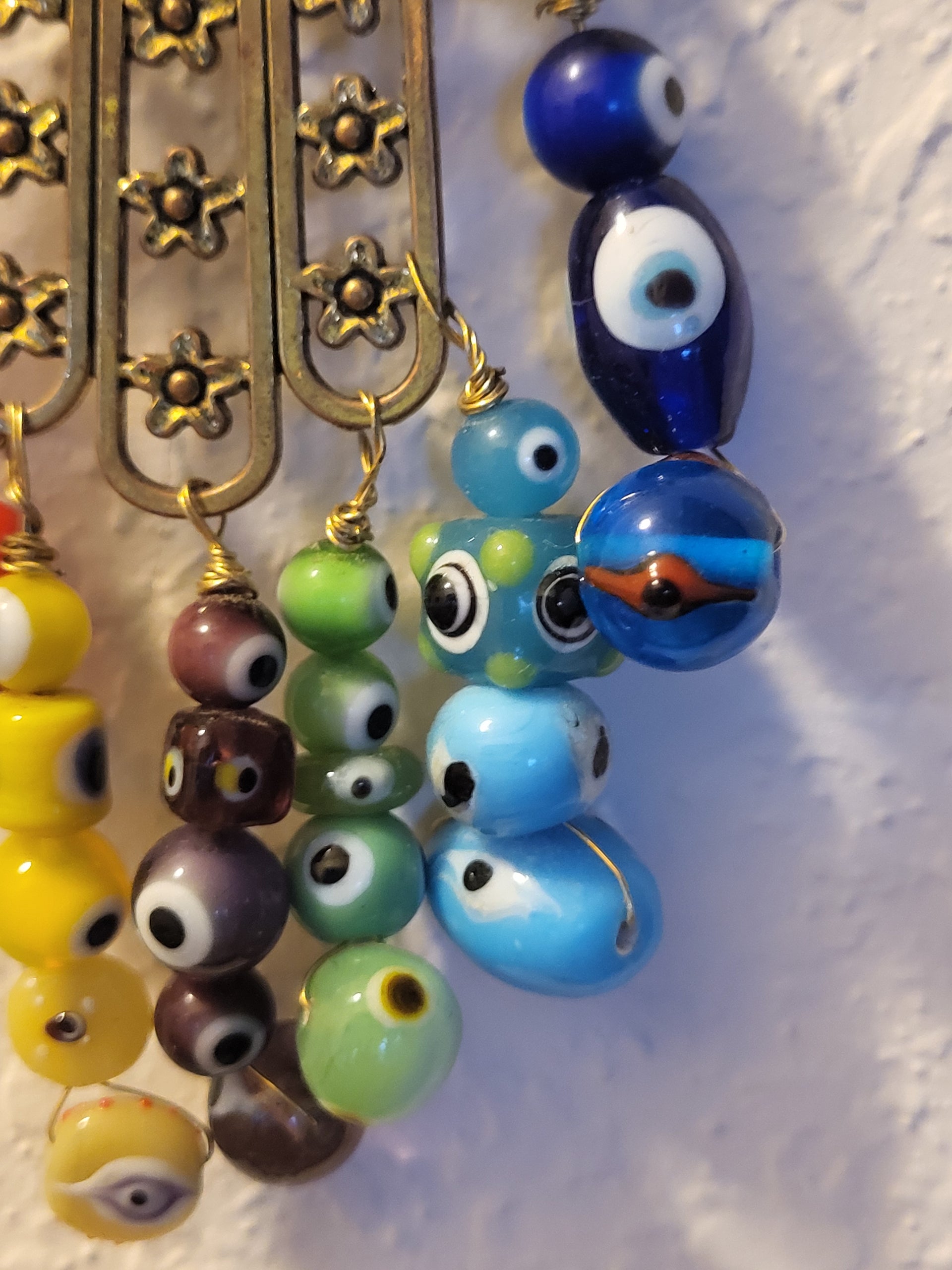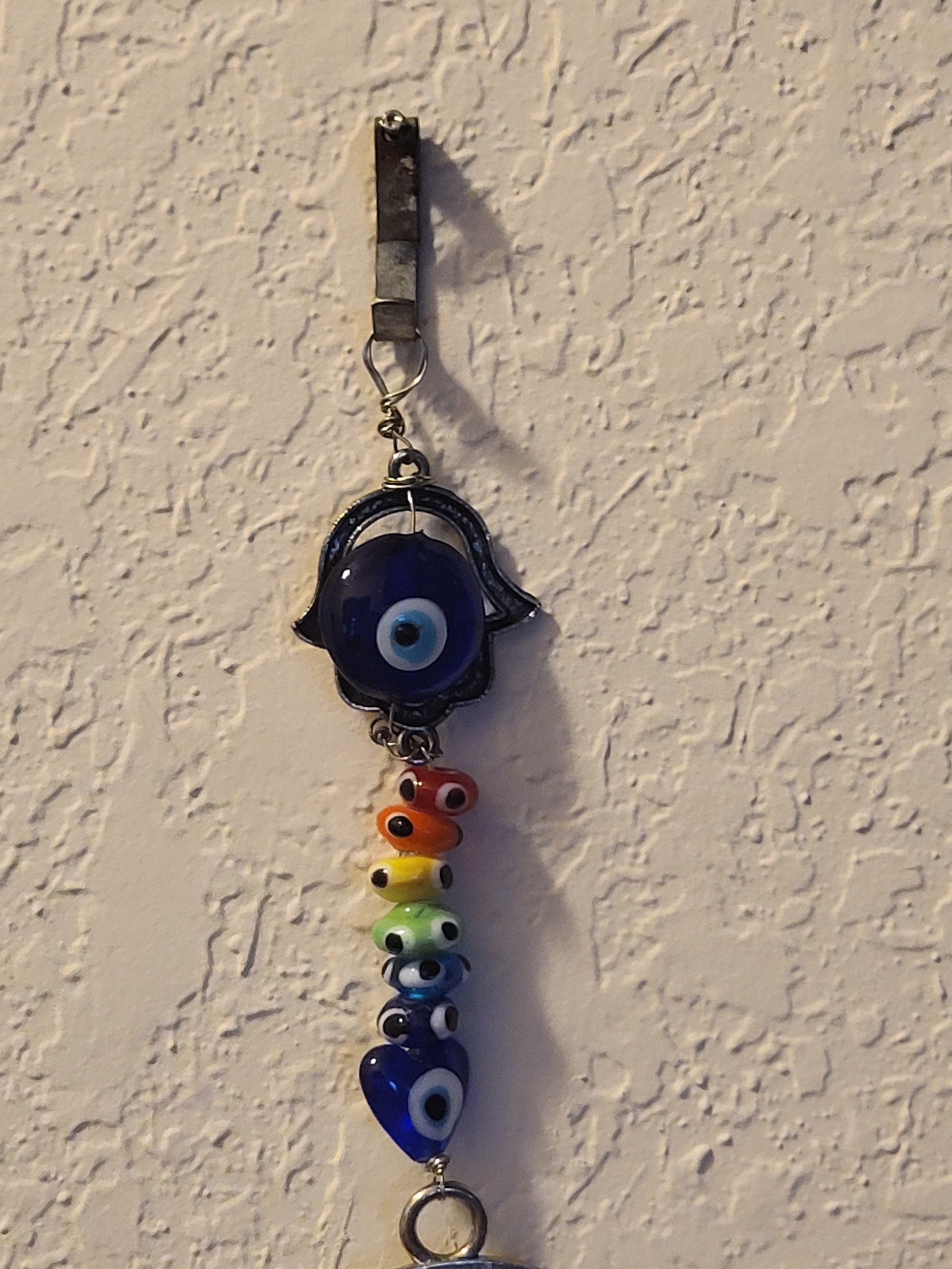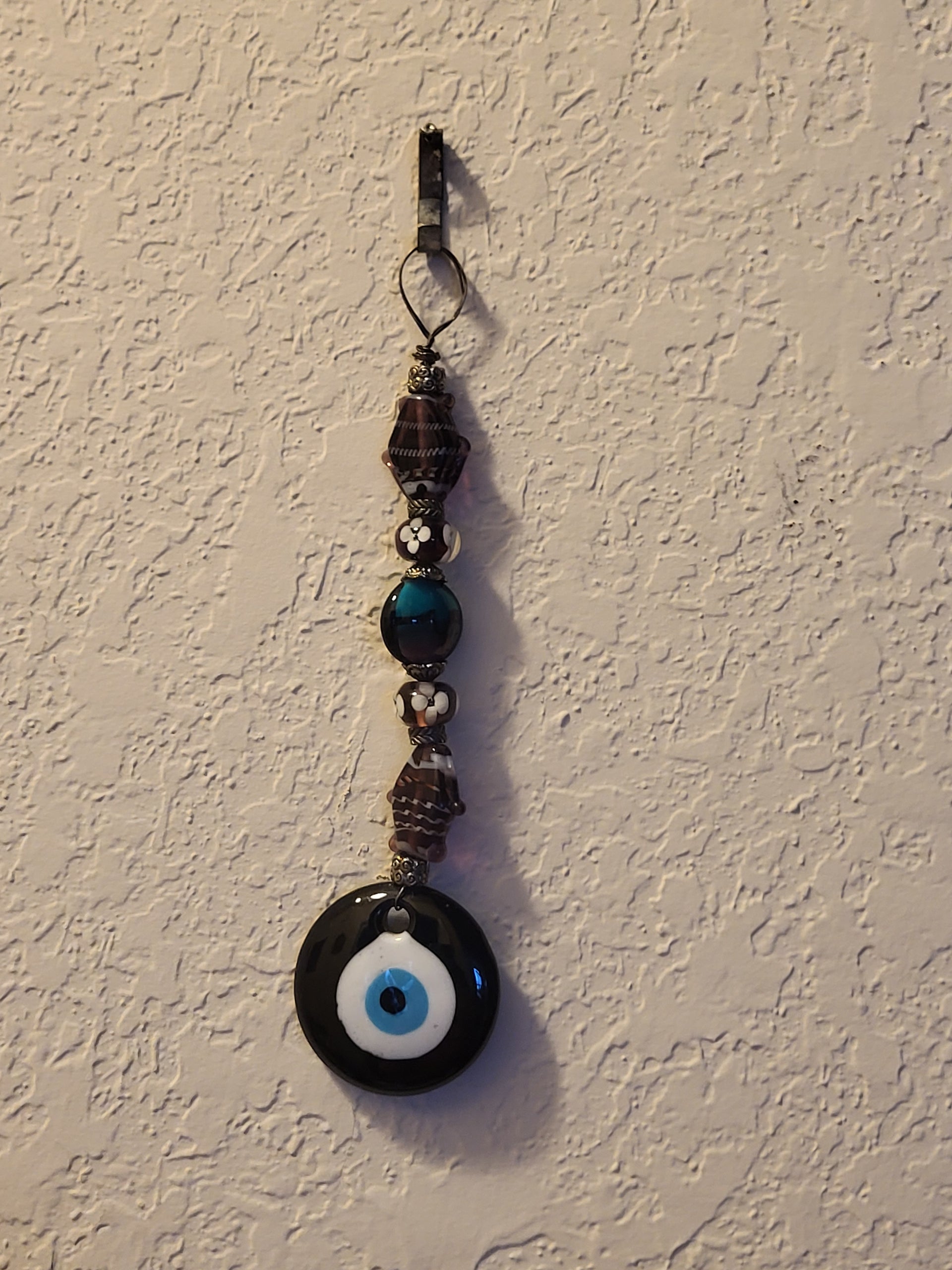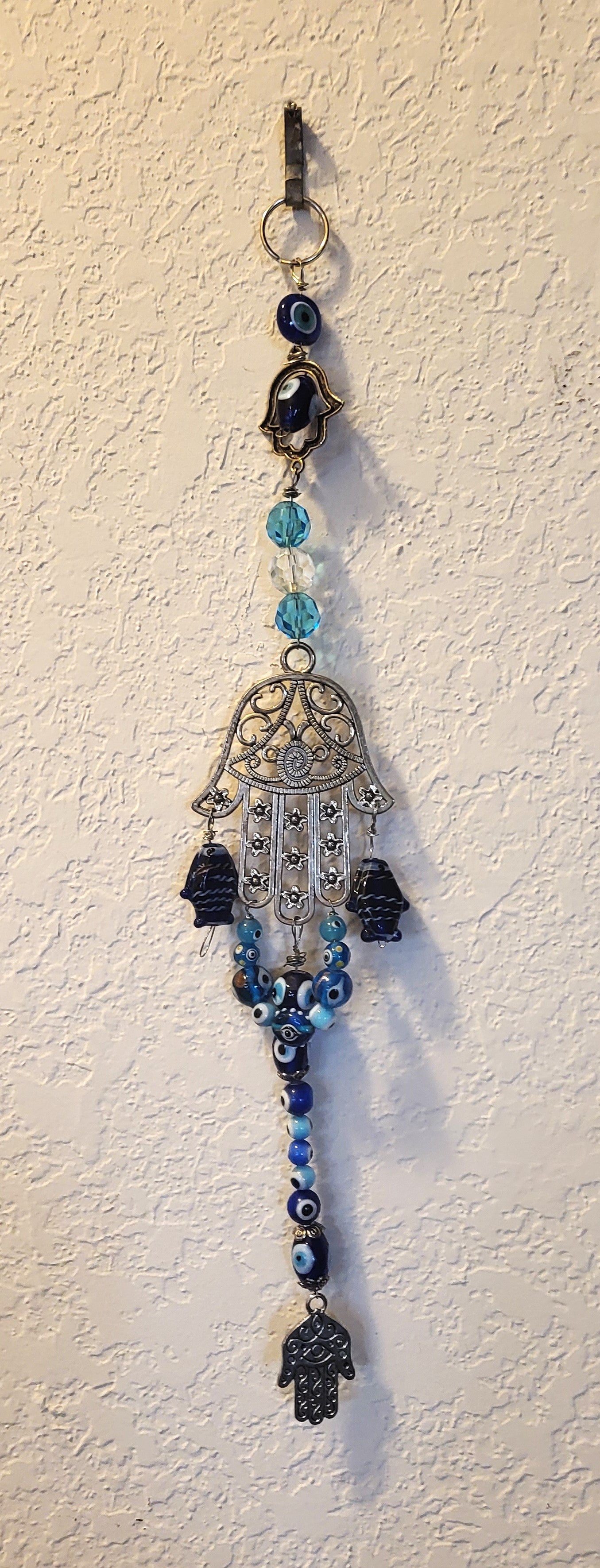 I have created a nice variety of Evil eye themed beaded wall hangings, with and without a Hamsa. According to legend evil eye symbols and amulets protects one from the evil eye.