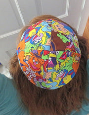 Disney TV and Movie characters kippah, Pokemon, Princesses, Frozen, Mickey and Minnie Mouse yarmulke, Minions, Princess portraits (Aurora, Rapunzel, Belle, and Jasmine), Looney Tunes, Nascar, Hot Wheels, Lilo and Stitch, Superman, Spiderman