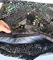 Batik bohemian black colorful quilted pillow cover zippered square one of a kind