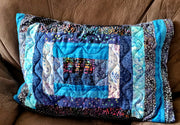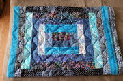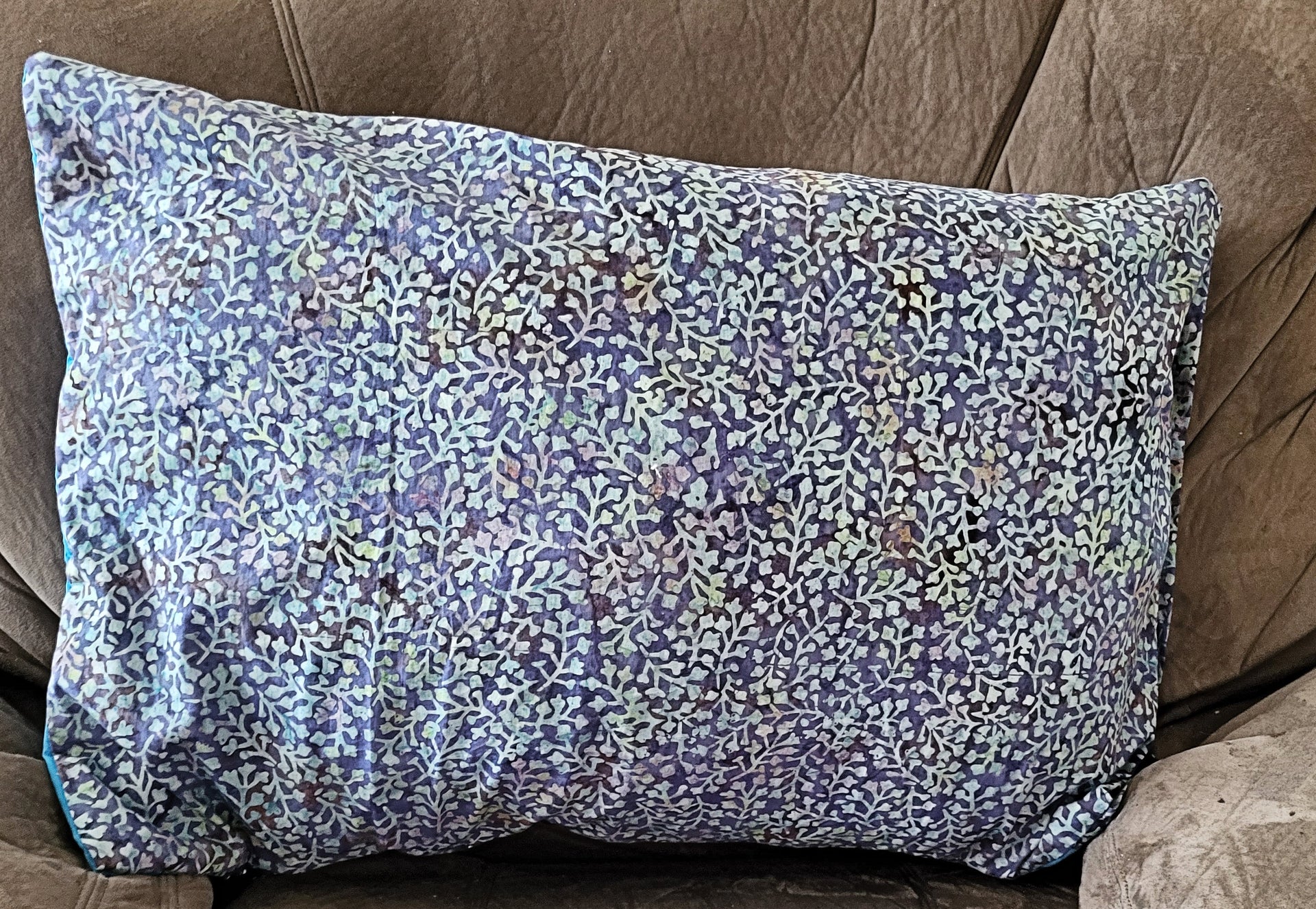 Batik blues quilted extra large zippered cover bohemian and lots of blue print batik cotton fabrics.