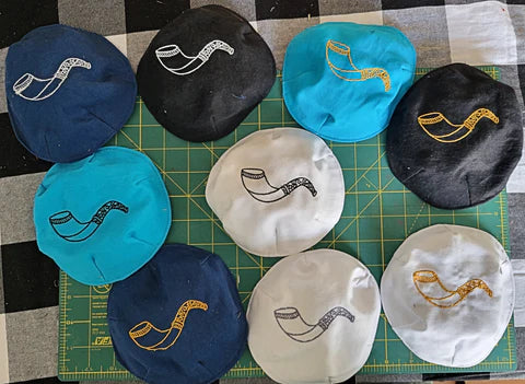 Tekiah! Teruah! Shevarium! All of my shofar kippot are available in the saucer style, the regular 4 panel yarmulke, and the Bucharian kippah.