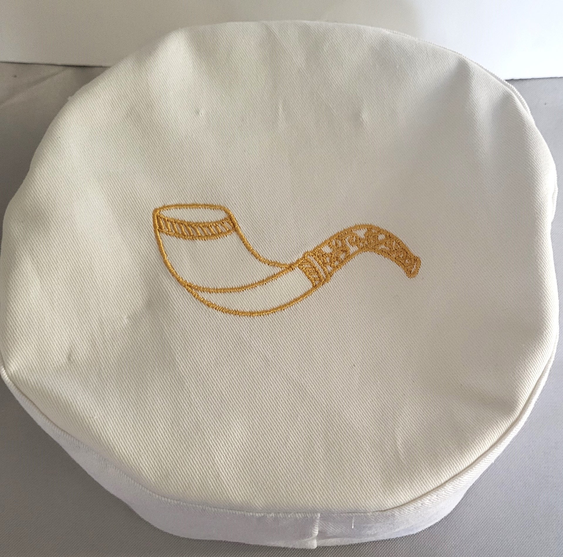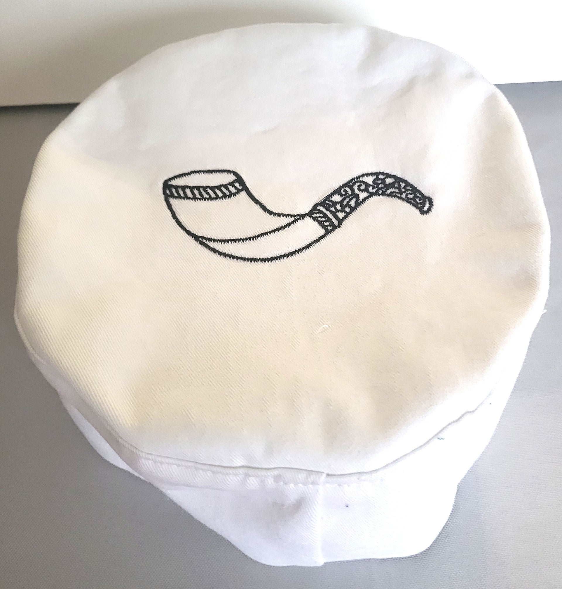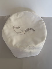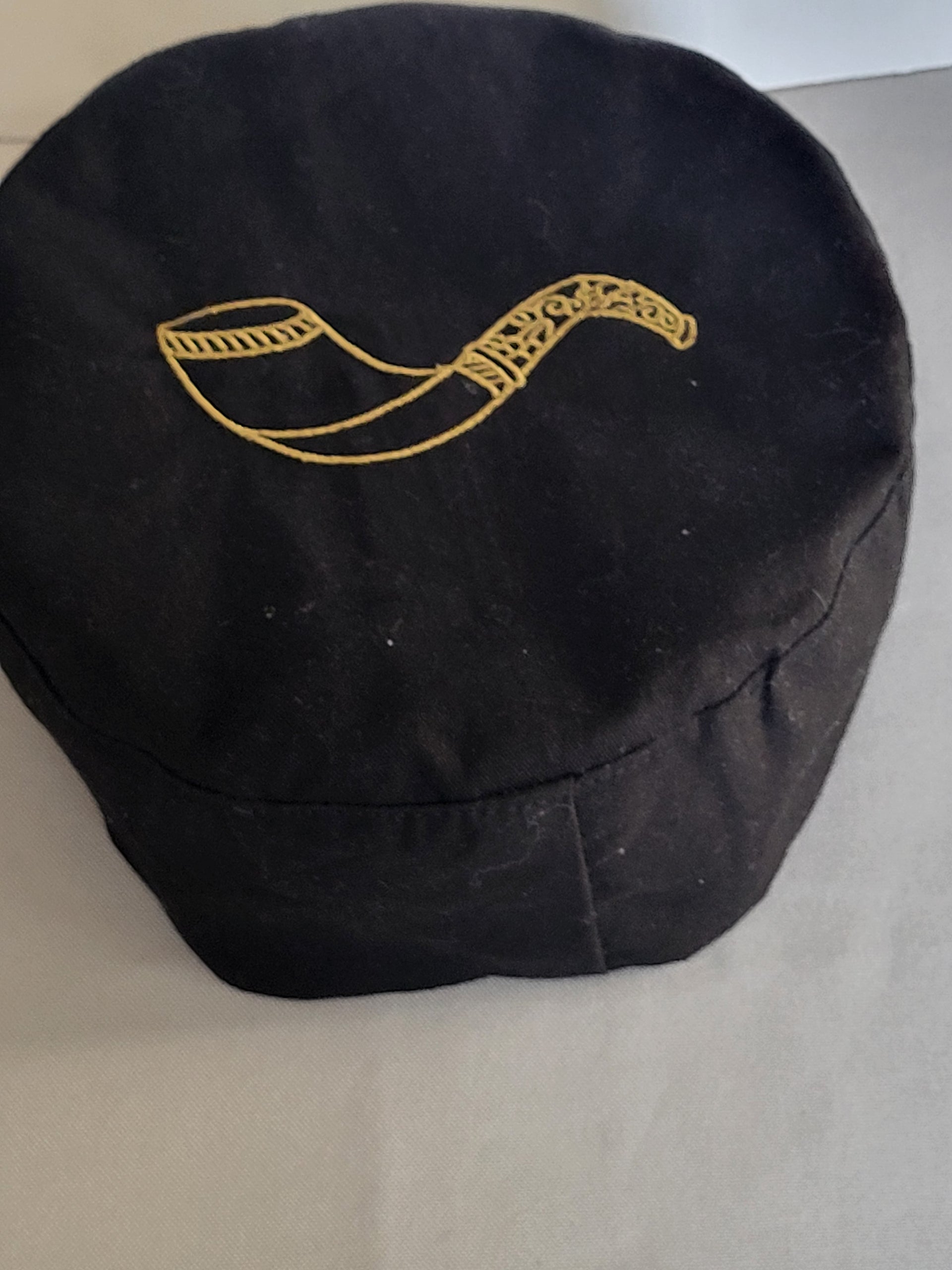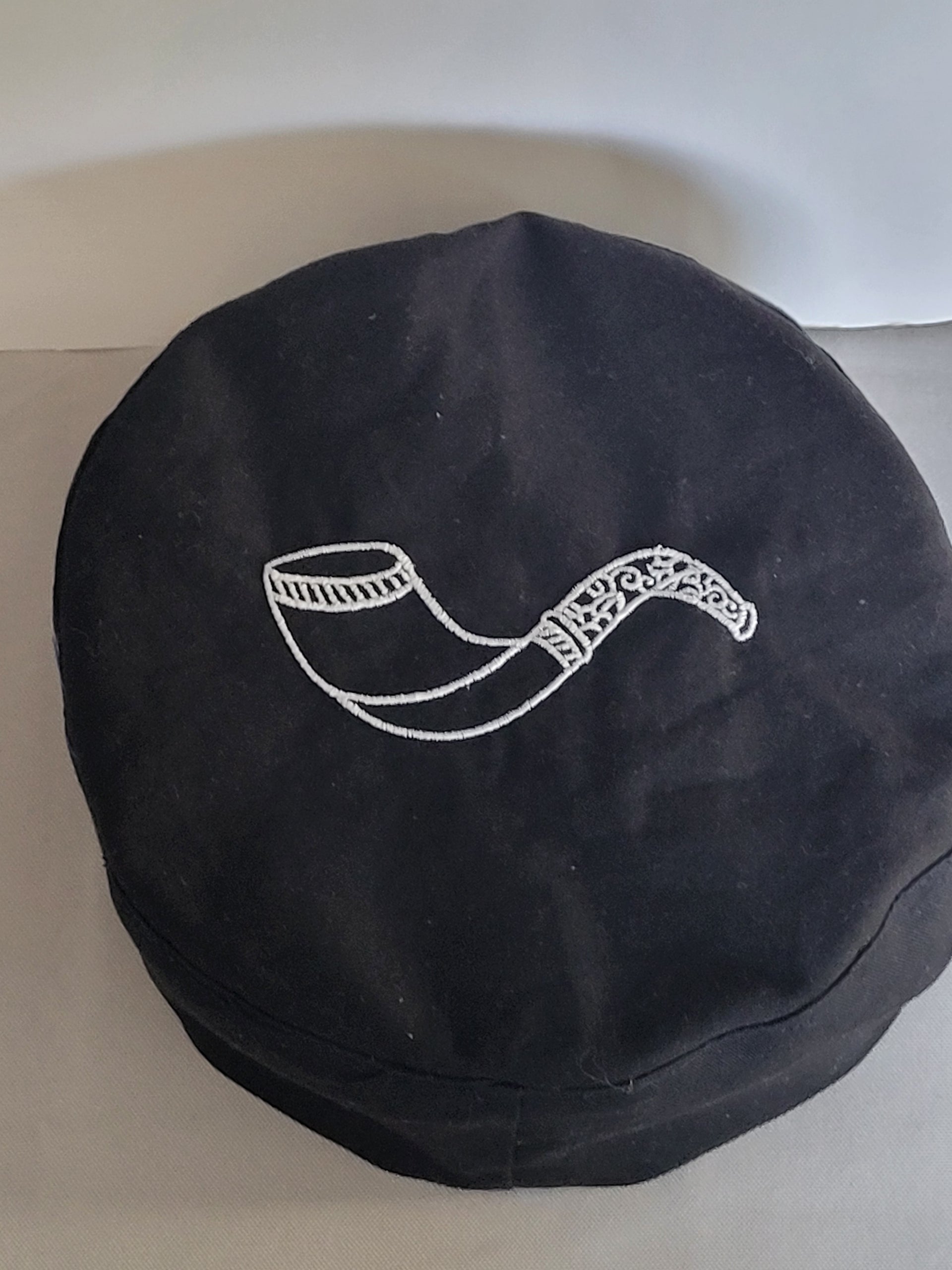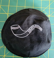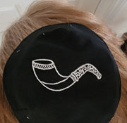 Shofar kippah Jewish High Holidays yarmulke select colors --great kippah for wearing to Rosh HaShannah and Yom Kippur services as it features a shofar (rams horn)! This kippah is also a great gift for a person that blows the shofar (Tokea)!!