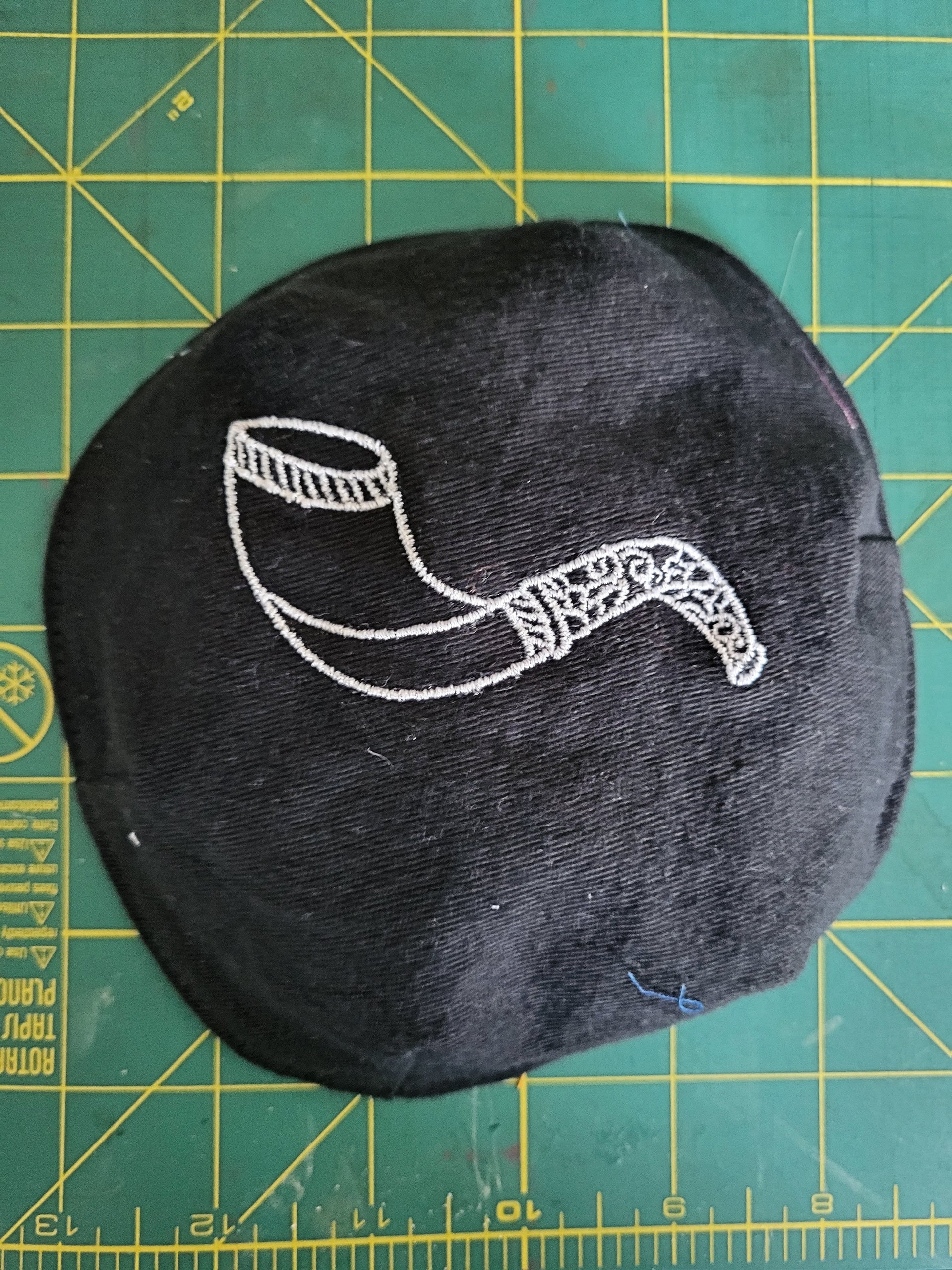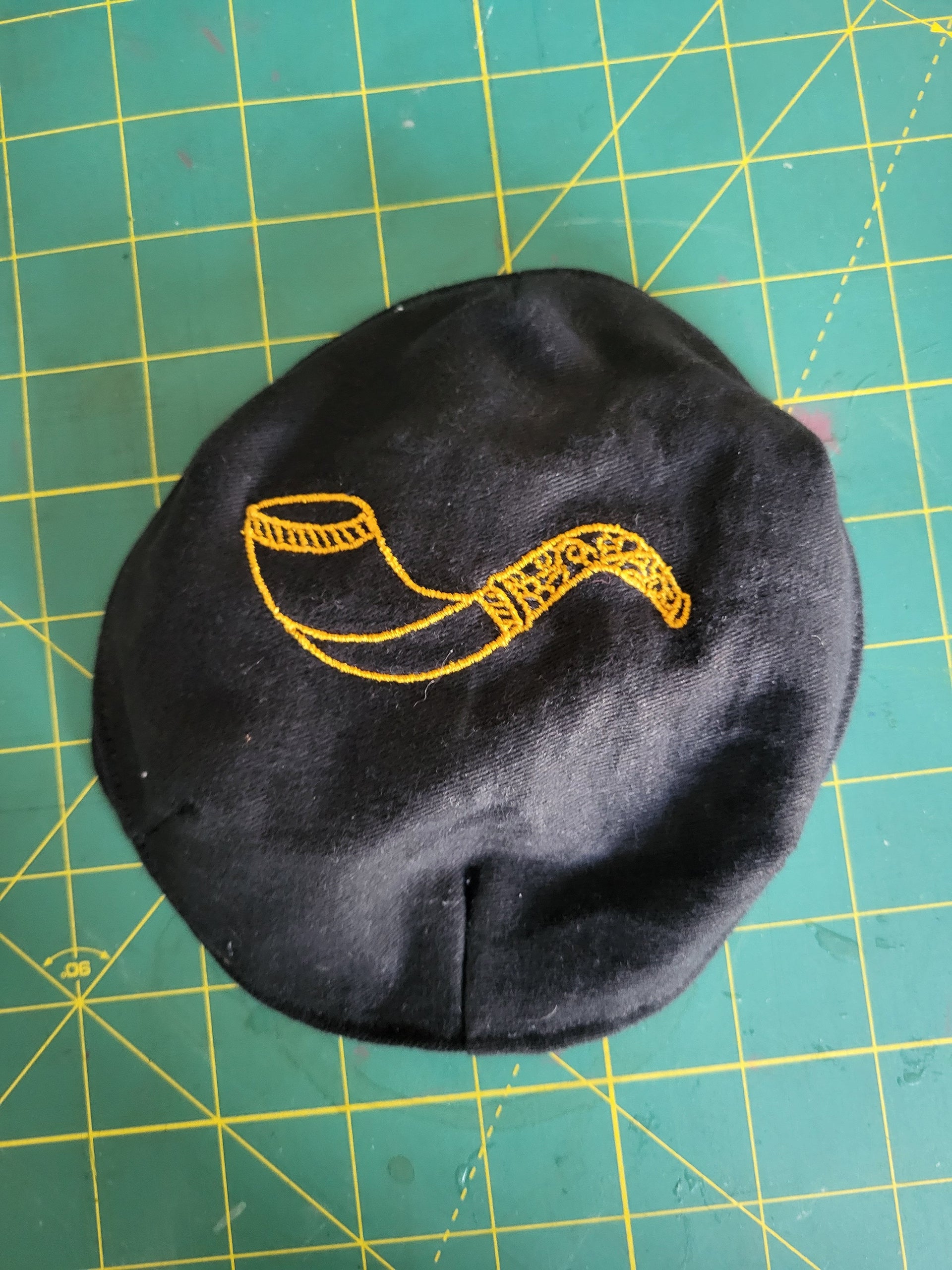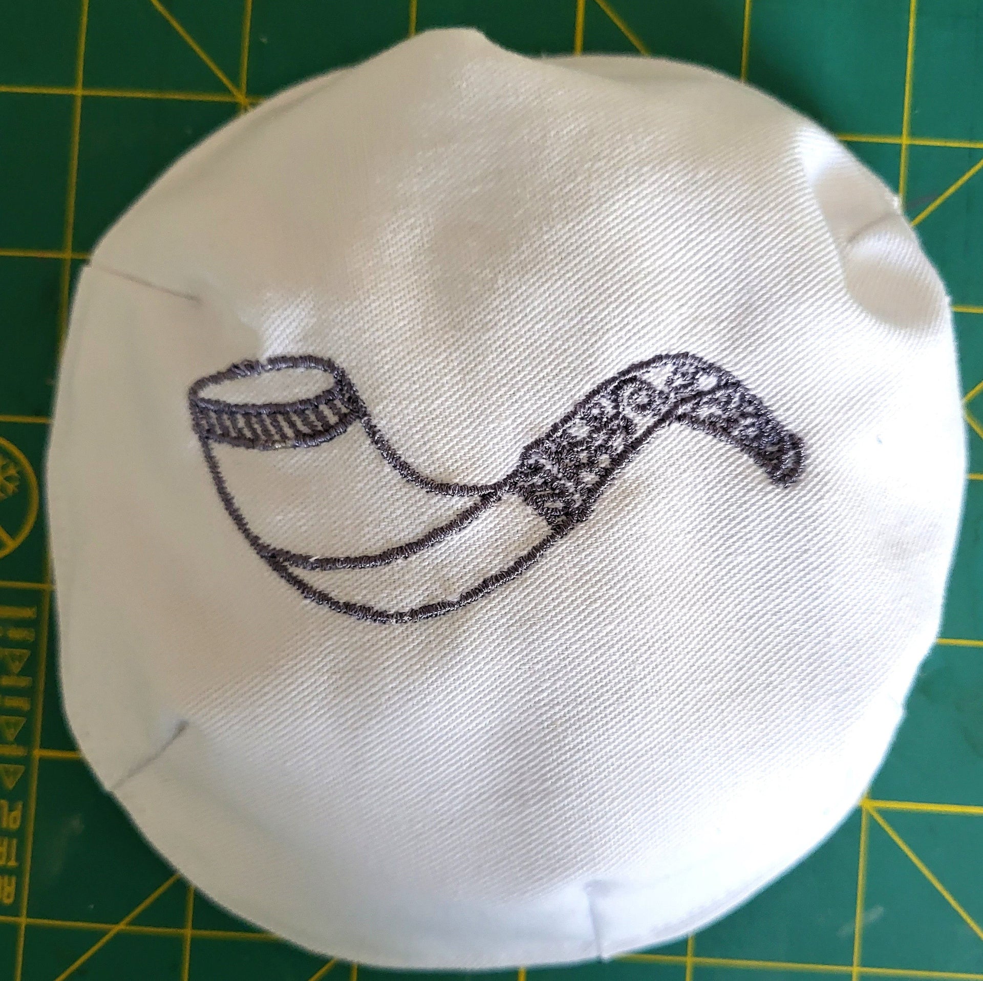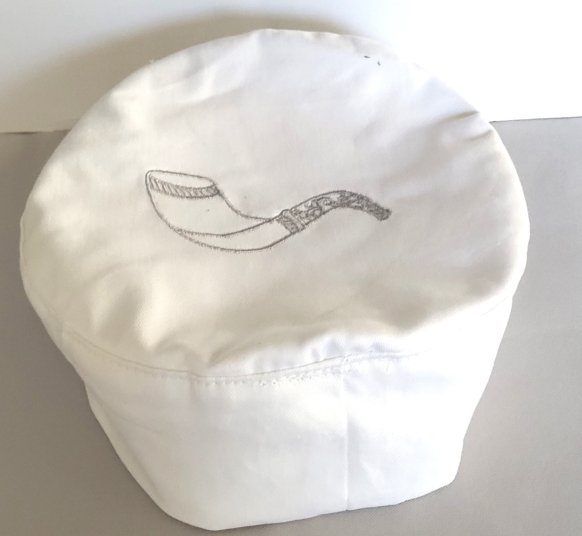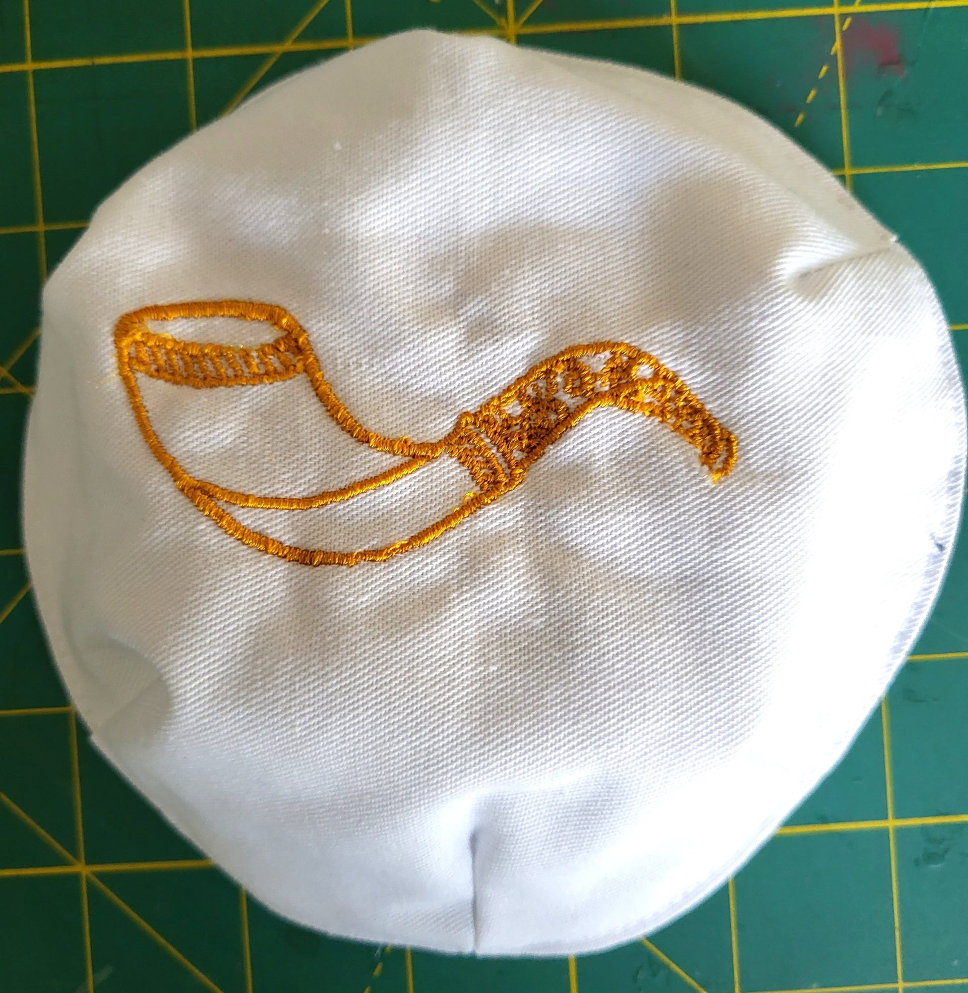 Shofar kippah Jewish High Holidays yarmulke select colors --great kippah for wearing to Rosh HaShannah and Yom Kippur services as it features a shofar (rams horn)! This kippah is also a great gift for a person that blows the shofar (Tokea)!!