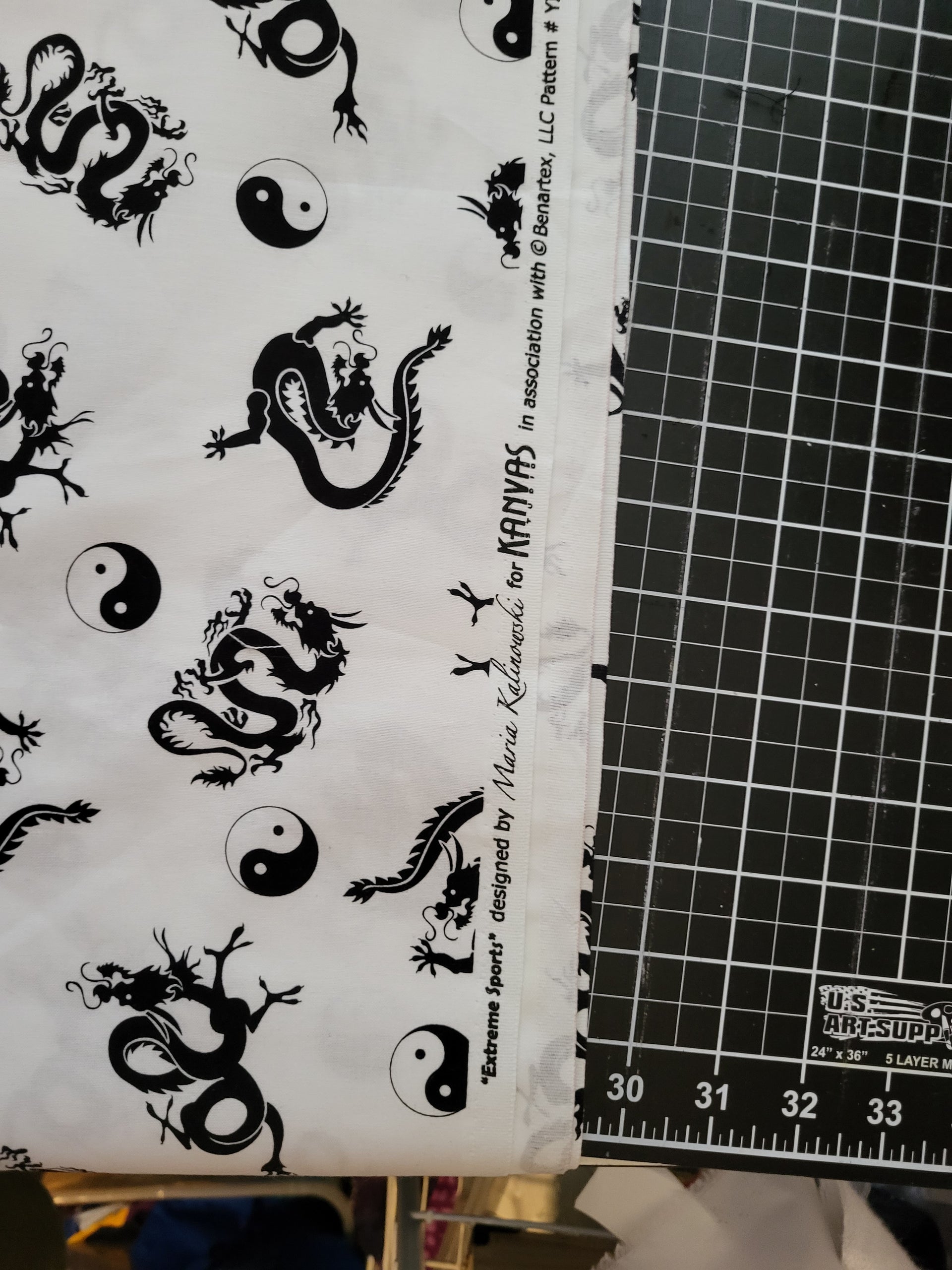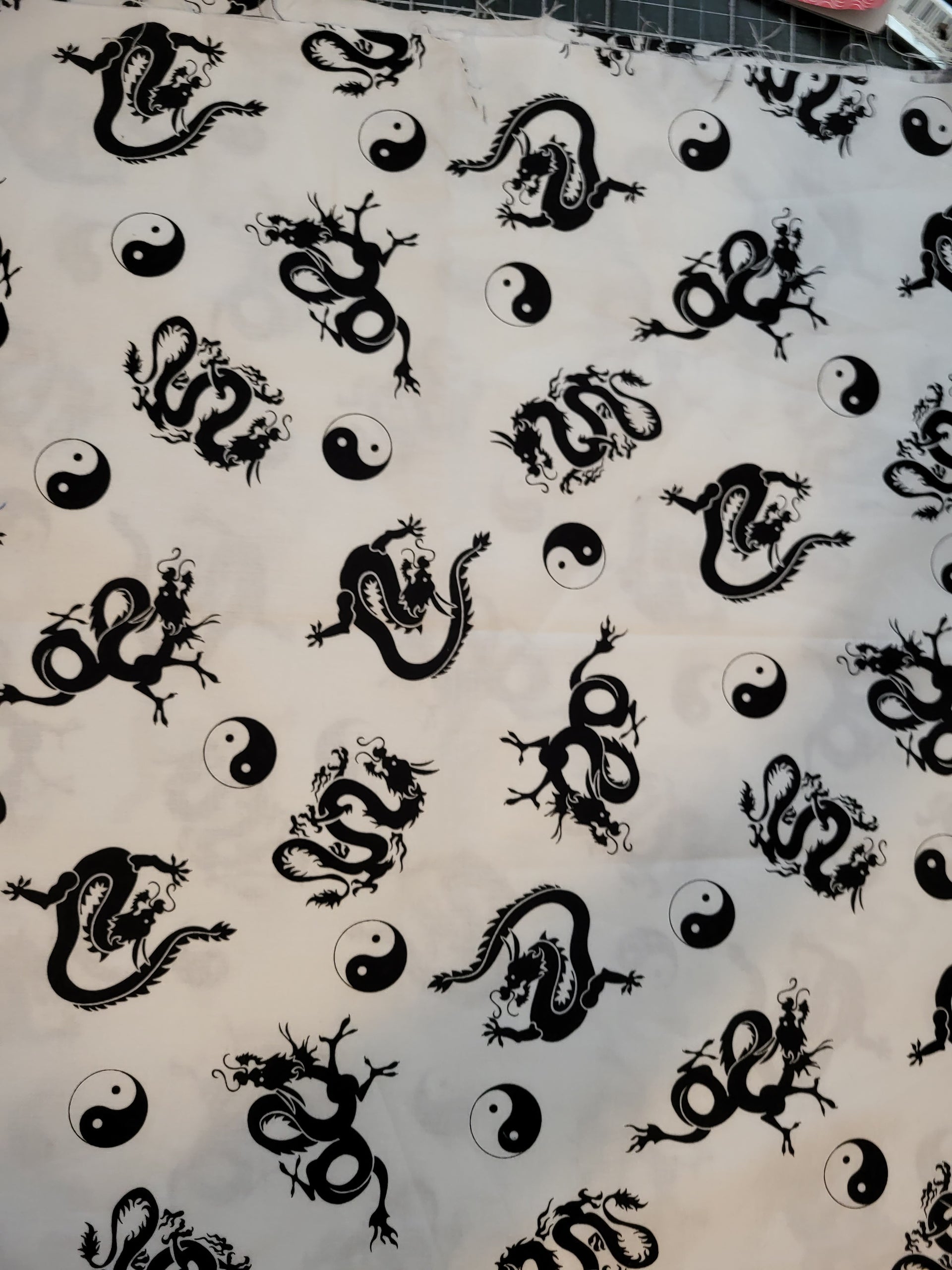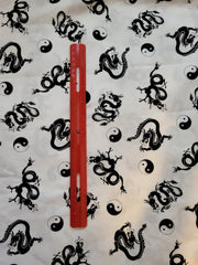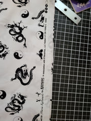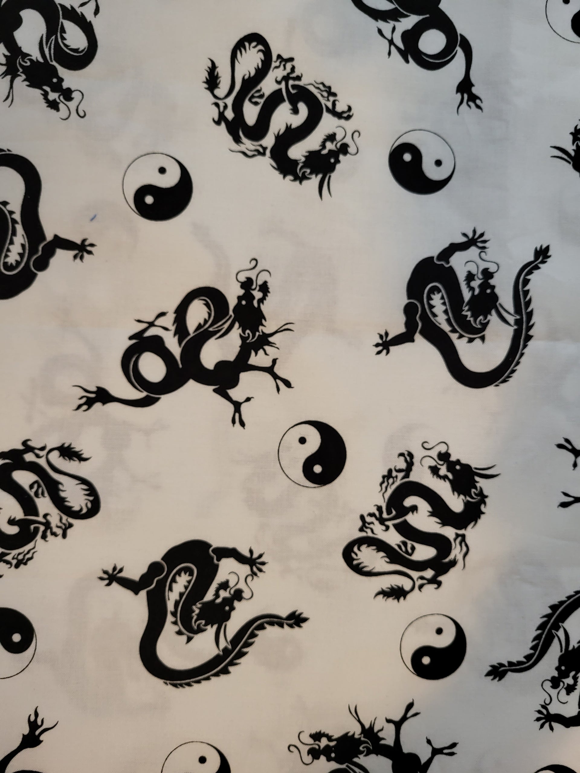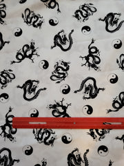 Asian Dragons Ying Yang black white cotton fabric bhy x 48" wide martial arts
