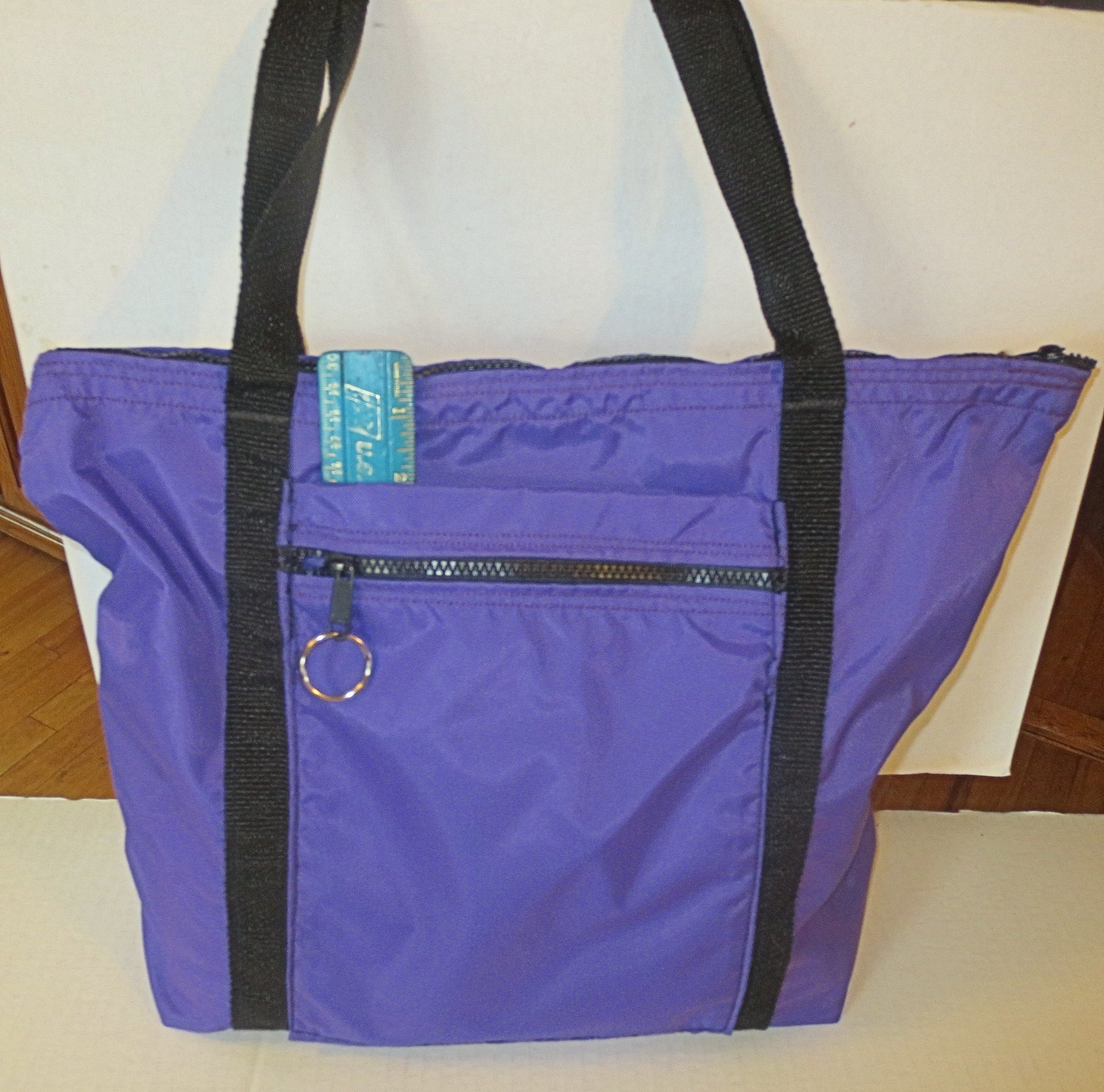 Purple zippered tote bag adjustable handles weather proof 2 outer zippered pockets