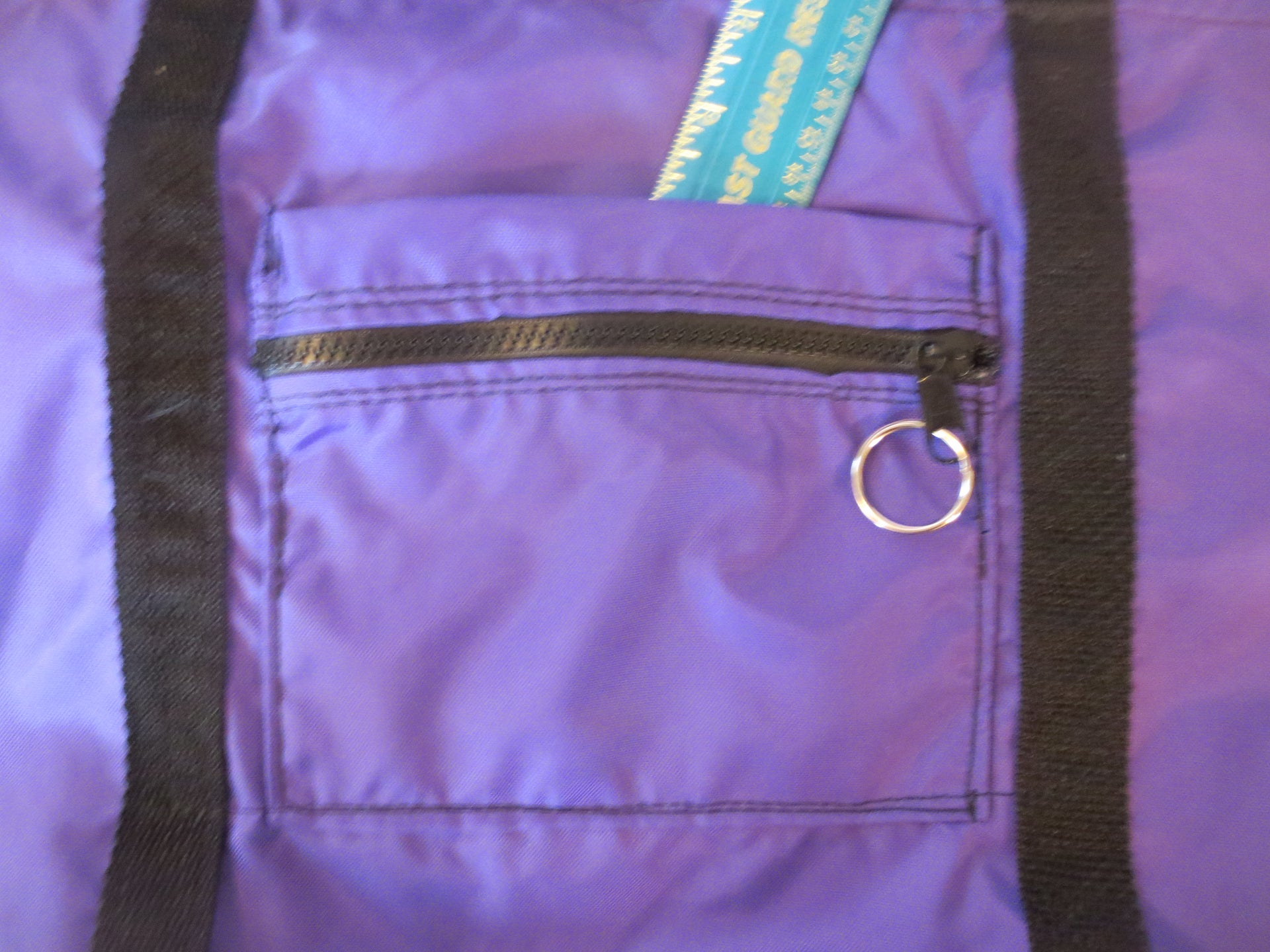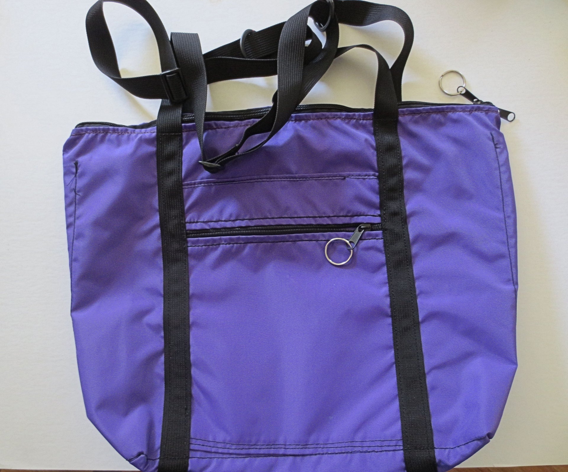 Purple zippered tote bag adjustable handles weather proof 2 outer zippered pockets, one inner pocket,  large purse project bag