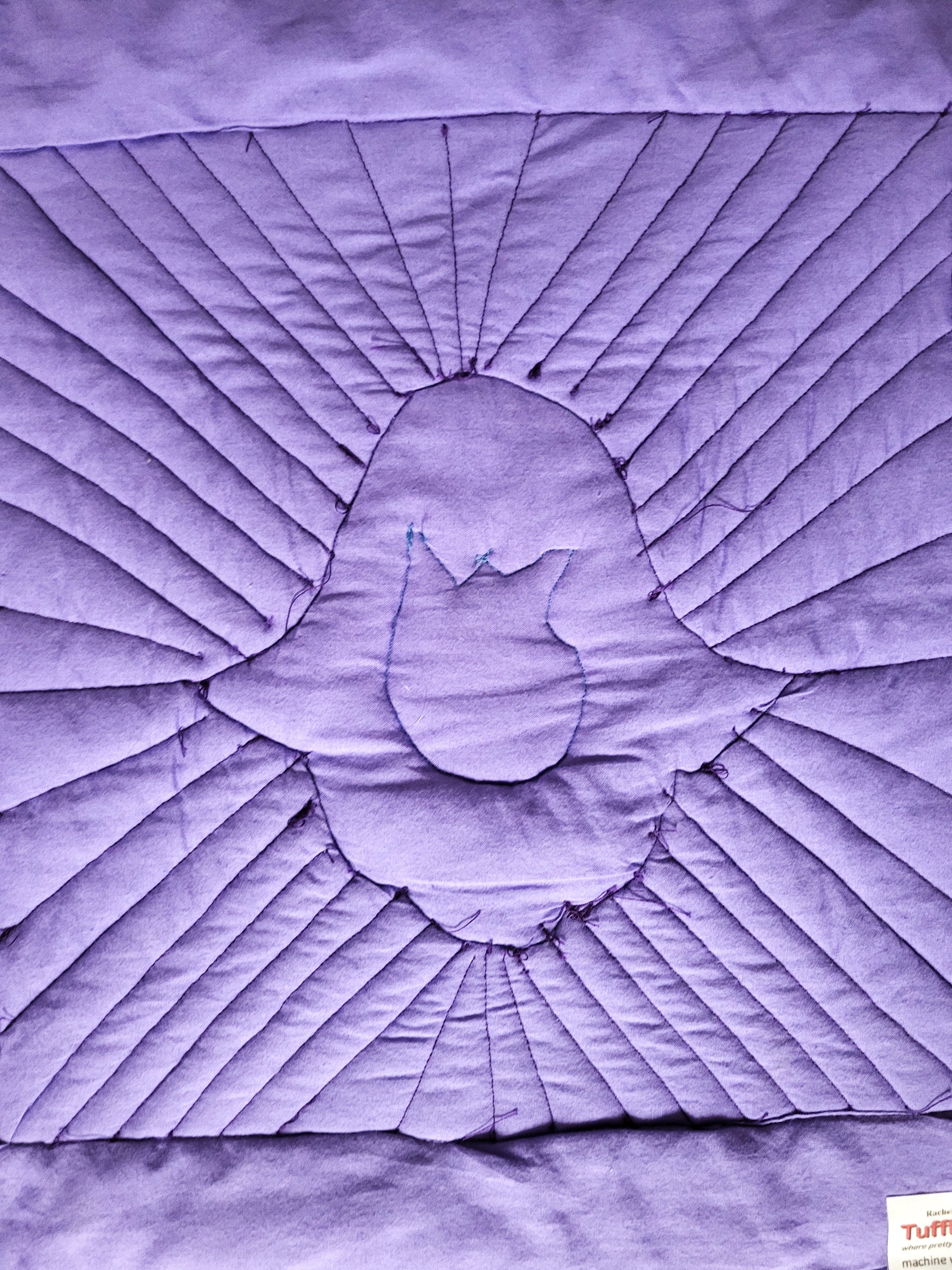 I quilted all around the hamsa with a rays formation.  Be sure to look at all of the pictures to appreciate the amount of quilting on this stunning piece.