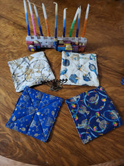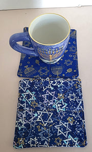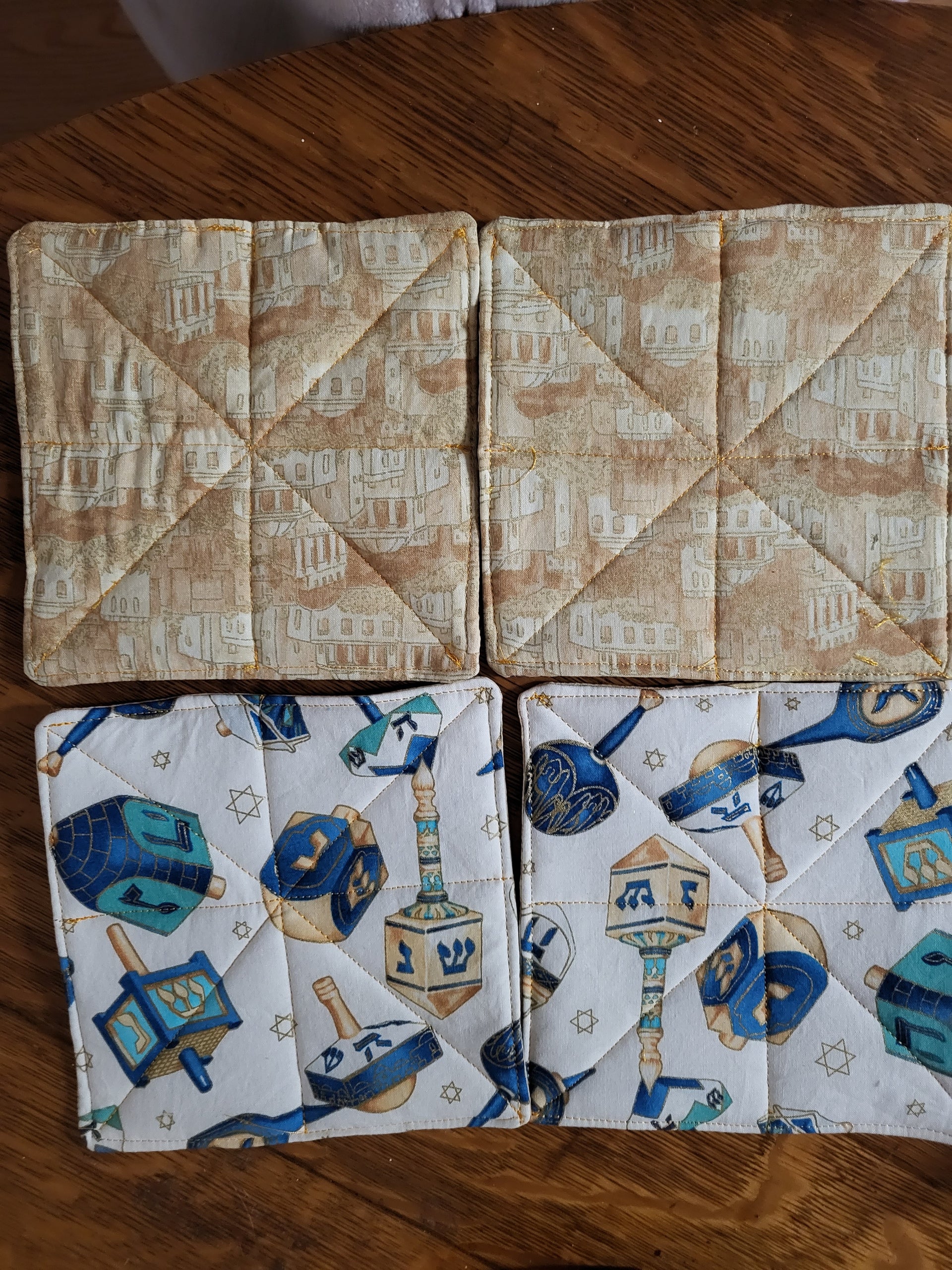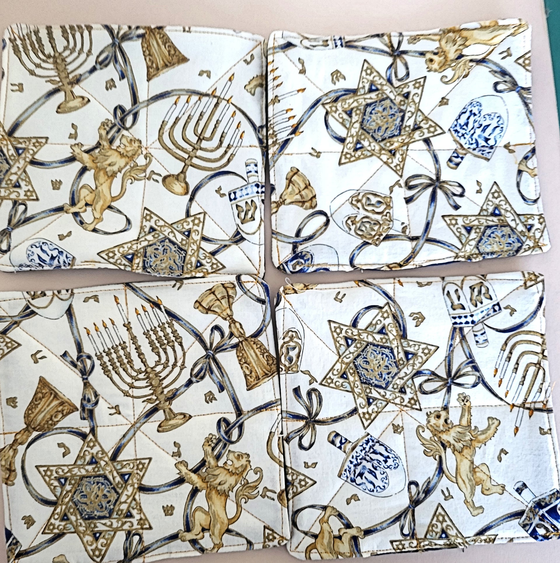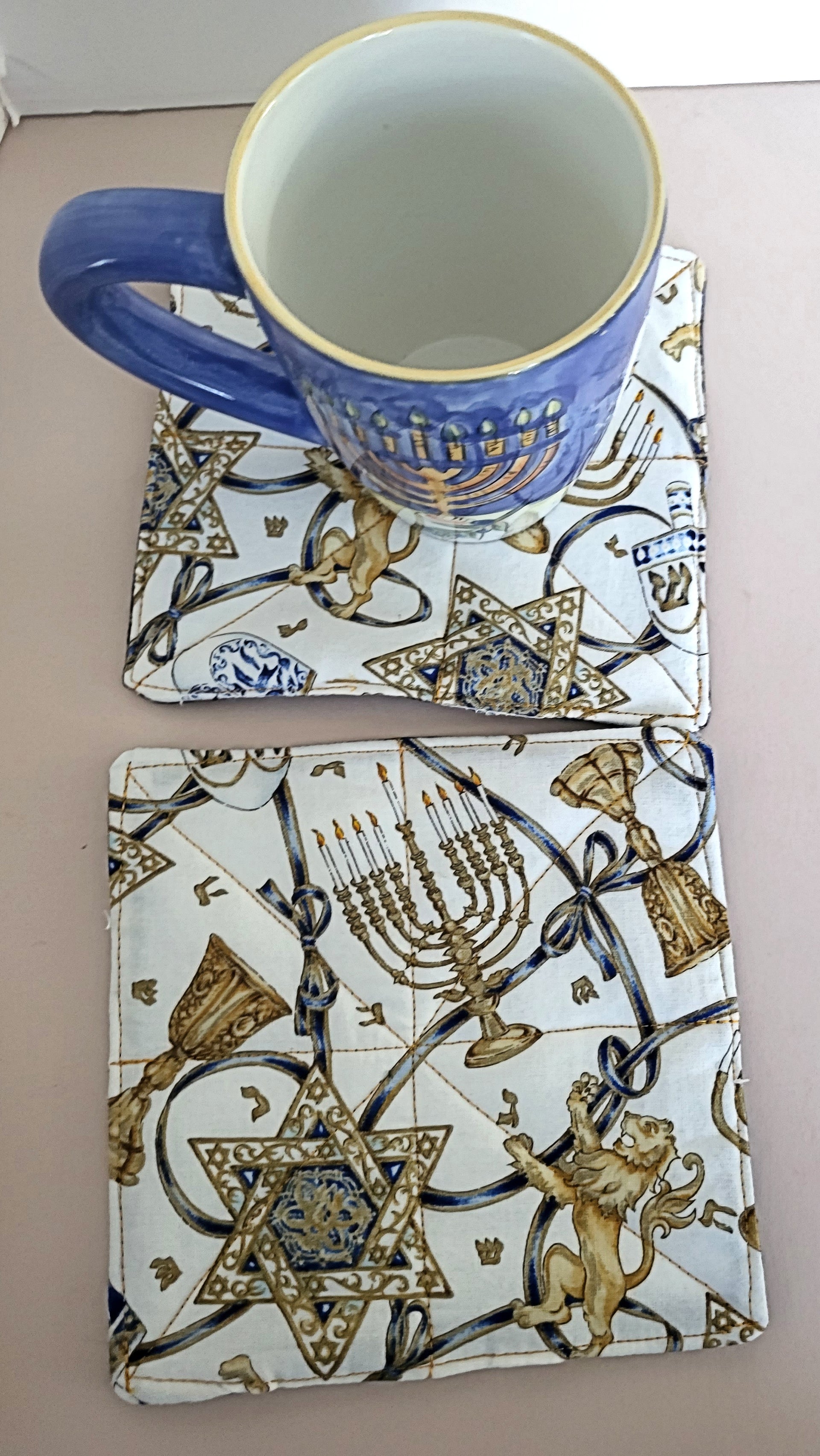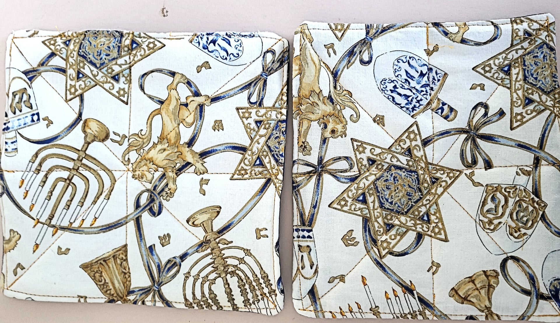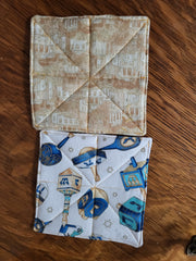 Judaica Mug Rugs insulated mini mats 6" x 6" choice of pattern Jewish Holidays, sold by the each, 100% cotton, reversible, show your Jewish pride!