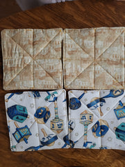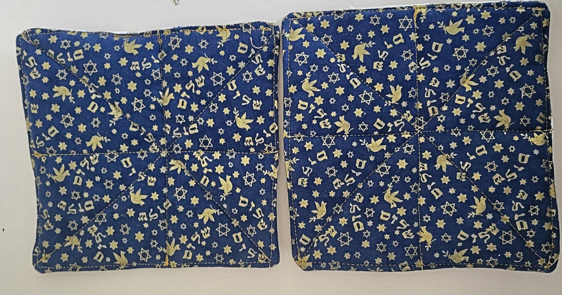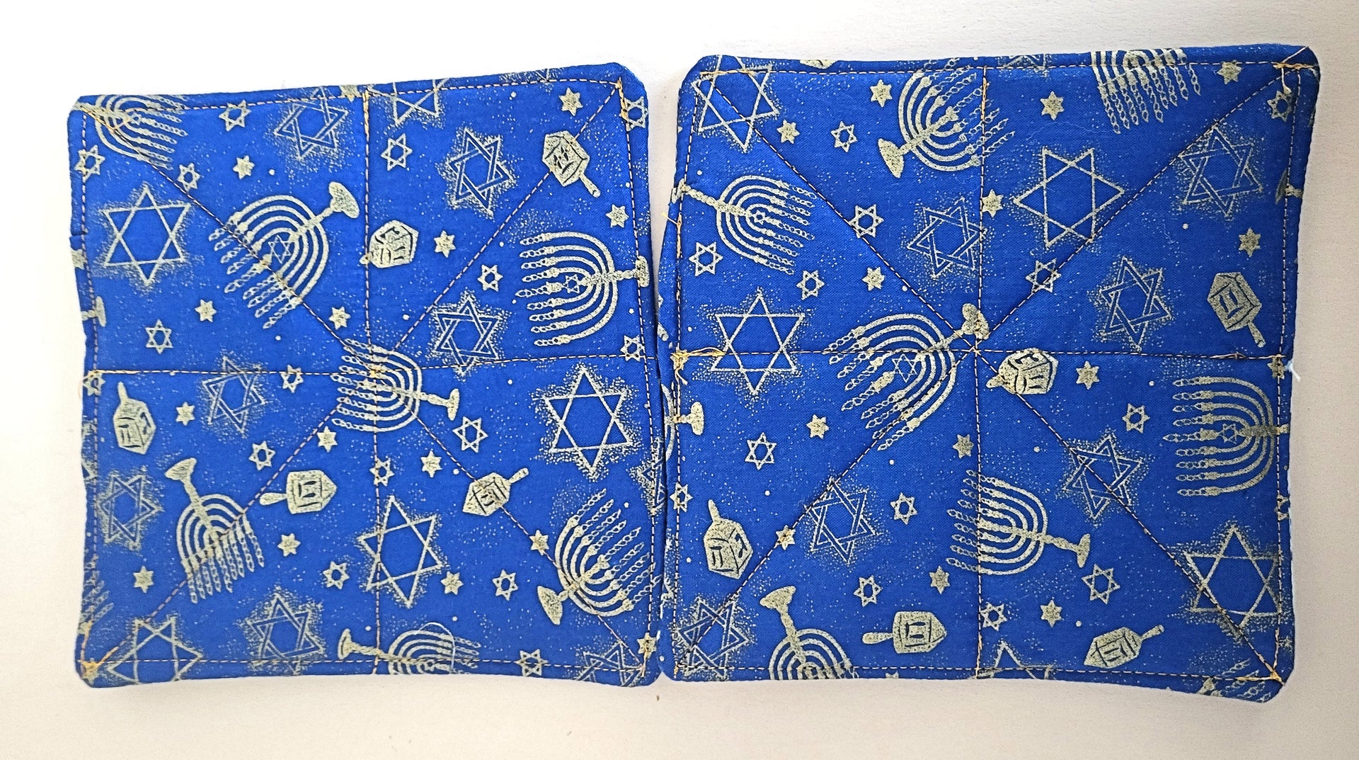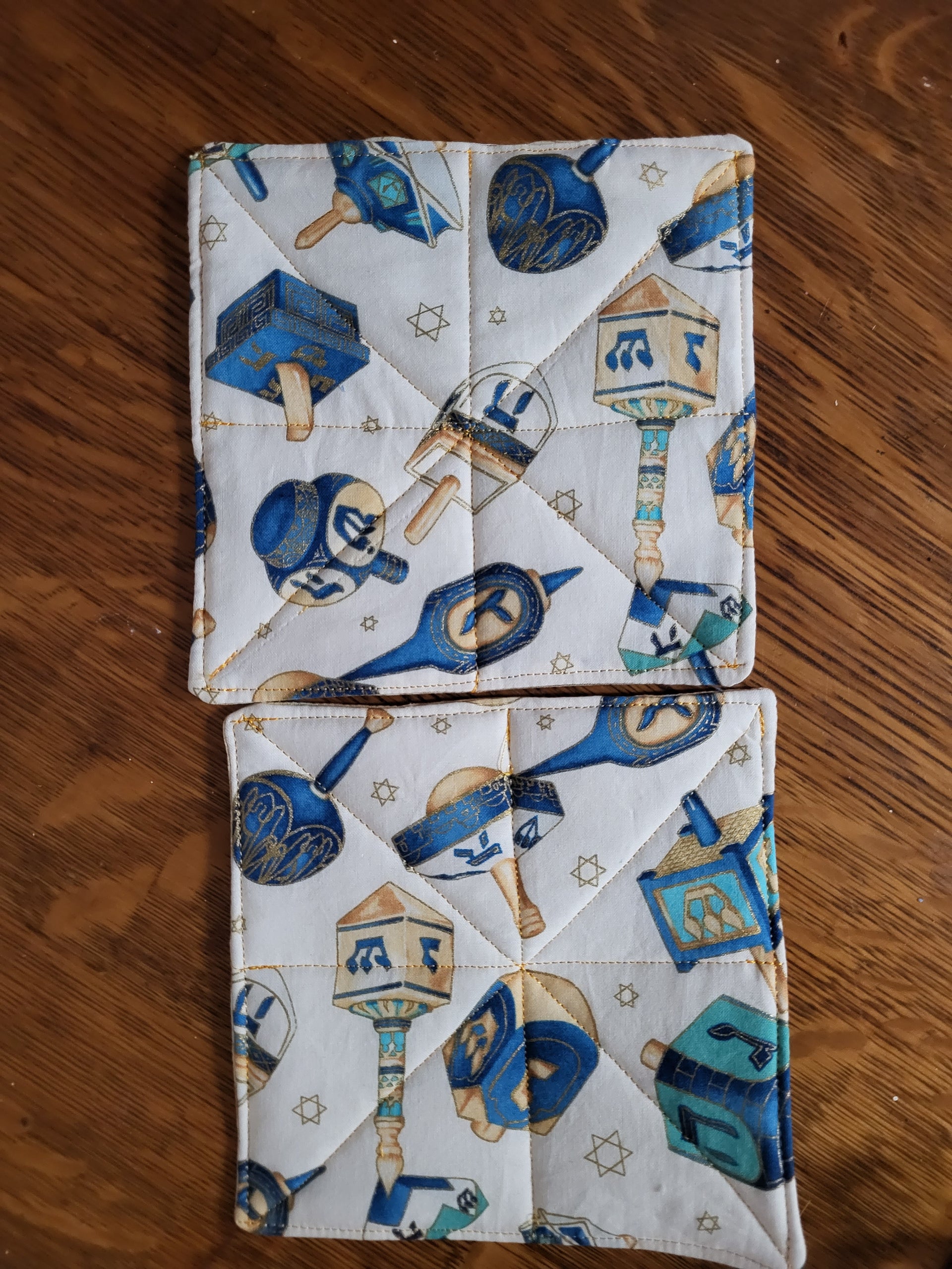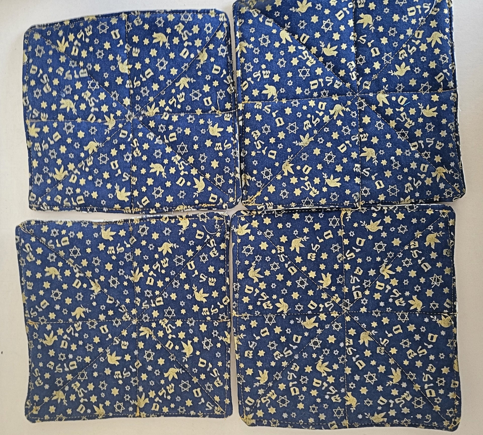 Judaica Mug Rugs insulated mini mats 6" x 6" choice of pattern Jewish Holidays, sold by the each, 100% cotton, reversible, show your Jewish pride!