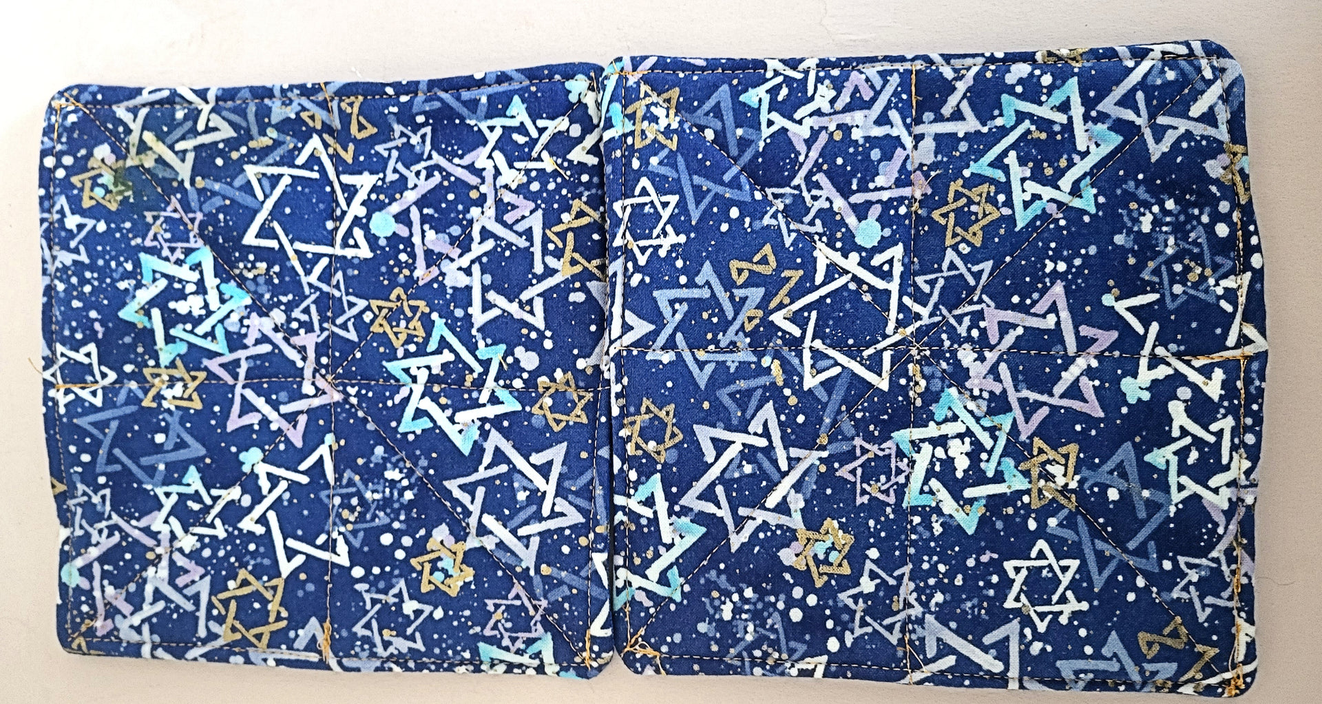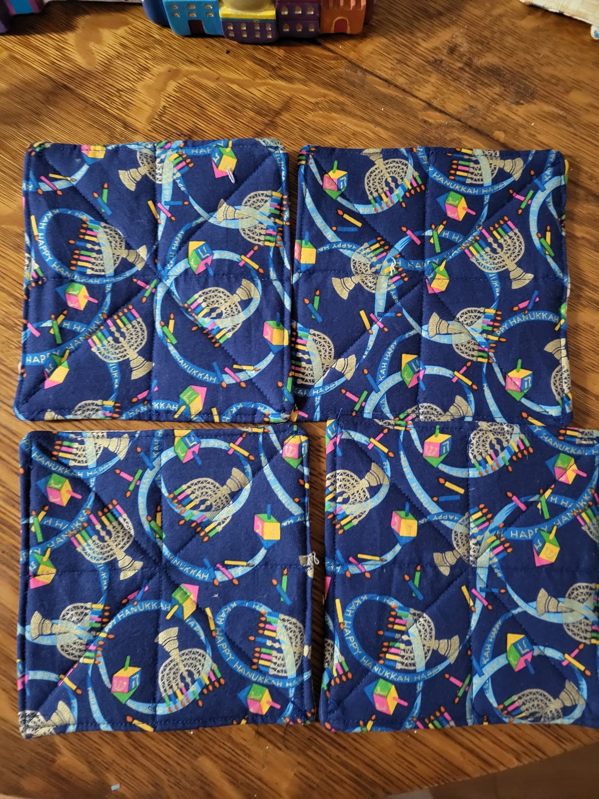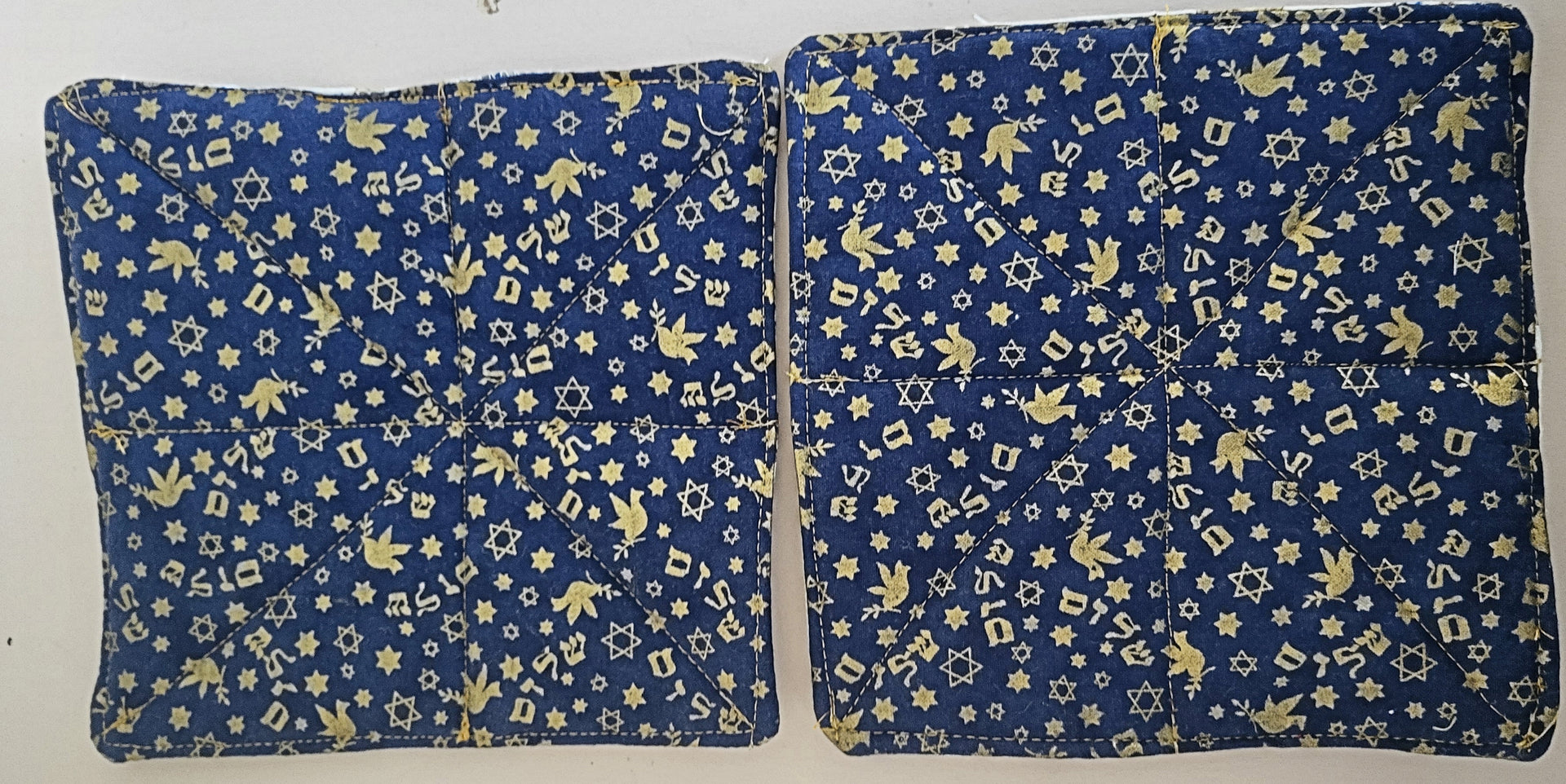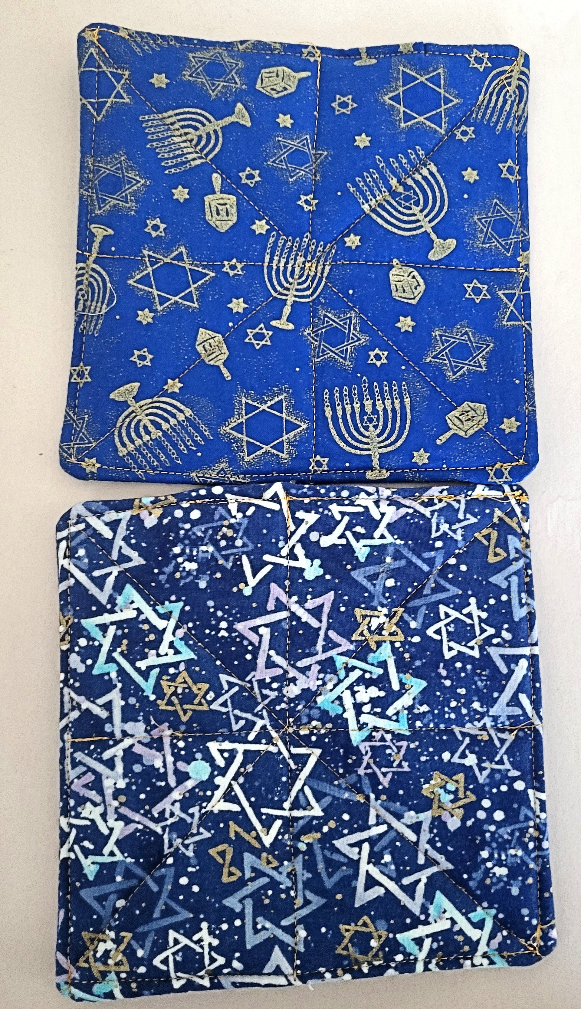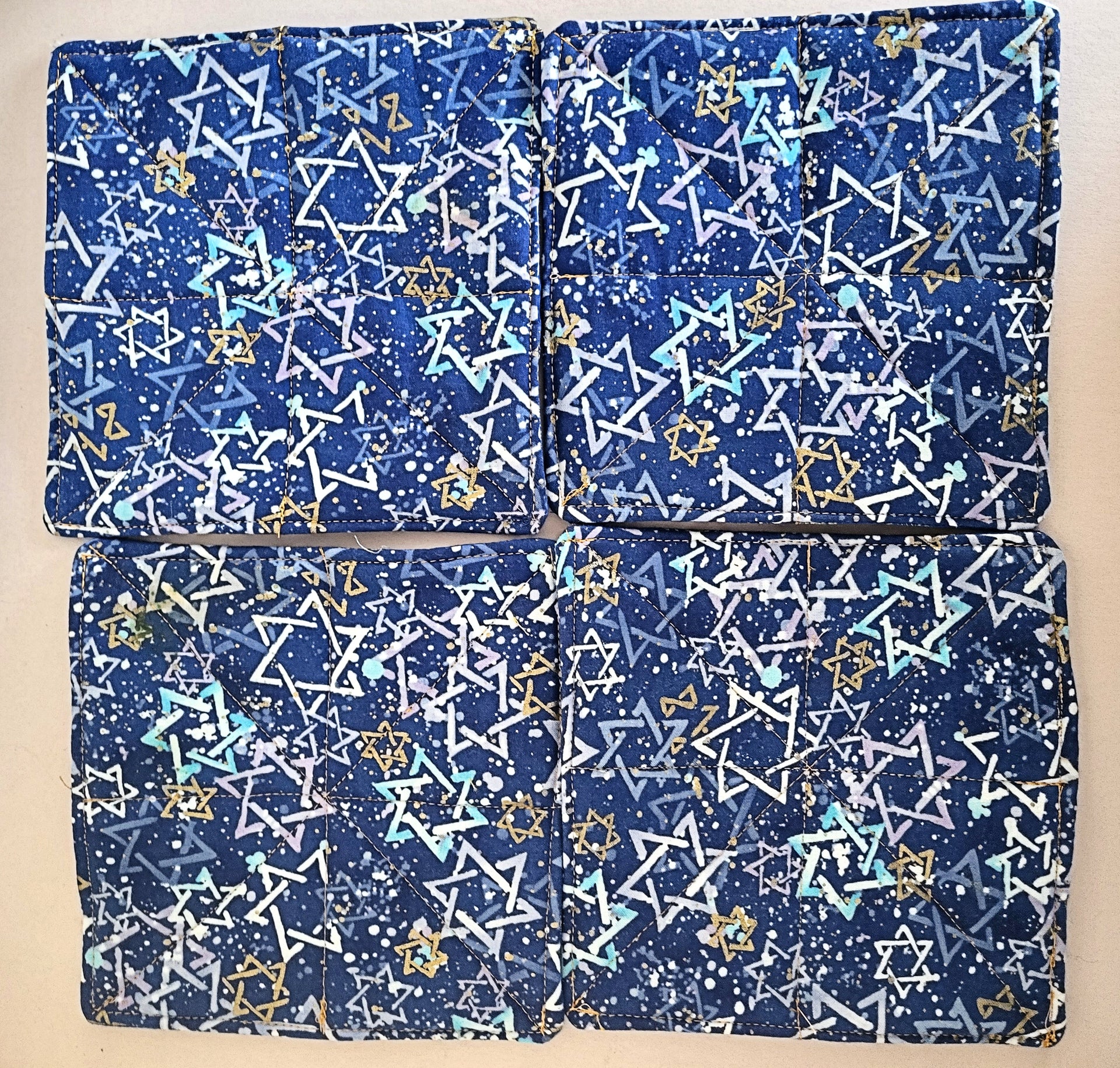 Judaica Mug Rugs insulated mini mats 6" x 6" choice of pattern Jewish Holidays, sold by the each, 100% cotton, reversible, show your Jewish pride!