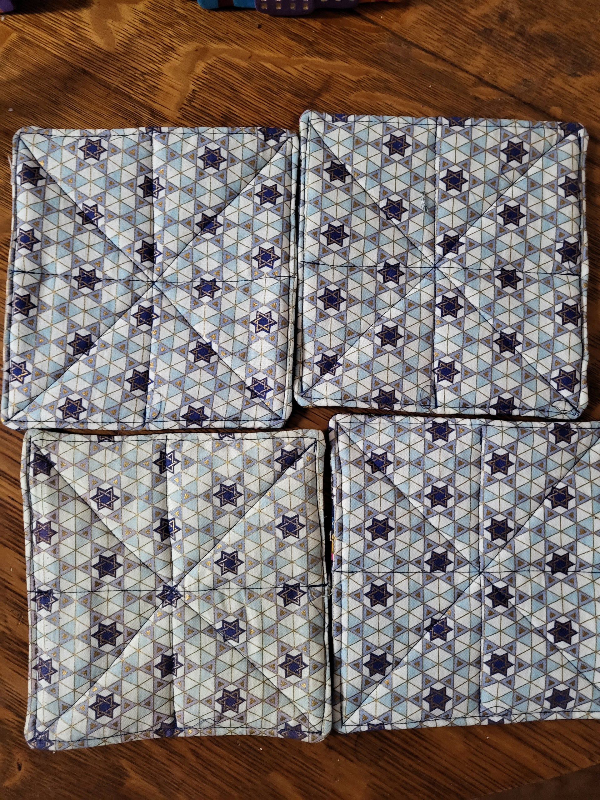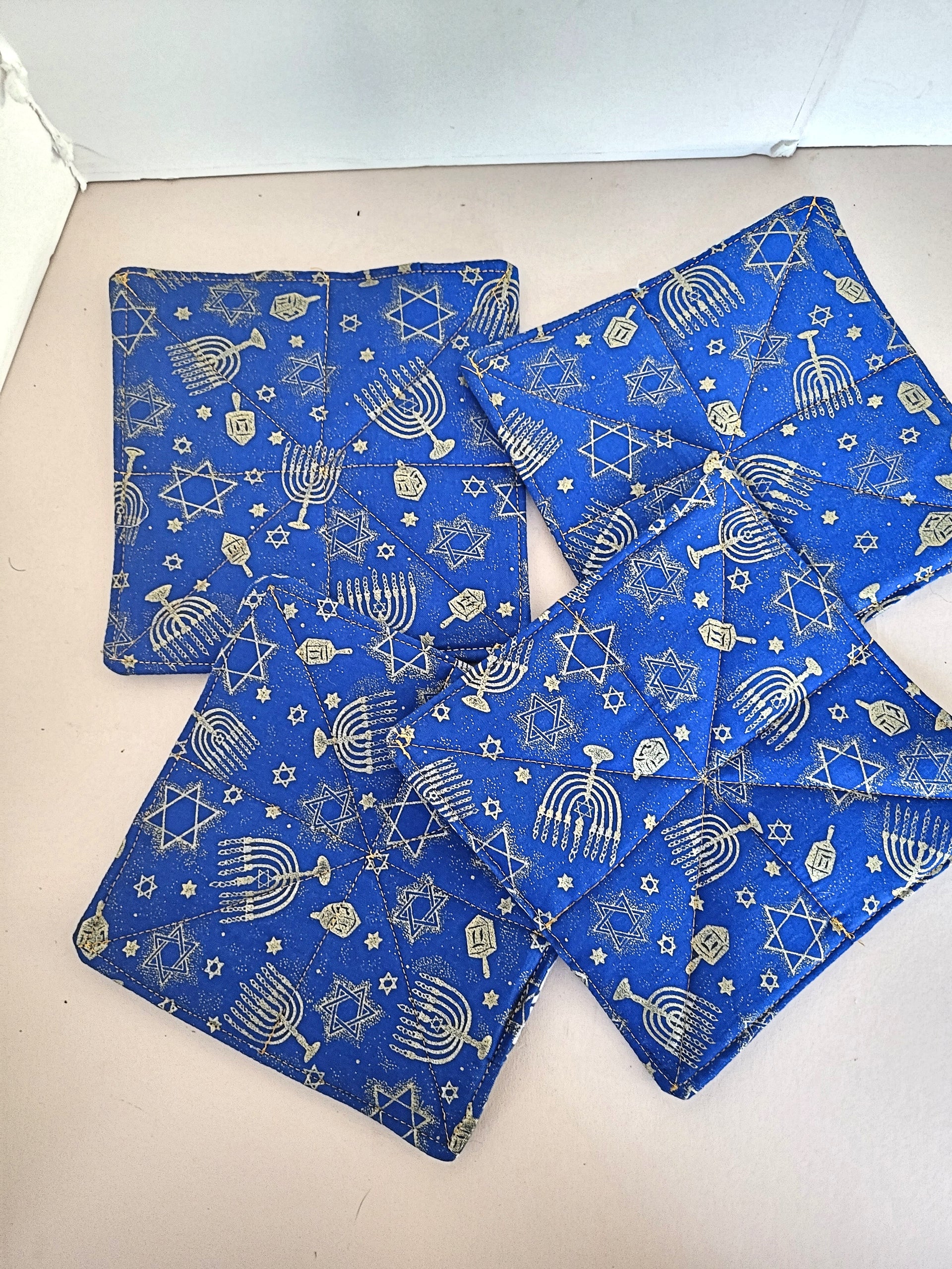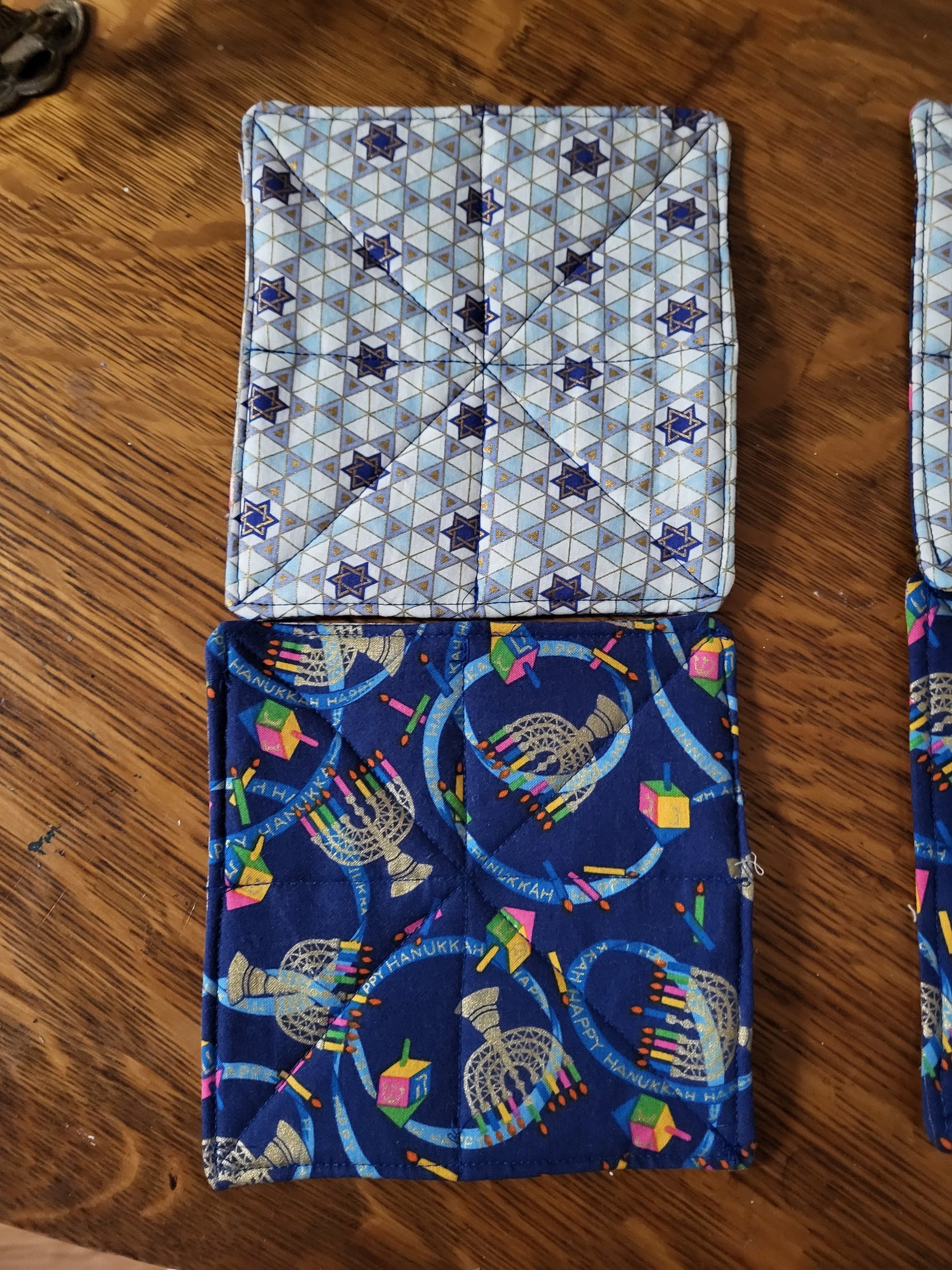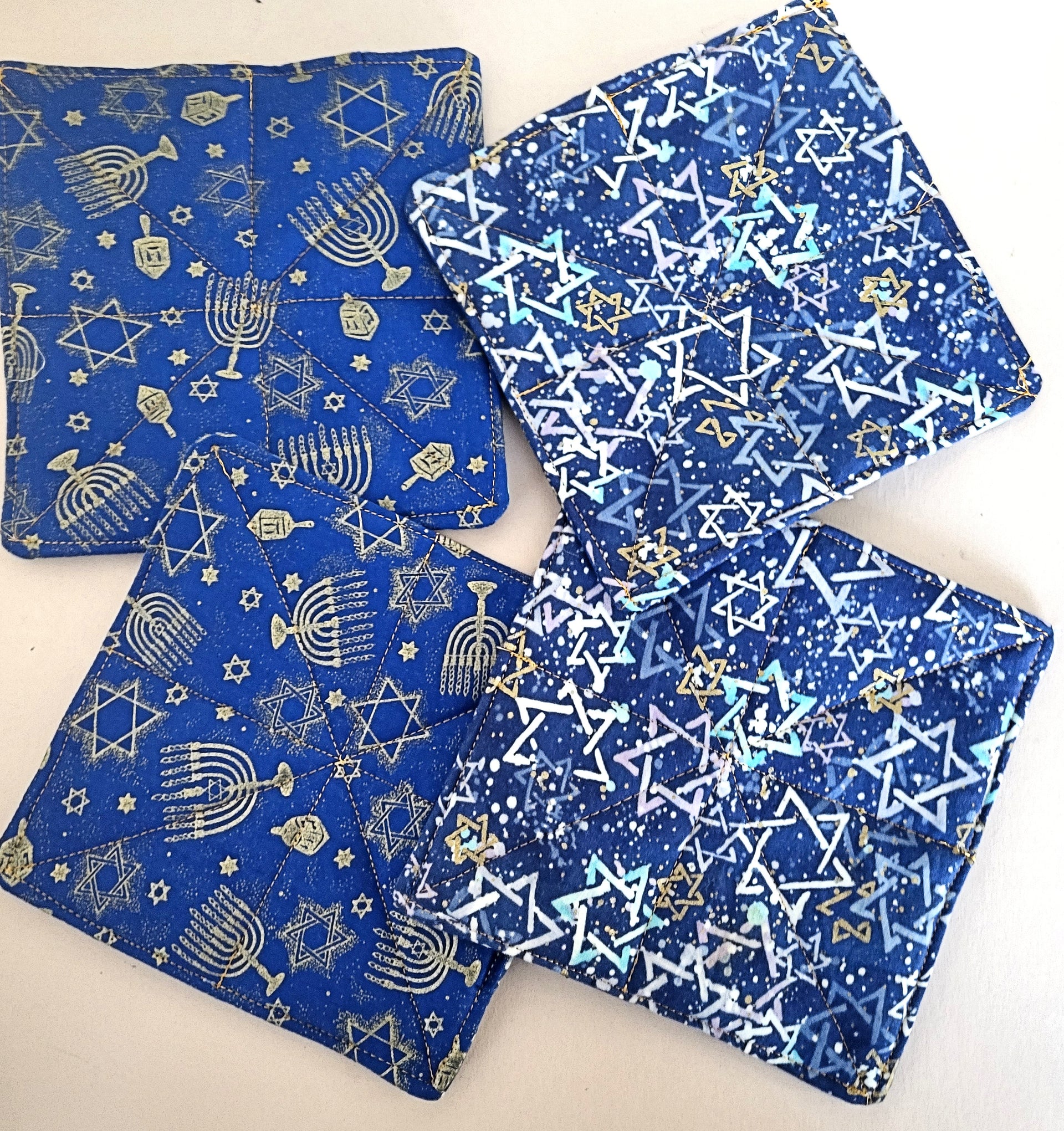Judaica Mug Rugs insulated mini mats 6" x 6" choice of pattern Jewish Holidays, sold by the each, 100% cotton, reversible, show your Jewish pride!