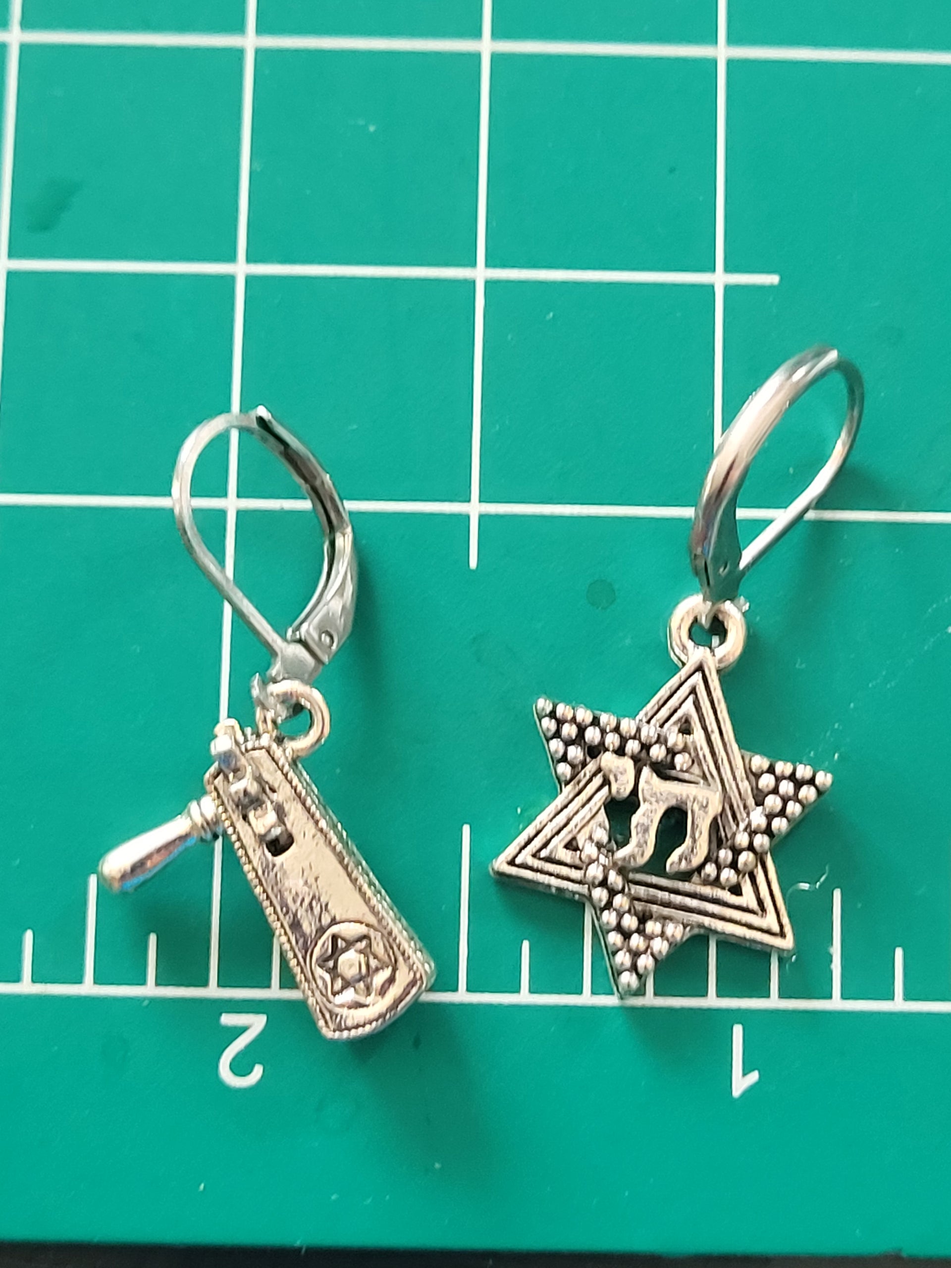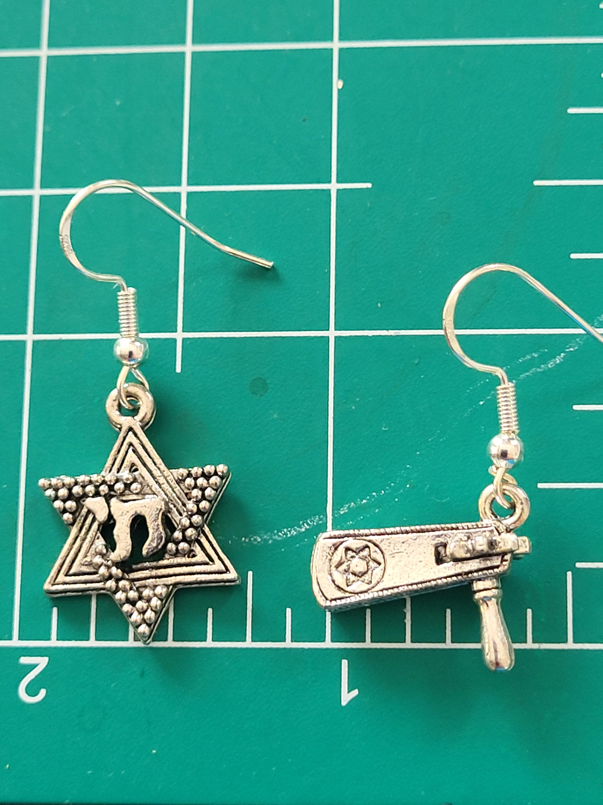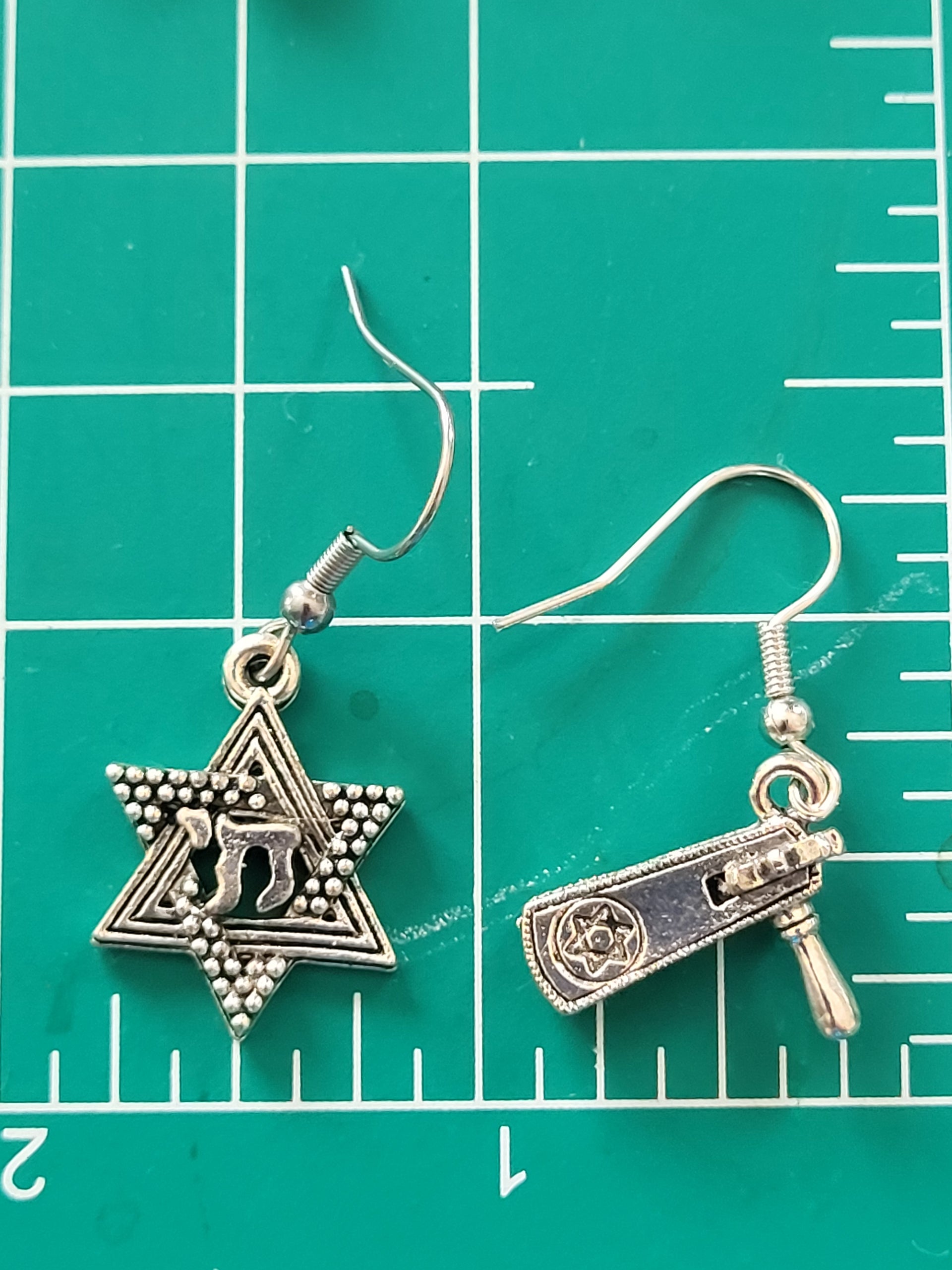 Purim Earrings Groggers, Hamentaschen and Stars of David w/ chi