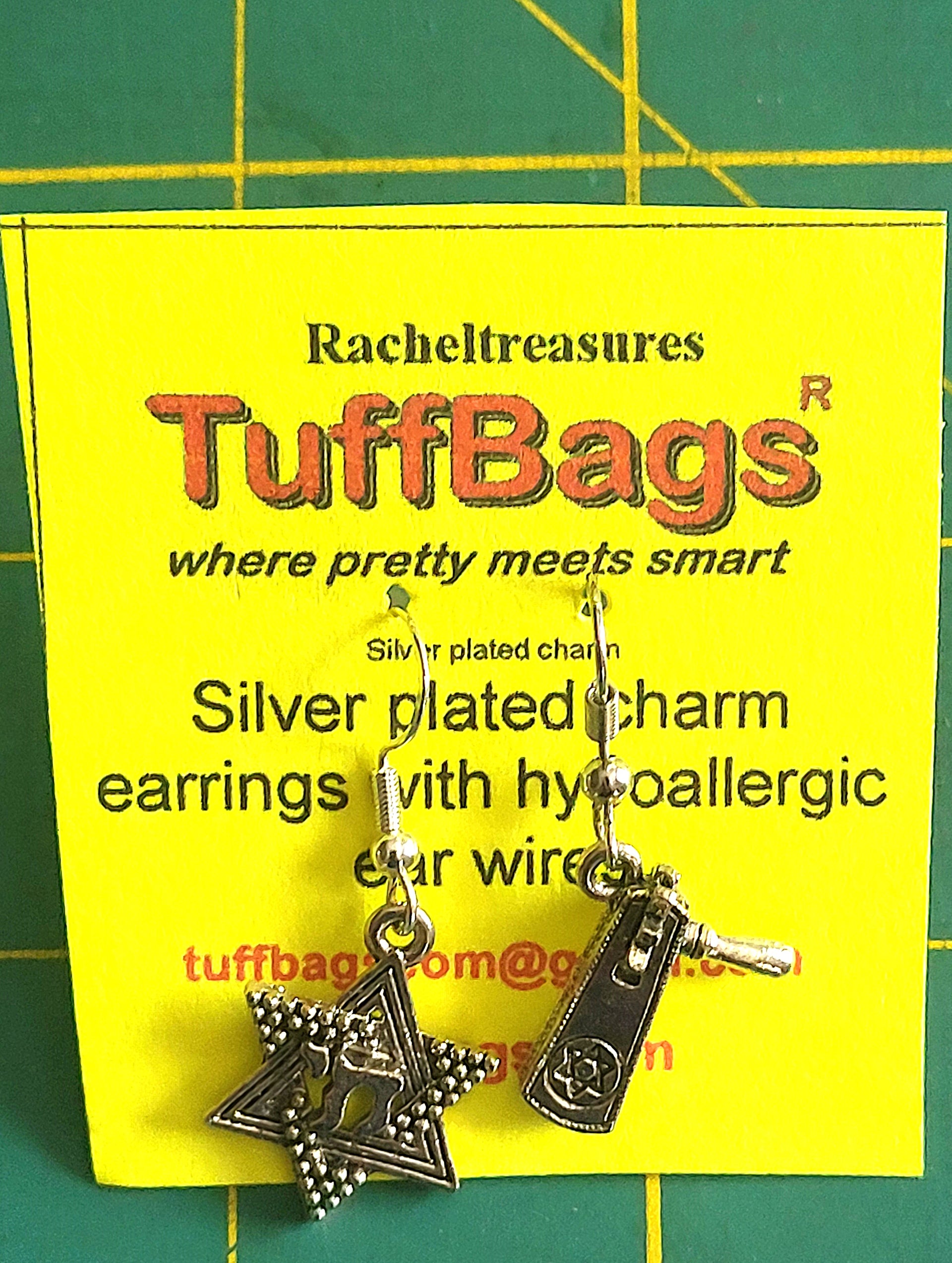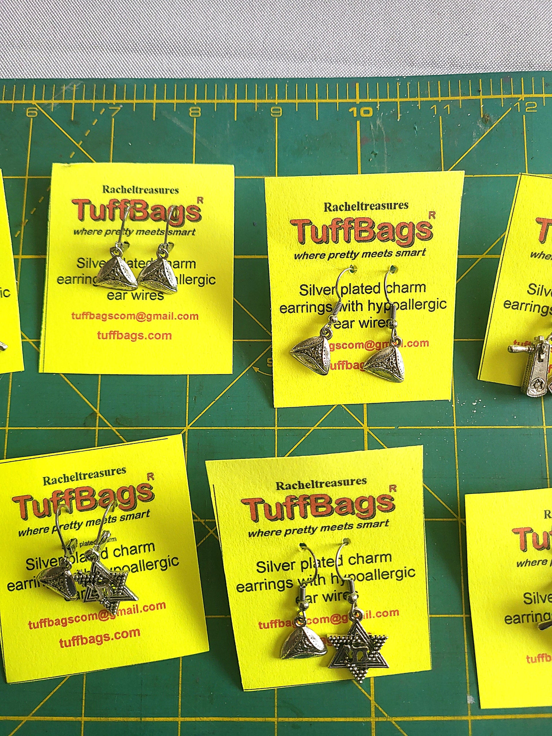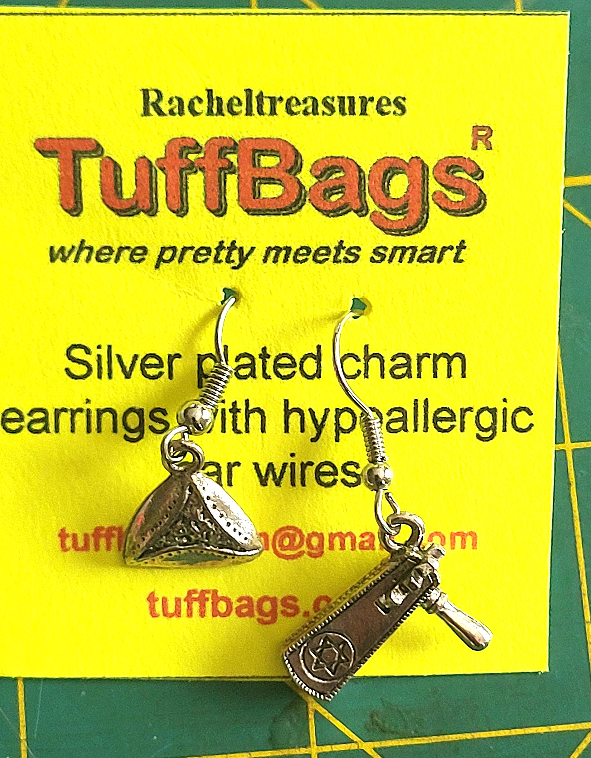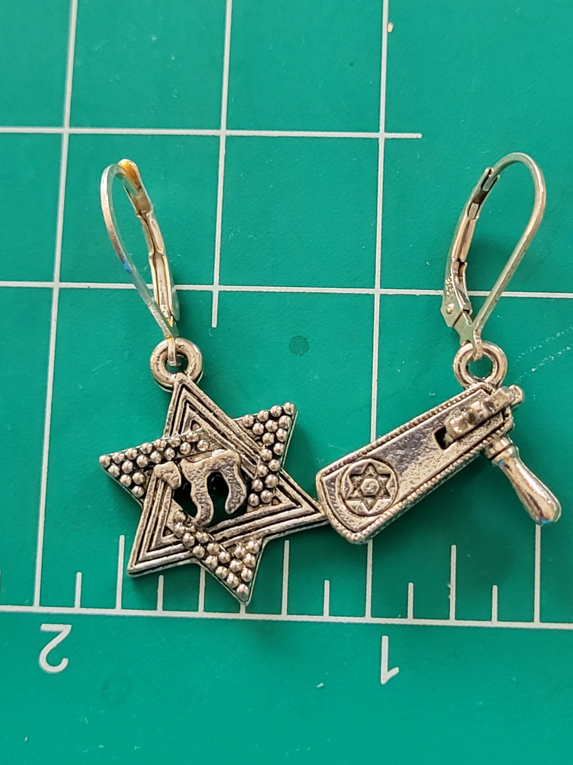 Purim Earrings Groggers, Hamentaschen and Stars of David w/ chi