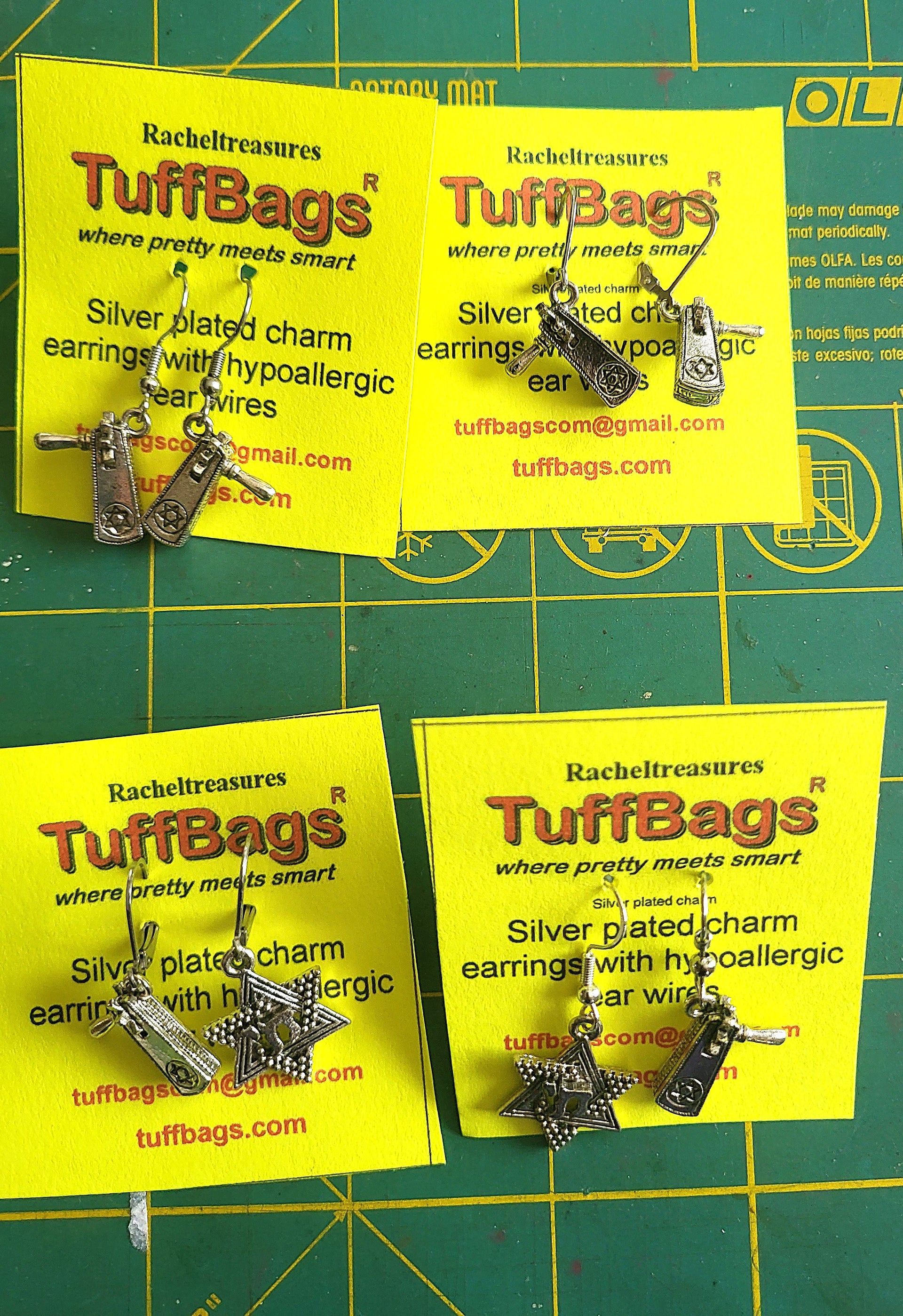Each pair of earrings is handcrafted from 100 % USA made charms and ear wires.