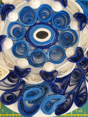 Quilled Hamsa blue and white, one of a kind wall art piece.