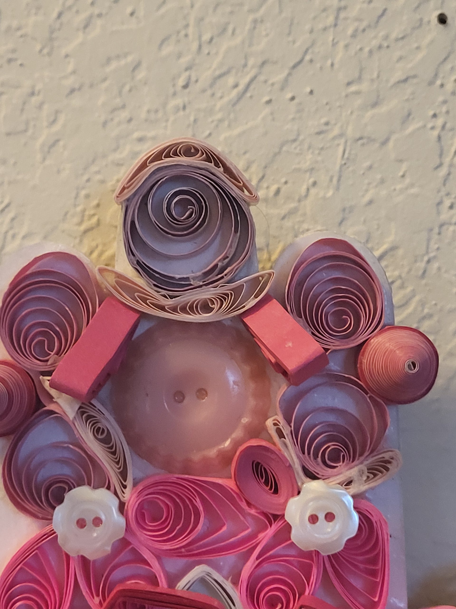 This beautiful quilled button art work makes a great gift for a breast cancer survivor or anyone that loves pink!