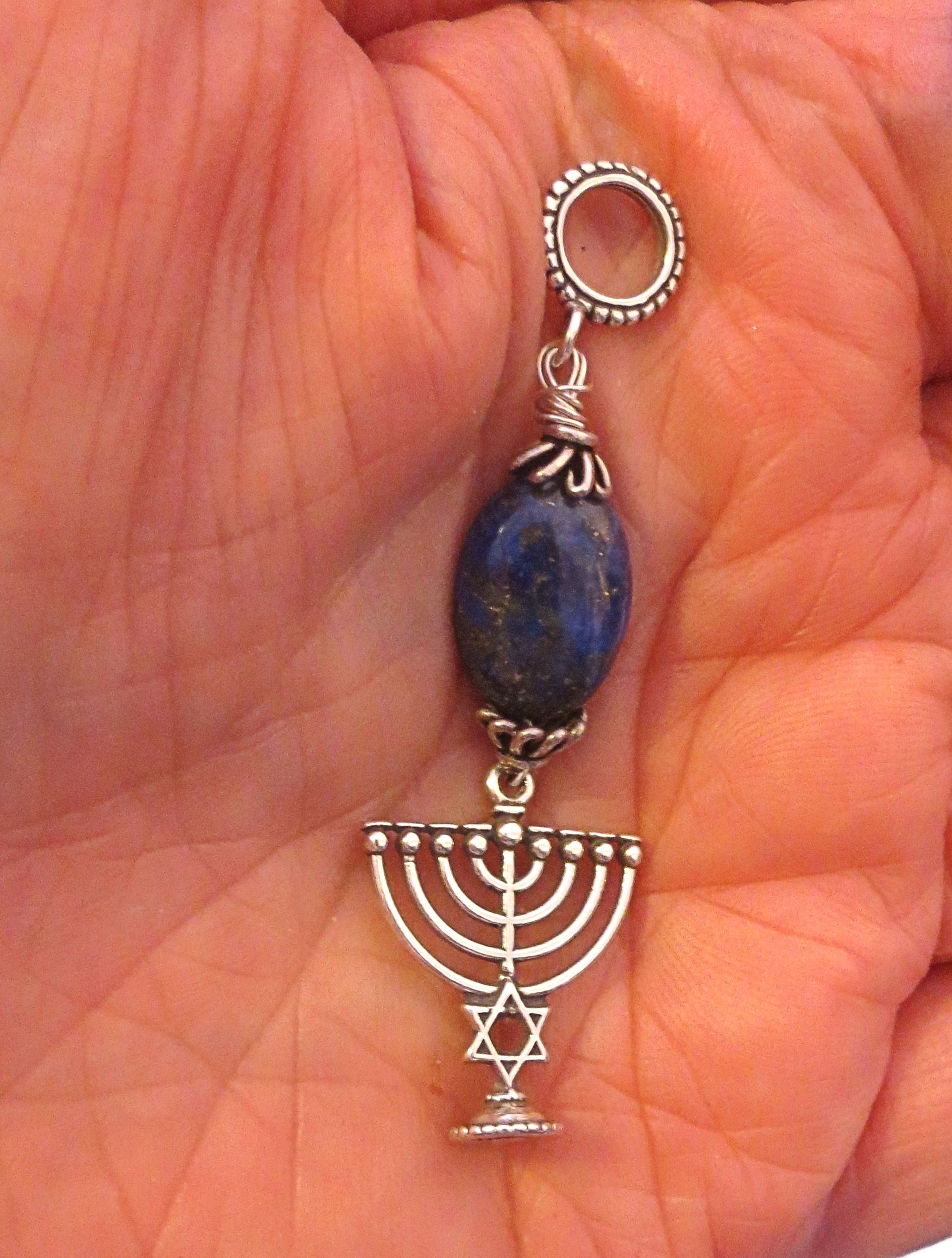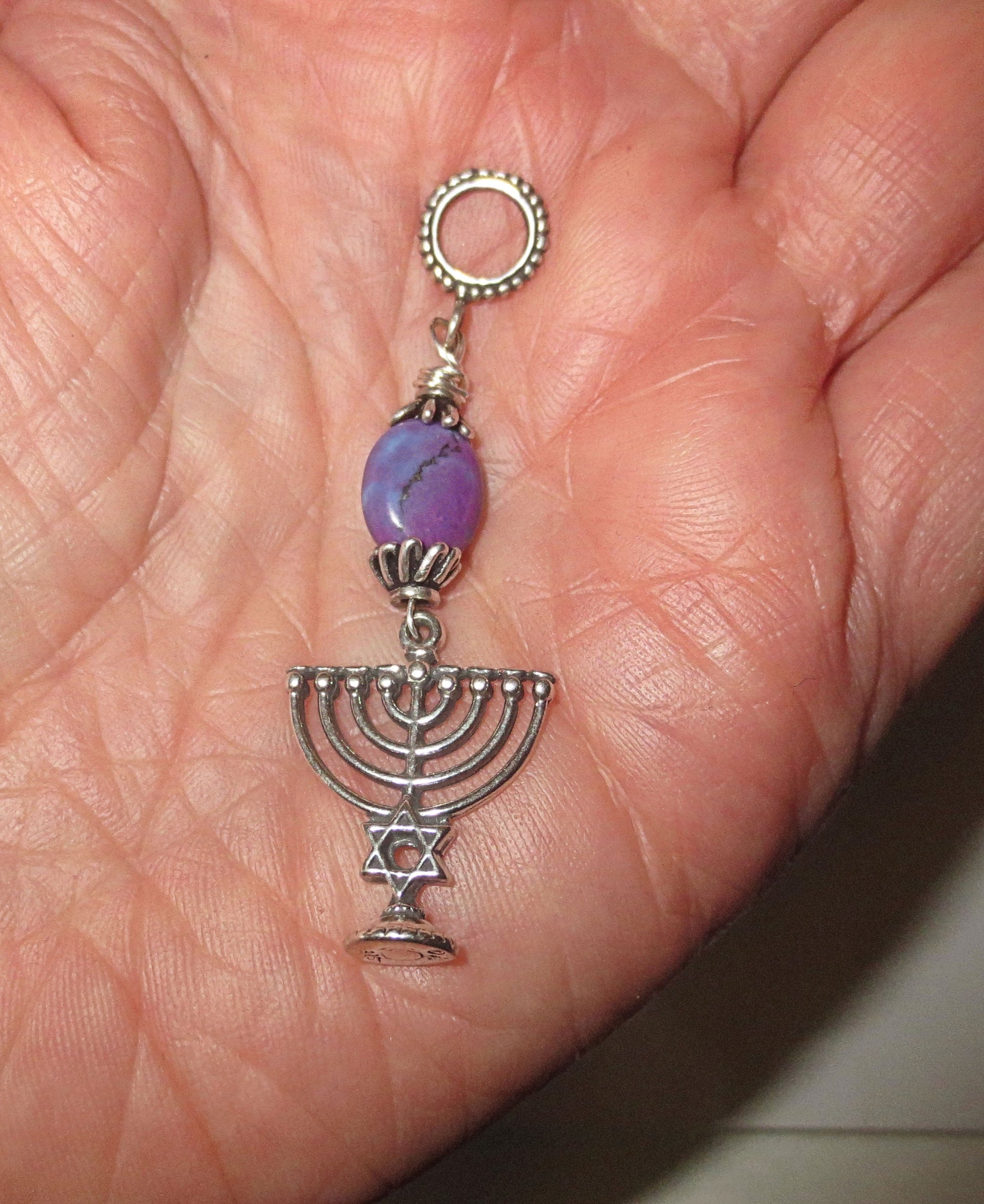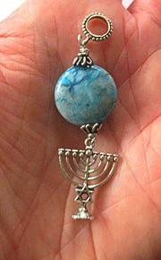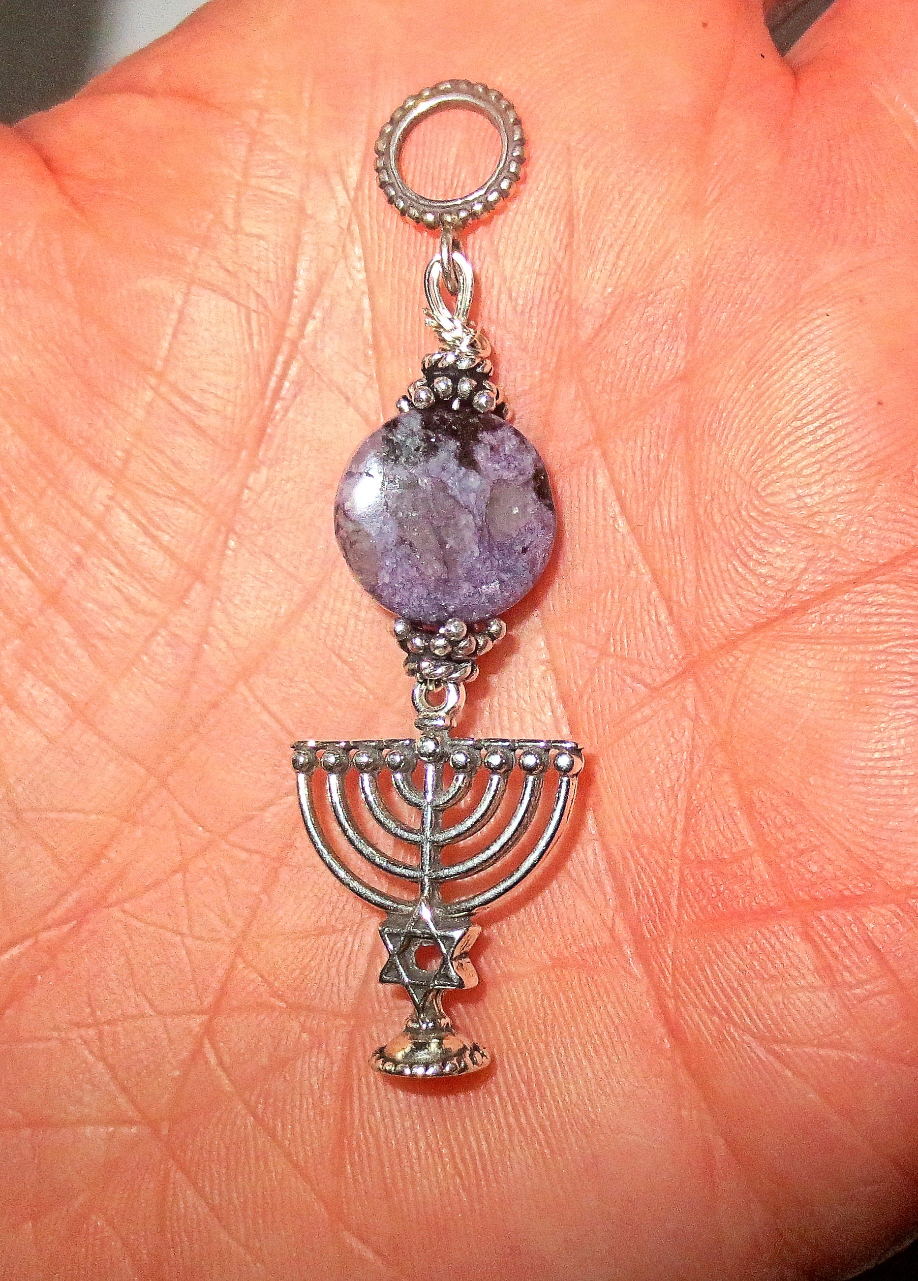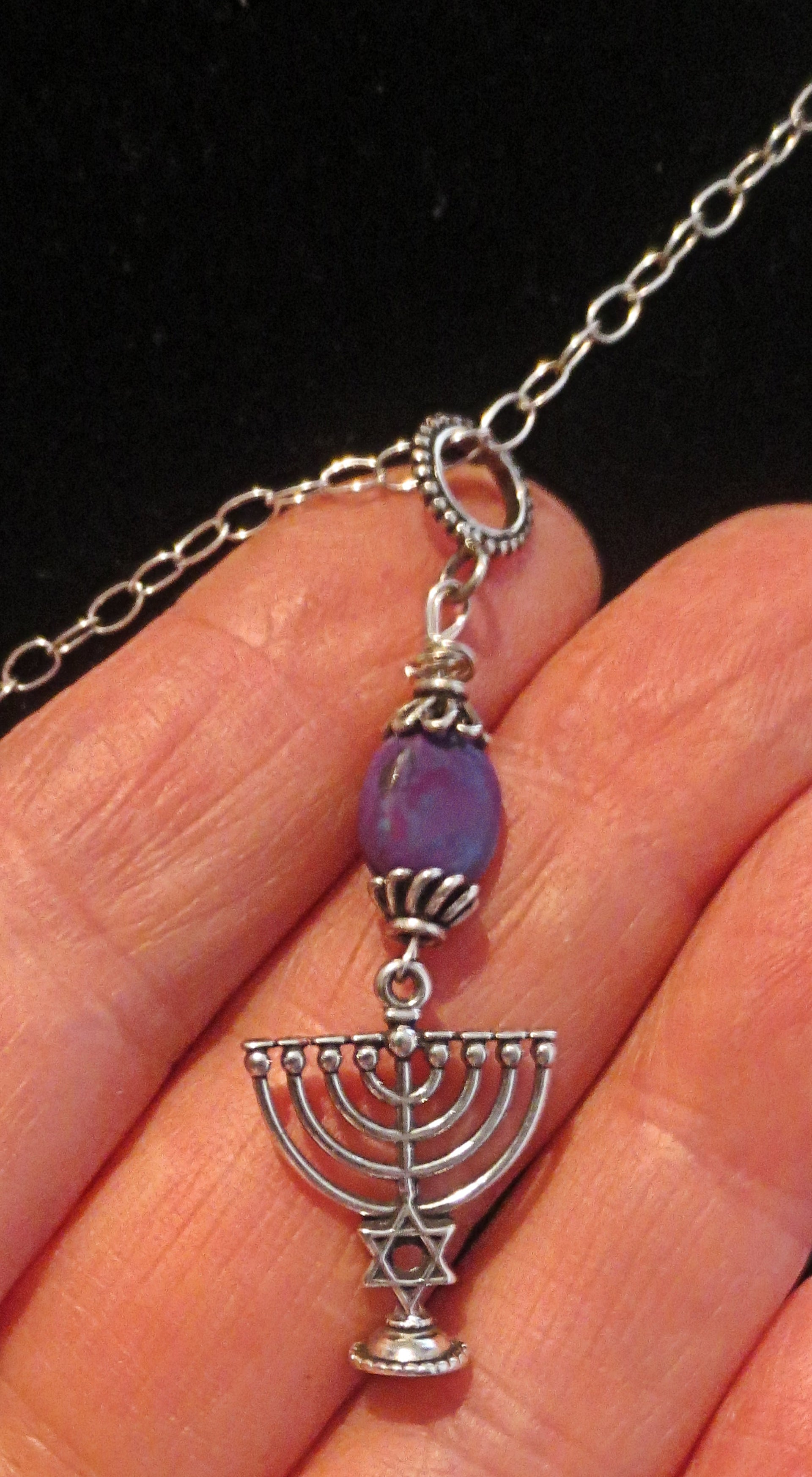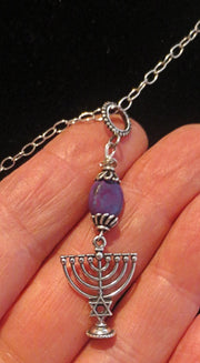 Hanukkah Menorah with beautiful gemstone pendant all sterling silver Hanikkiah--Lapis Lazuli, Kingman Purple Turquoise, Sea Sediment Jasper, Azurite, crazy lace blue agate, purple sesame jasper