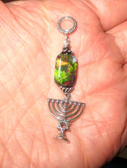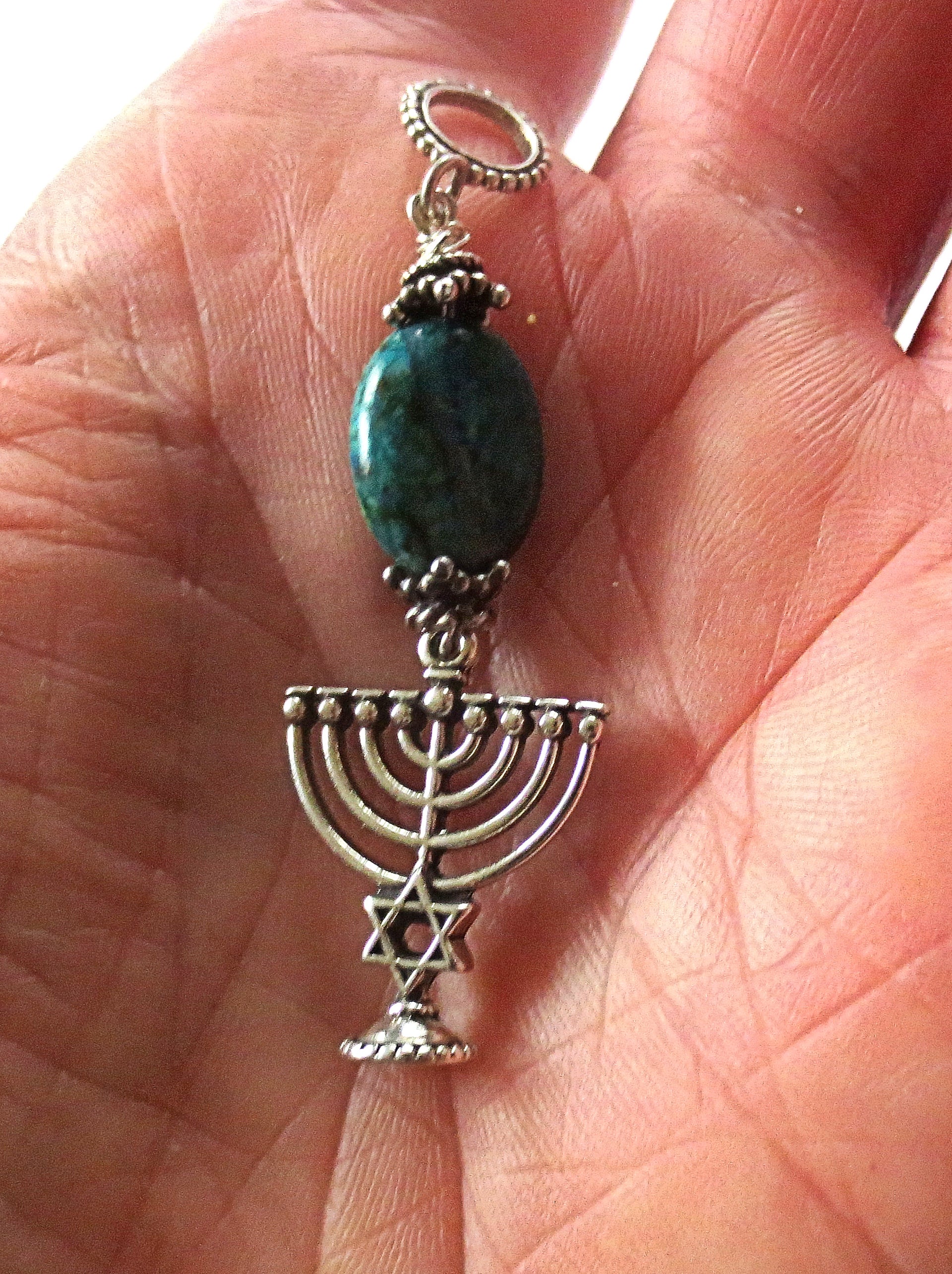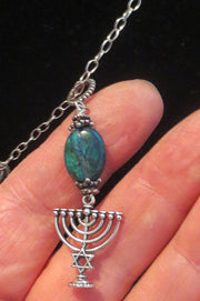 Hanukkah Menorah with beautiful gemstone pendant all sterling silver