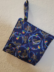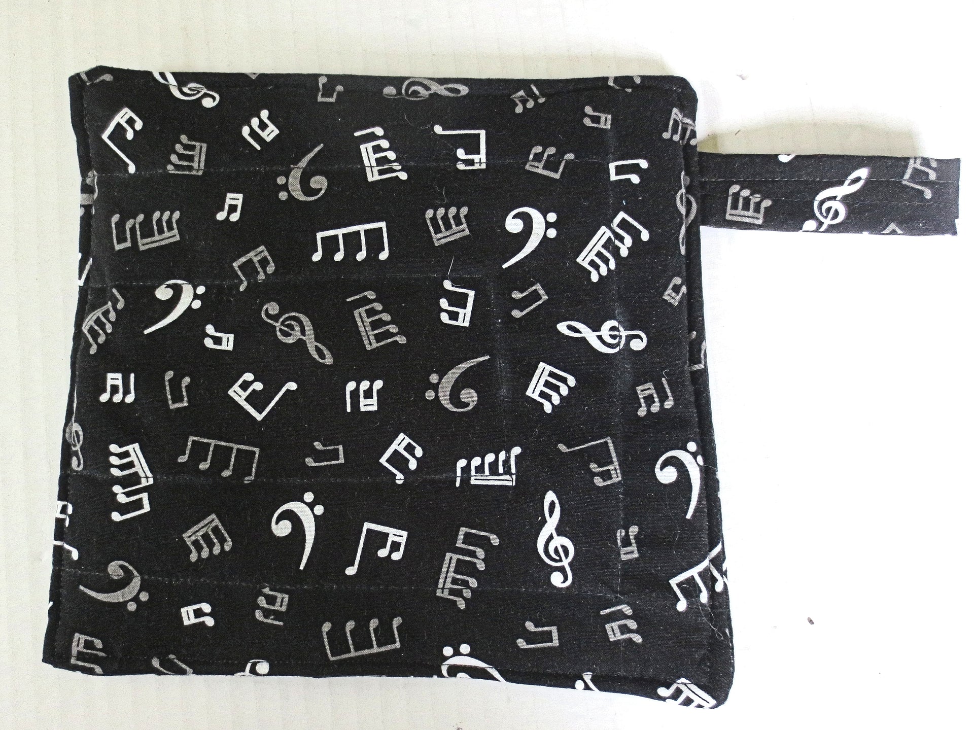 generous hanging handle of 3/4" wide x 4" long.  One pot holder / trivet per purchase