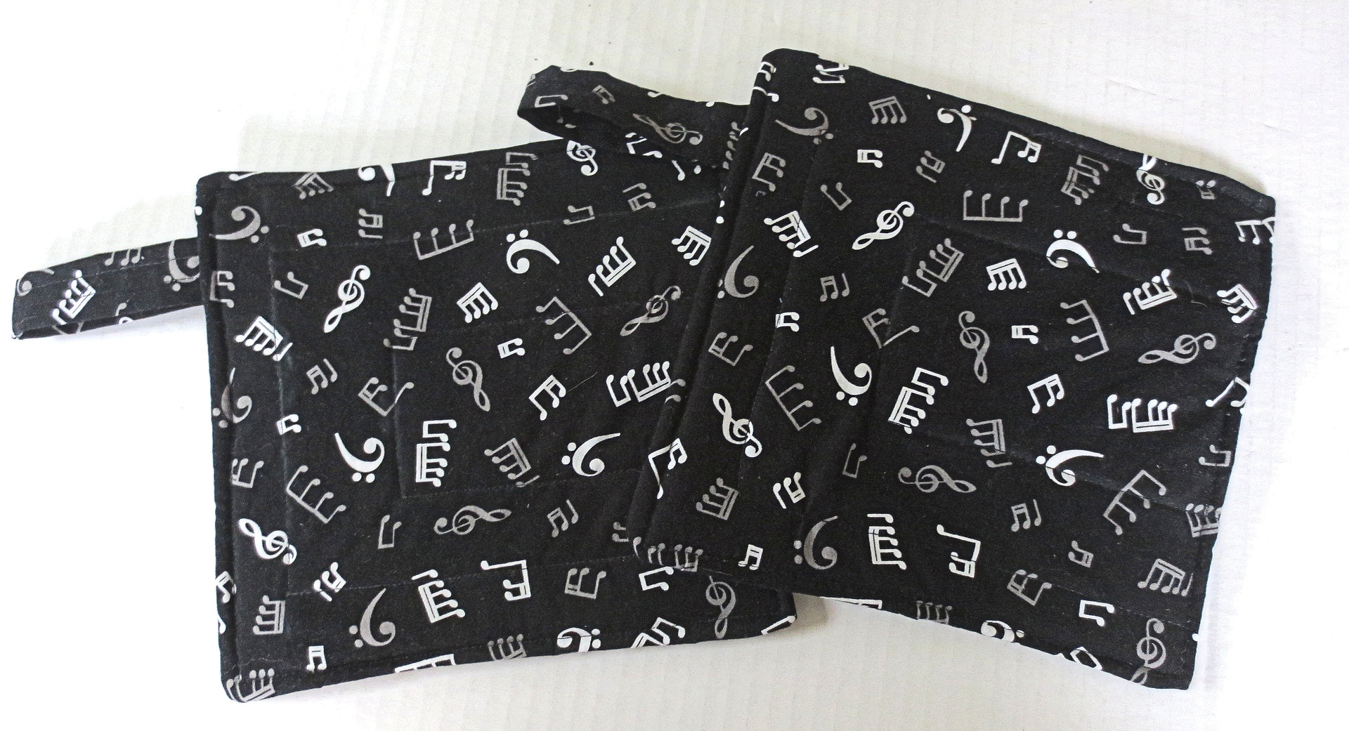 The double insulation is with Insul Bright, a polyester fabric with mylar, which allows hot items to be put on or handled.  All fabric is 100 % cotton and each pot holder is double sided.