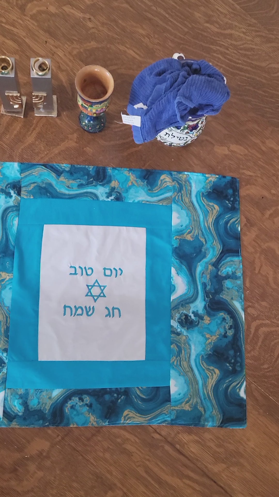 Embroidered Challah cover for Yom Tov Chag Sameach any simcha turquoise gold$72.00$72.00Unit price / per