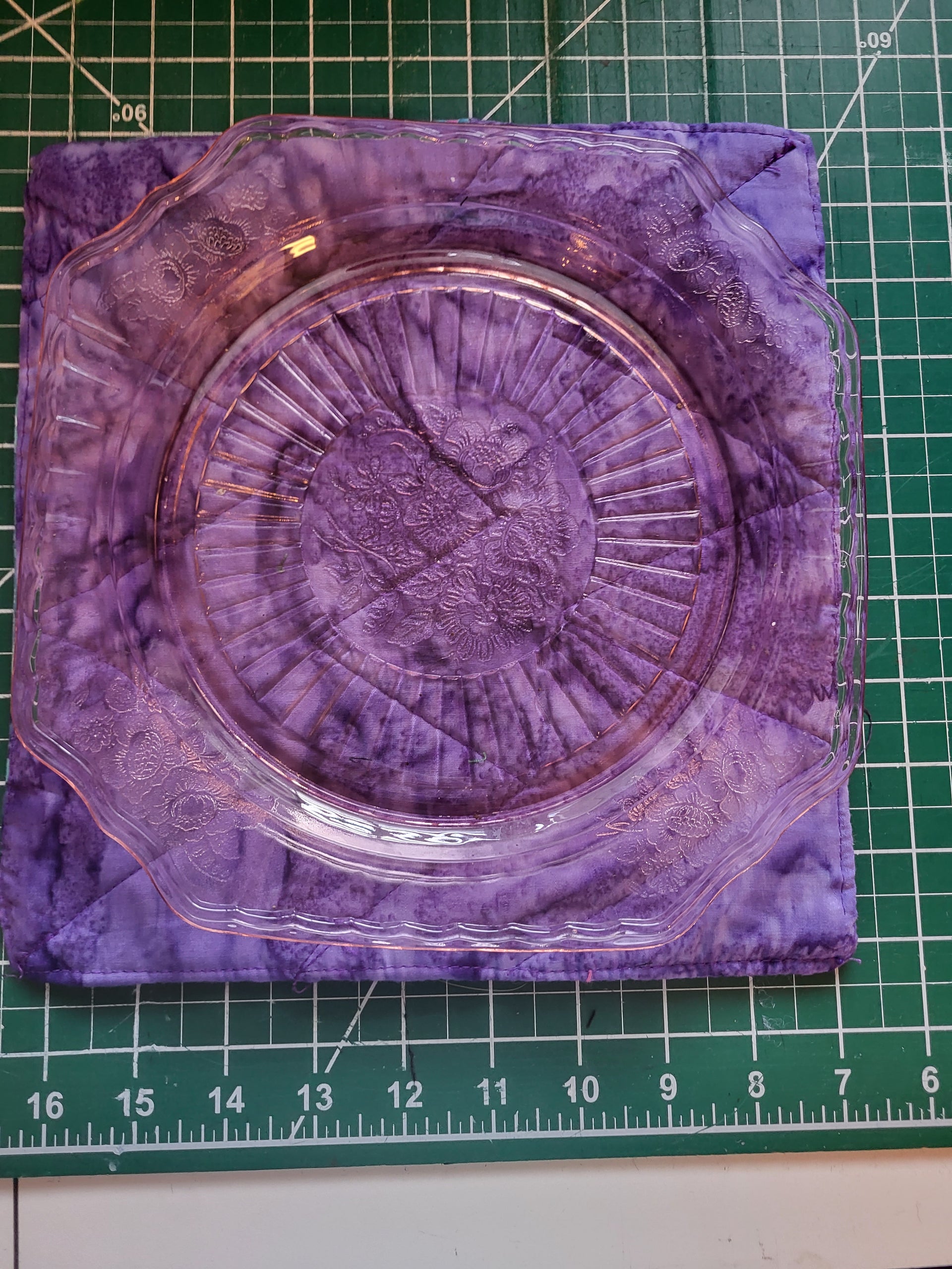 All mats have been quilted with cotton quilting thread.  Each mat is insulated with insulbrite so you can project your furniture from hot and cold items.  You can also use them as small pot holders.