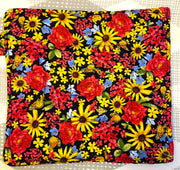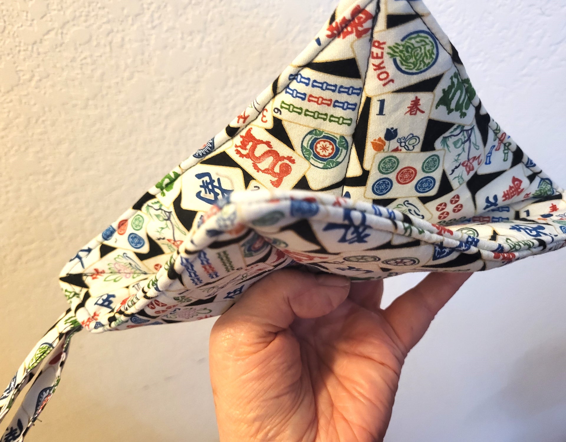 The double insulation is with Insul Bright, a polyester fabric with mylar, which allows hot items to be put on or handled. All fabric is 100 % cotton and each pot holder is double sided.
