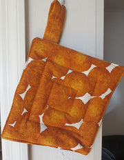 The double insulation is with Insul Bright or Insul Brite, a polyester fabric with mylar, which allows hot items to be put on or handled. All fabric is 100 % cotton and each pot holder is double sided.