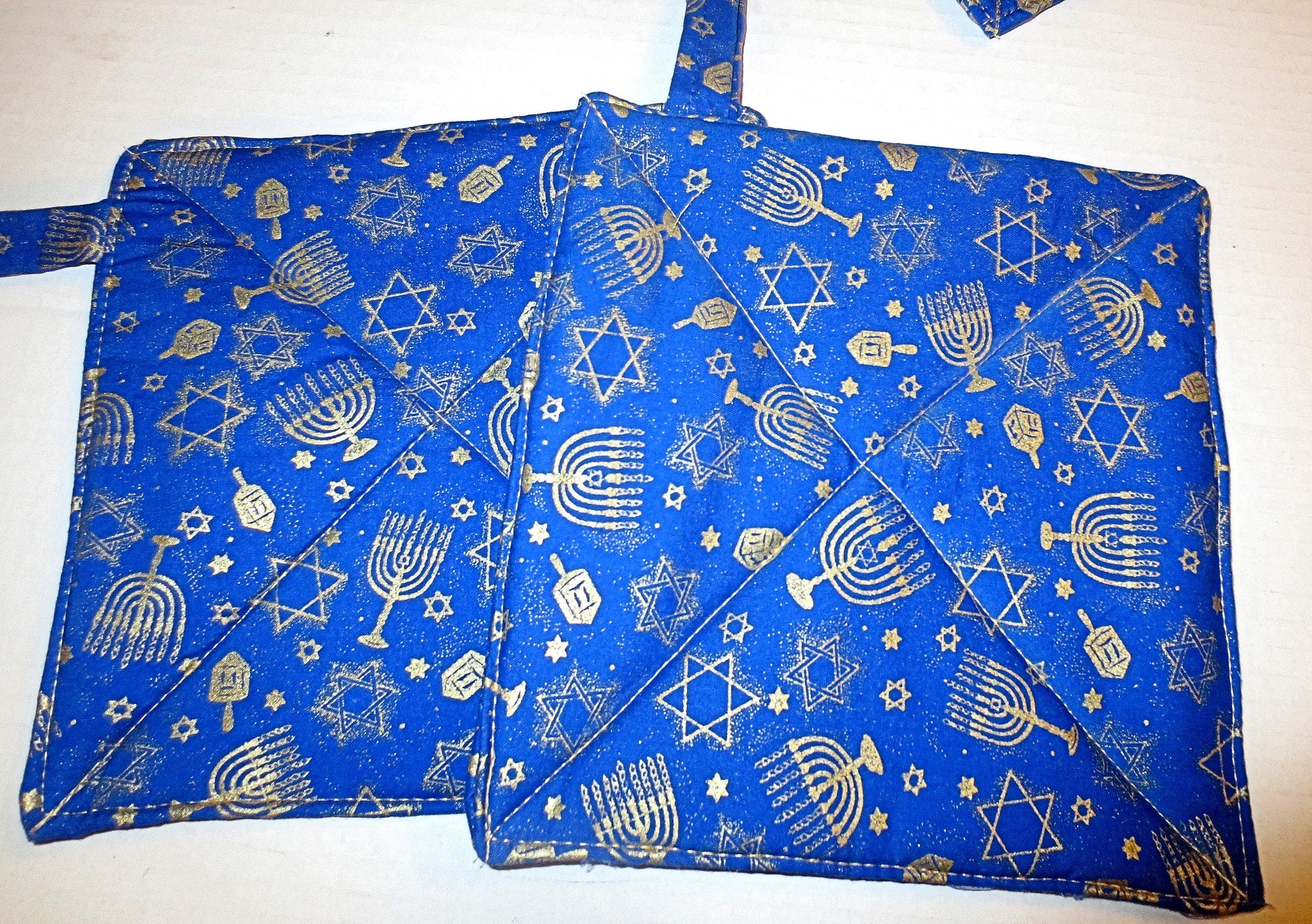 Pot holders / trivets quilted thick double insulated Judaica Hanukkah